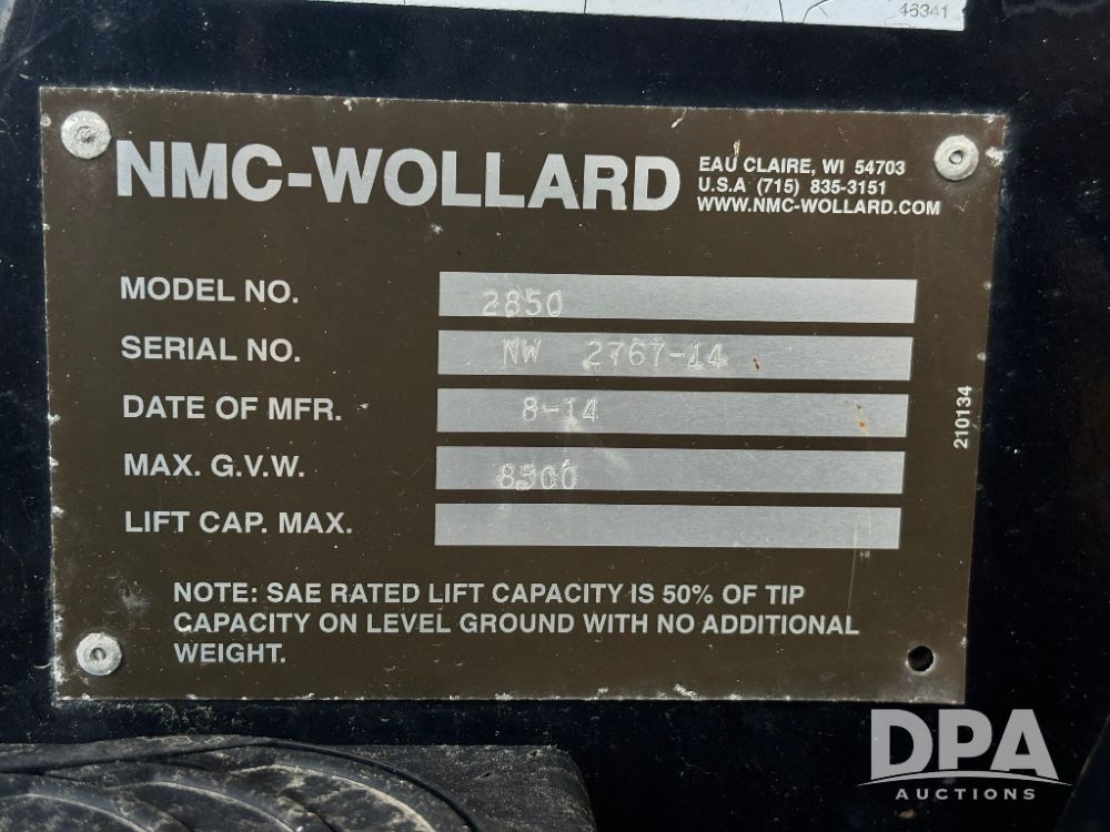 2014 NMC 2850 Wheel Loader (GP11816), 2014 NMC Model 2850 wheel loader, OROPS, diesel engine, joystick control, 300/70R16.5 tires, Max G.V.W. 8,500, shows 252 hours.