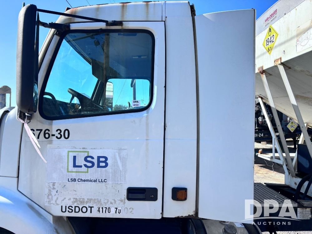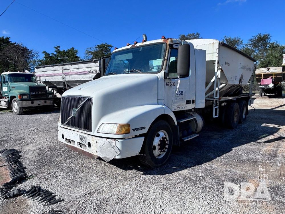 2003 Volvo Dry Tender Truck (GP11797, Unit 676-30), Volvo 12.1L diesel engine, Meritor 10 speed transmission, heat, Am/Fm radio, tandem axle, air ride suspension, Willmar Load Runner 16 dry tender box, rear discharge auger, hydraulic, roll tarp, 295/75R22.5 tires, GVWR 50,000 pounds.