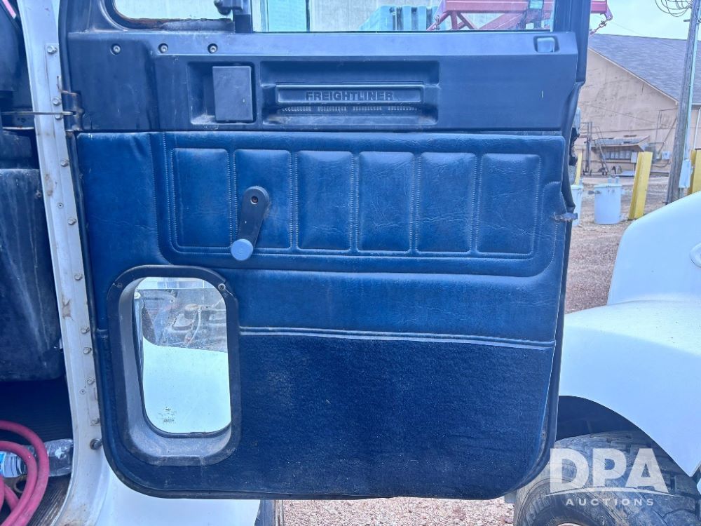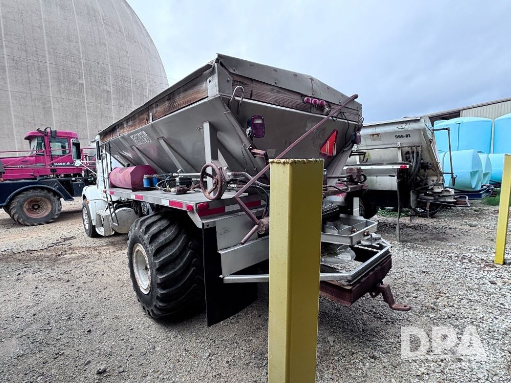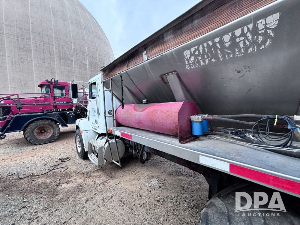 2001 Freightliner FLD112 Dry Floater (GP11774, Unit 700-98), Cummins ISM diesel engine, Eaton Fuller 9 speed transmission, heat, Am/Fm radio, single axle, air ride suspension, stainless steel dry spreader box, dual spinners, roll tarp, hydraulic, 385/65R22.5 front tires, 48x31.00-20 rear tires, TeeJet ARC-6000 automatic rate controller, TeeJet Matrix Pro 570G guidance system, shows 57,551 miles.