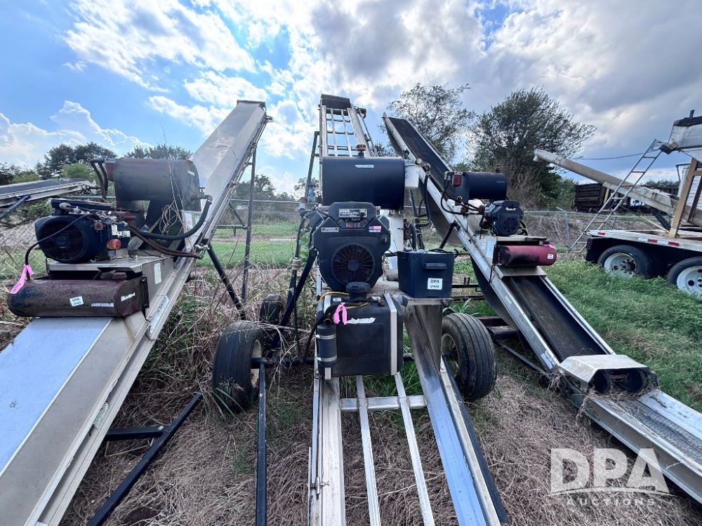 Adams Field Loader Conveyor (GP11817), Adams stainless steel field loader conveyor, BELT IS MISSING, Kohler Command Pro 20.5HP gas motor, portable, 12.5L-15 flotation tires.