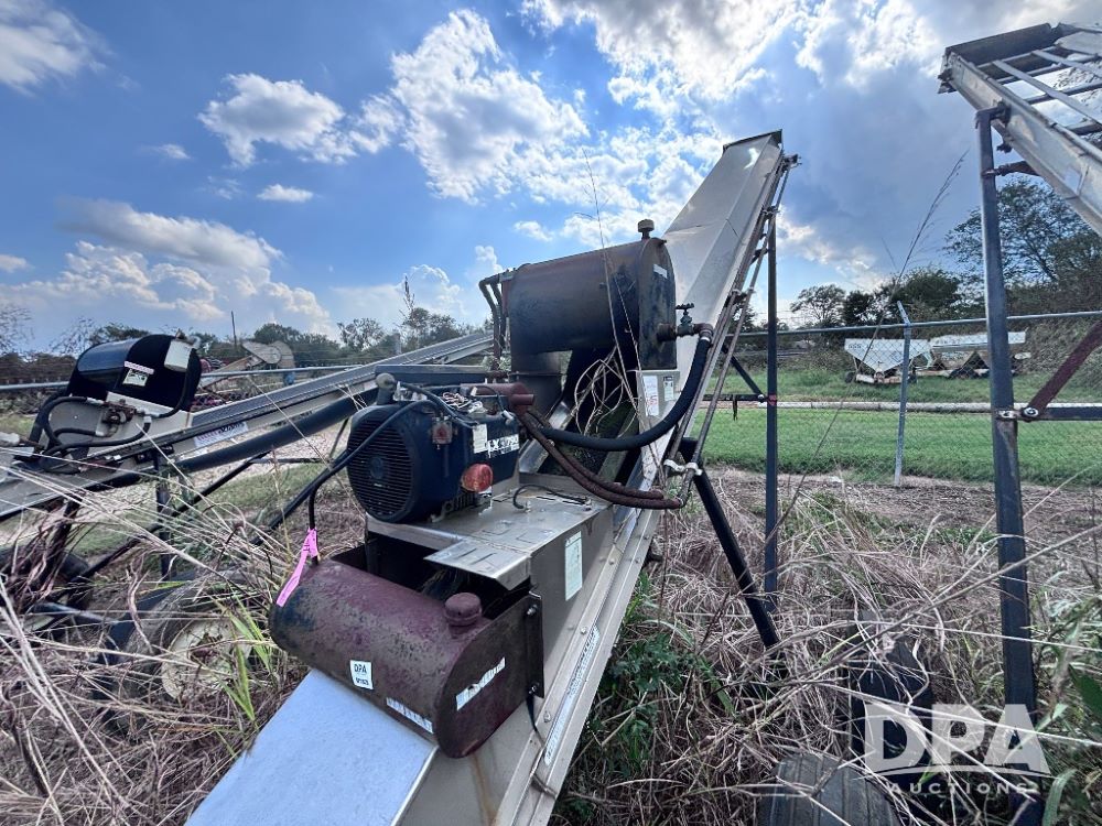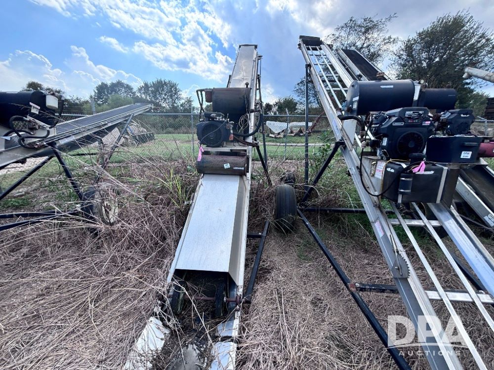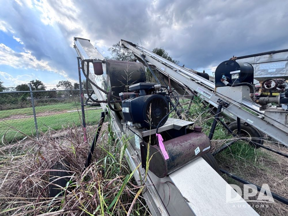 Adams Field Loader Conveyor (GP11820), Adams stainless steel field loader conveyor, gas motor, portable, flotation tires.