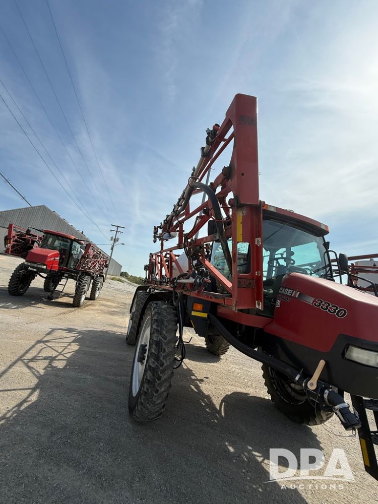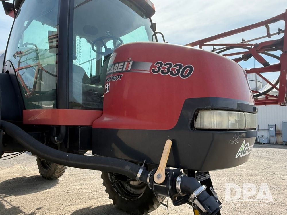 2009 CaseIH Patriot 3330 Sprayer (PZ14129, Unit G5), diesel engine, hydrostatic transmission, air conditioning, heat, Am/Fm radio, buddy seat, 1000 gallon stainless steel liquid system, 90' boom, foam marker, poly foam marker tank, stainless steel chemical inductor, front fill, Michelin Spraybib VF 380/90R46 tires, fenders, Raven Viper Pro monitor, shows 5,882 hours.