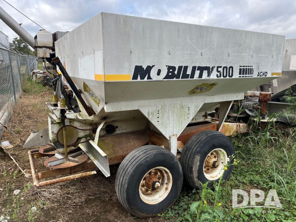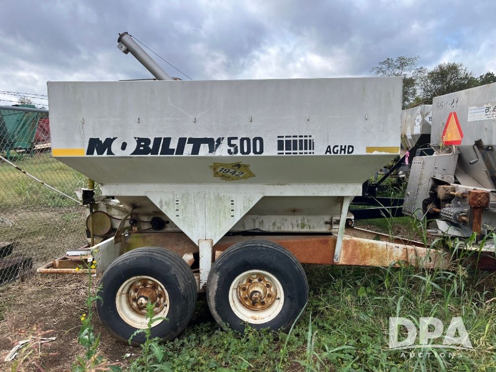 Mobility 500 Dry Spreader (JN3286, Unit 676-21), Mobility 500 pull type dry spreader, dual spinners, tandem axle, flotation tires.