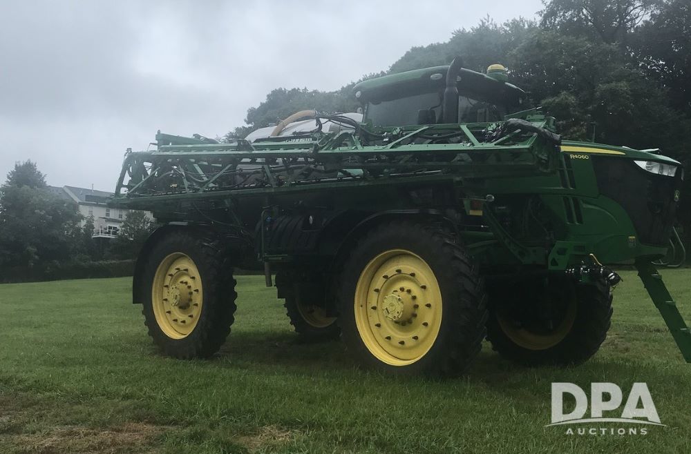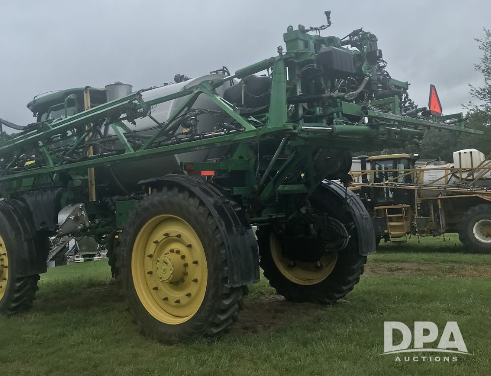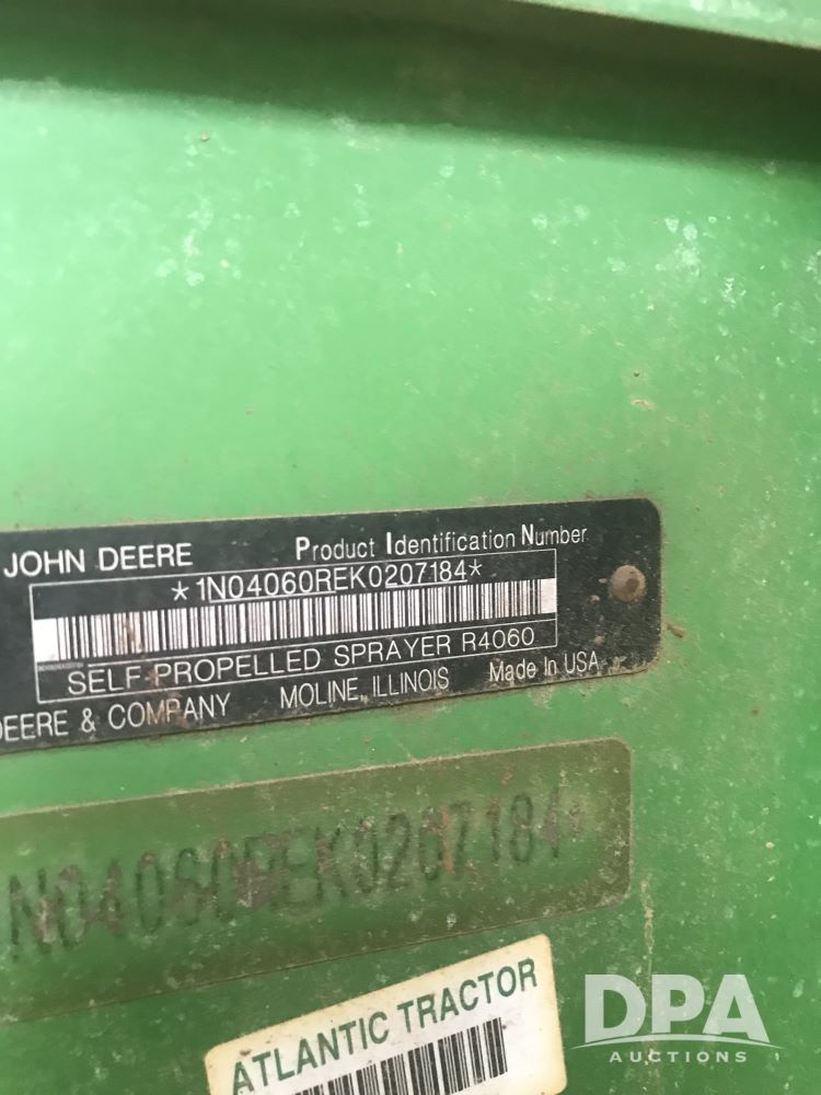 2020 John Deere R4060 Sprayer, Full Time 4 Wheel Drive with traction control, 346HP John Deere 9.0L - 6 cylinder turbo diesel engine, dual range hydrostatic drive (25mph field, 35mph transport), Premium CommandView III plus cab, HVAC, auto temp control, leather air suspension seat, premium Am/Fm weatherband radio, folding leather buddy seat, premium LED field lighting, rotary beacon light, 1,600 gallon stainless steel liquid system, 100' steel boom, 1" stainless plumbing, 15" on-center spacing, (79) five position nozzle bodies, 9 section boom control, 3" x 2" high flow solution pump, dual flow meters, stainless steel chemical eductor tank, automatic solution control, boom air purge, 5 sensor auto boom leveling, right & left side fence row nozzles, single drop foam markers, 3" left side quick fill & front fill, on board air compressor, hydraulic tread spacing adjustment (120-160"), auto air spring chassis leveling, 420/95R50 tires, integrated Gen 4, 4600 display on command arm, premium 3.0 activations for AutoTrac guidance, section control, RowSense, data sync & data share activations, no RowSense hardware, connect mobile ready, shows 4,382 hours.