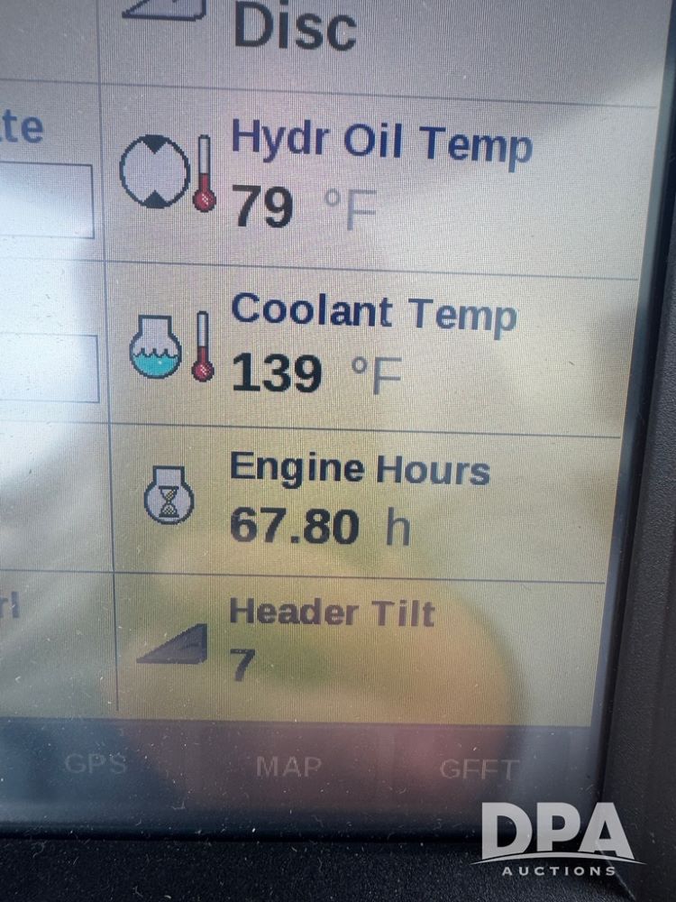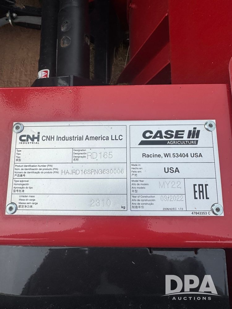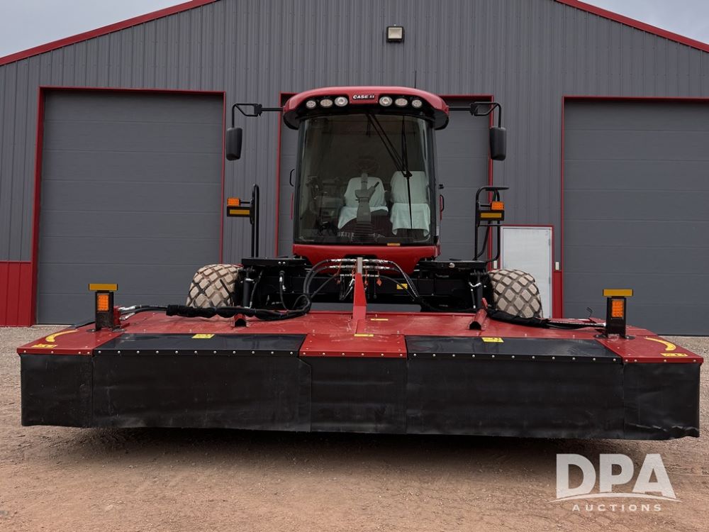 2023 Case IH WD2505 Swather (MN1137), self-propelled mower or windrowers, diesel engine, premium cab, air ride cab, leather seats, heat, air conditioning, 2023 Case IH RD19519ft disc header (S/N HAJRD16SPNG630006), hydraulic tilt, 600/65 R28 front tires, 16.5x16.1 rear tires, GPS, autoguidance, shows 67.80 hours.