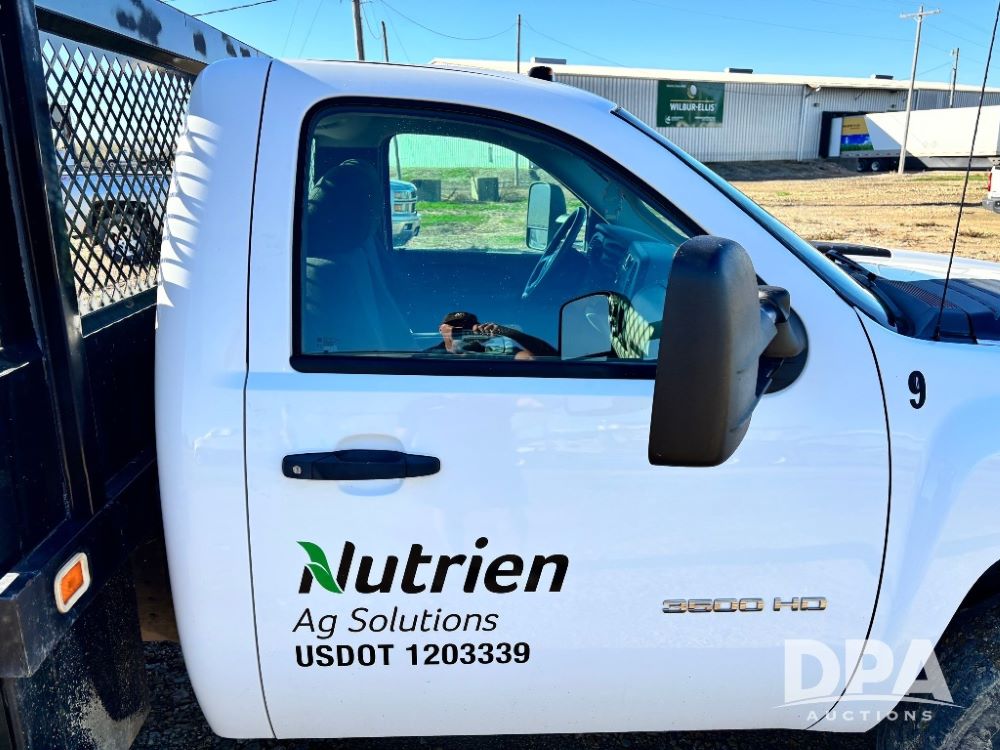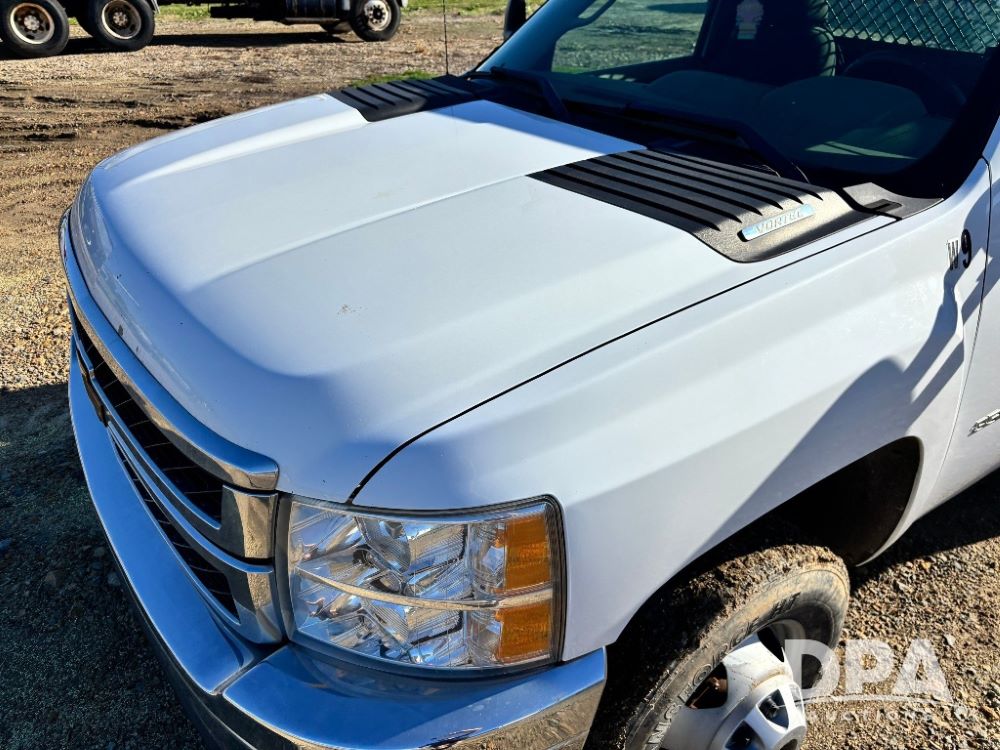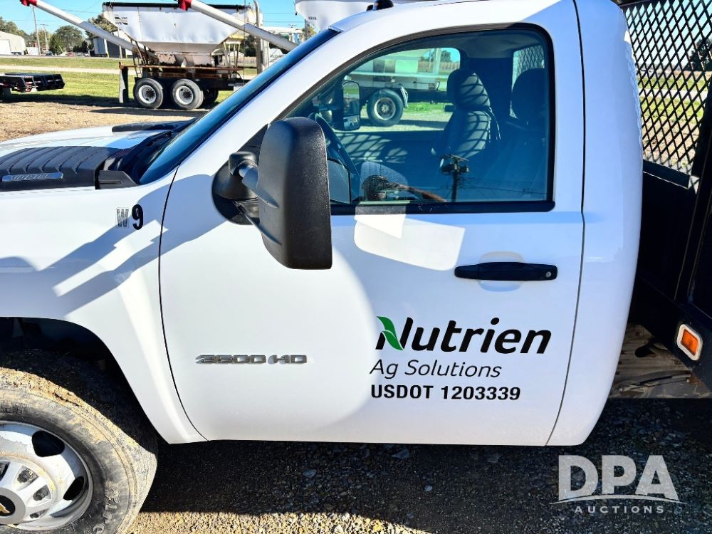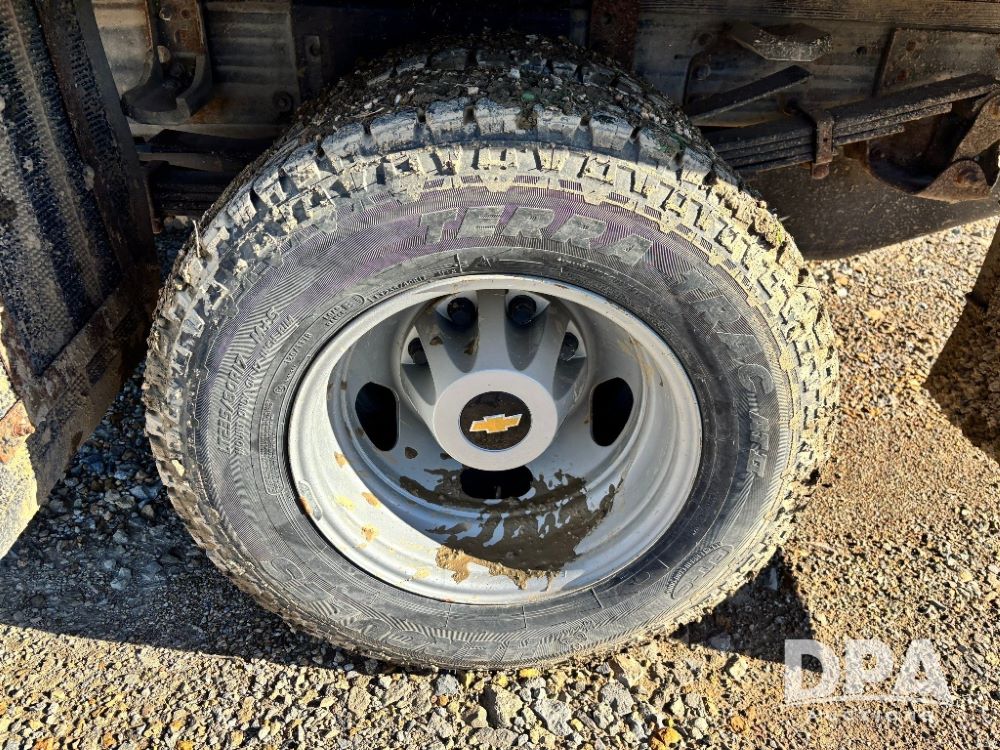 2013 Chevrolet 3500HD Pickup (GP11711, Unit 126211), regular cab, Vortec 6.0L gas engine, automatic transmission, heat, Am/Fm radio, cruise control, Knapheide rear flatbed, approx. 9' long x 8' wide, tow package, dually, LT235/80R17 tires, shows 79,820 miles.