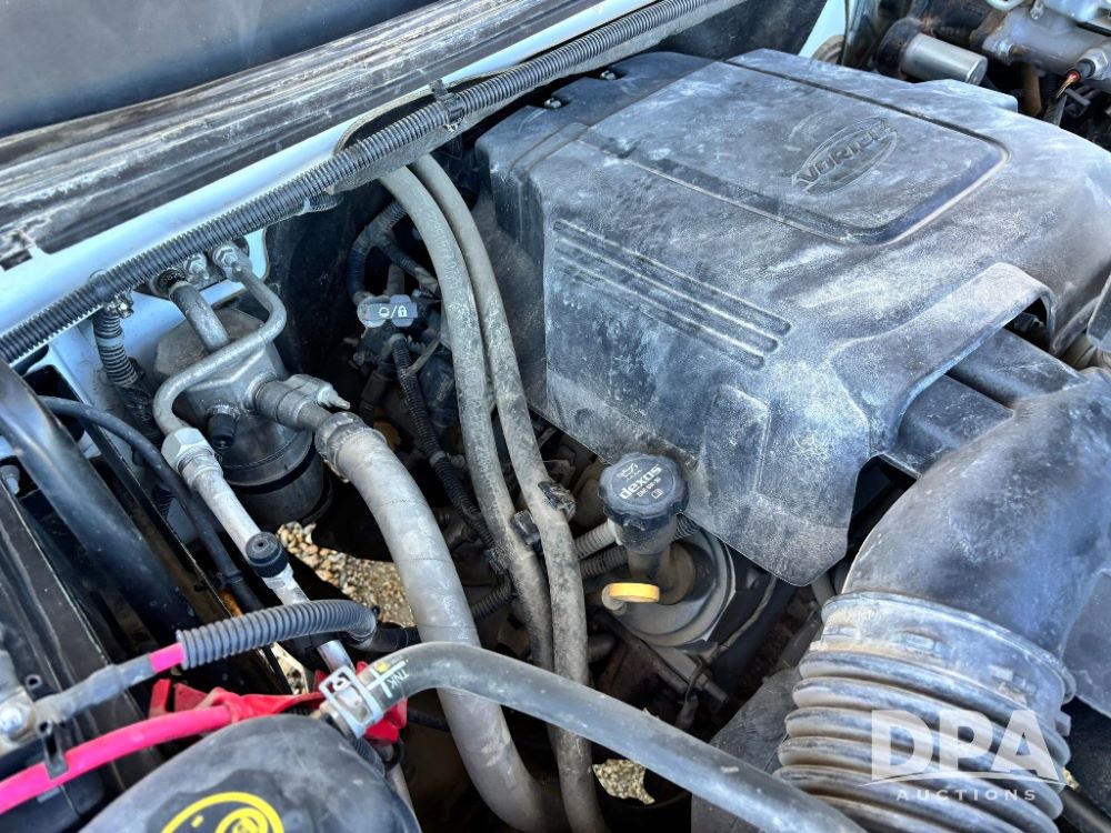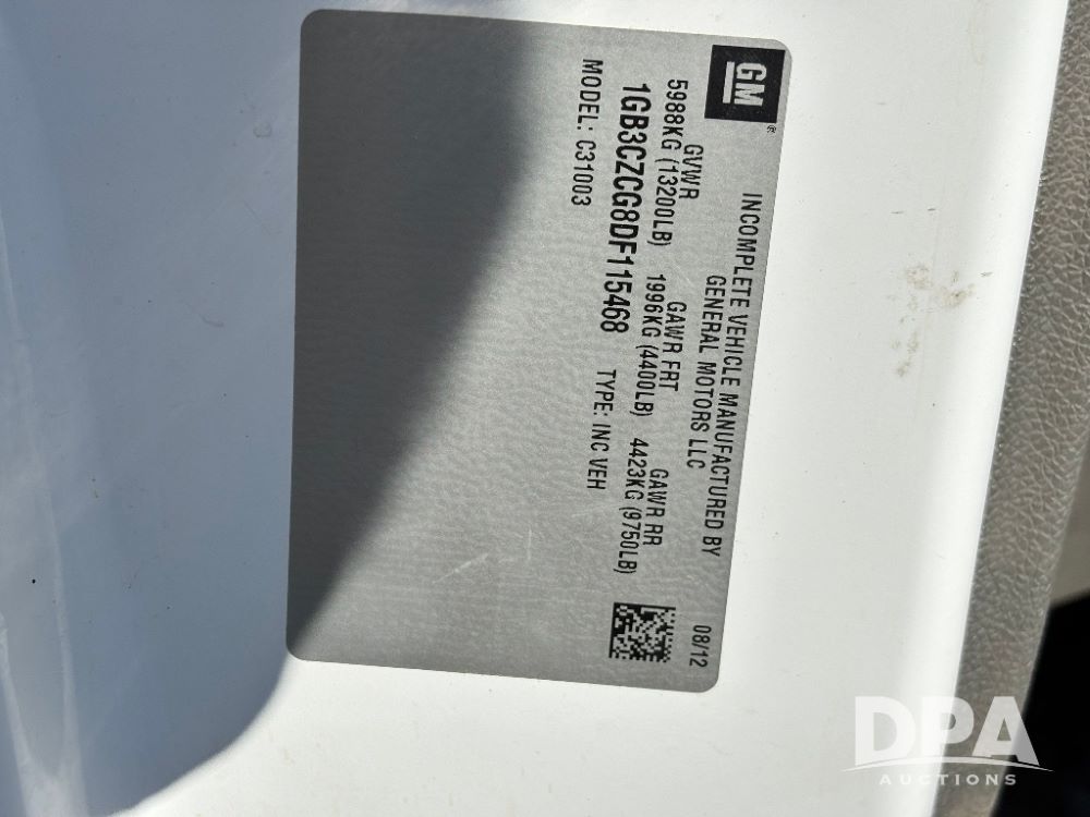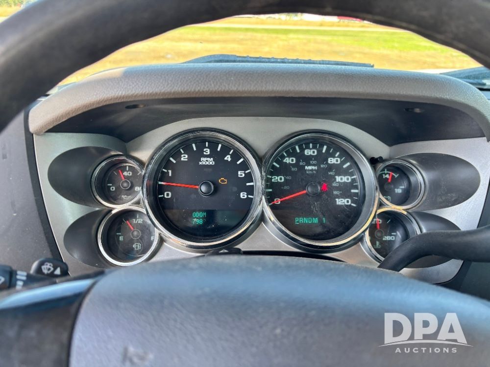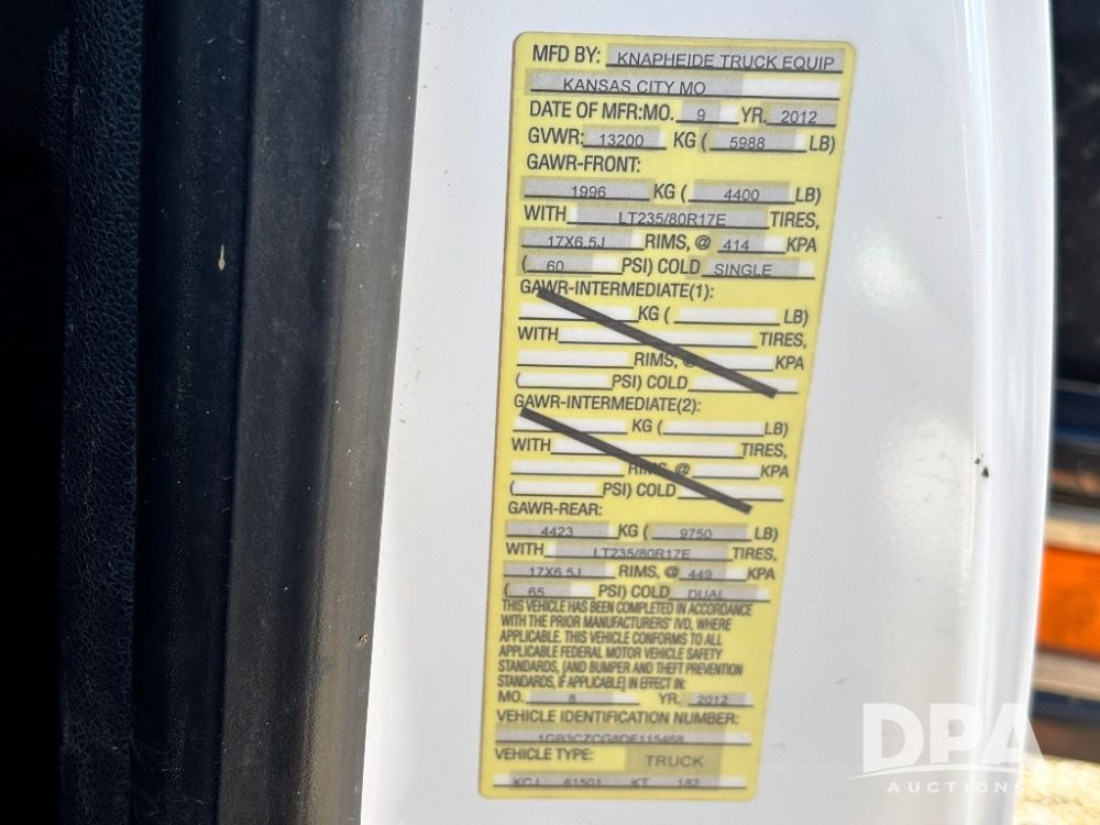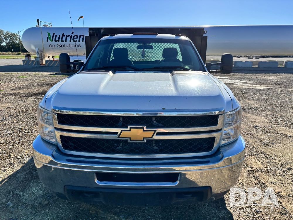 2013 Chevrolet 3500HD Pickup (GP11711, Unit 126211), regular cab, Vortec 6.0L gas engine, automatic transmission, heat, Am/Fm radio, cruise control, Knapheide rear flatbed, approx. 9' long x 8' wide, tow package, dually, LT235/80R17 tires, shows 79,820 miles.