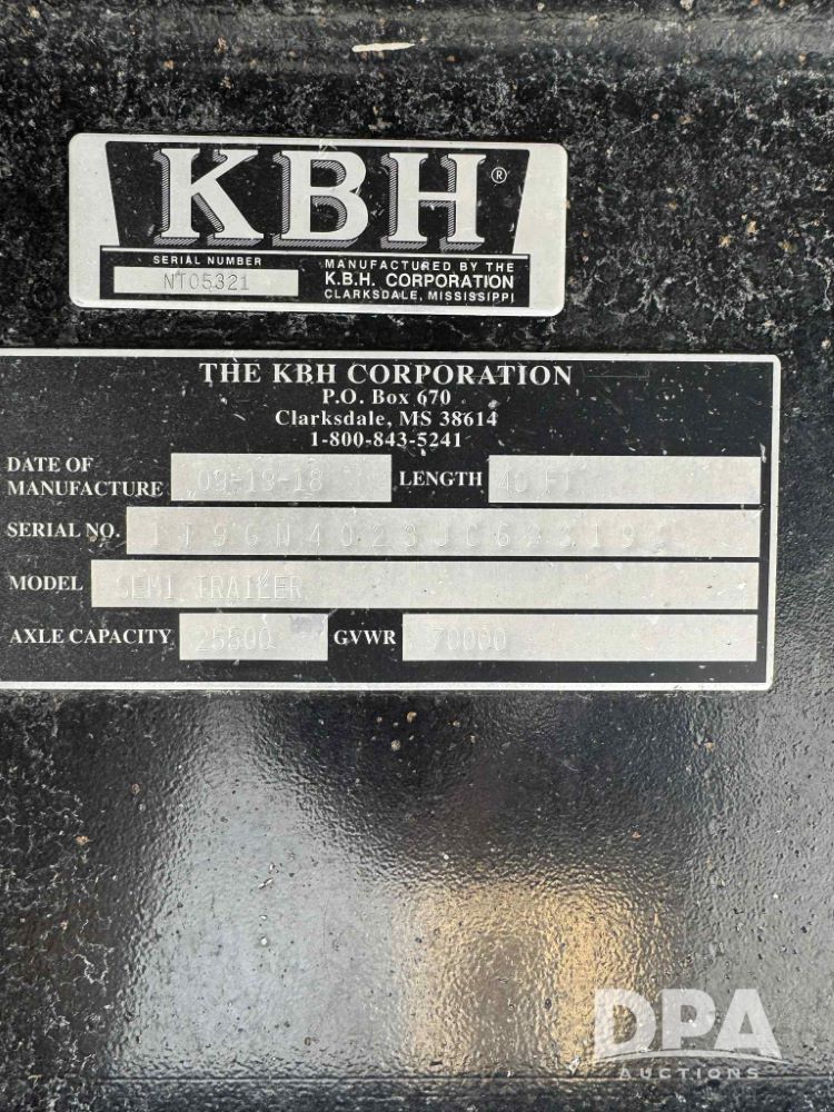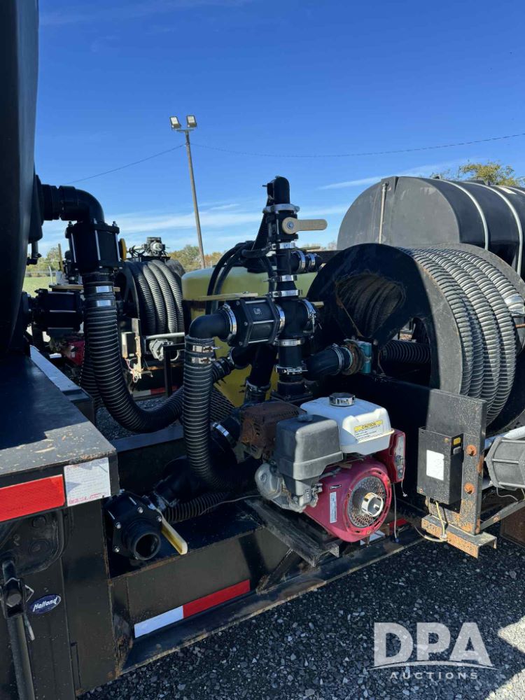 2018 KBH 6000 Drop Deck Liquid Nurse Trailer (MN1144), 2018 KBH 40ft drop deck trailer, dual 3,000 gallon poly liquid nurse tanks, 120gal inframe fuel tank, Honda GX390 13hp electric start motor, Fill Rite external 20gpm 12v pump included, 3in plumbing, 2 hose reels, 80gal poly inductor tank, bulk platform in center, fresh water hand rinse tank included, 70,000 GVWR, tandem axle, spring ride suspension, 22.5 tires.