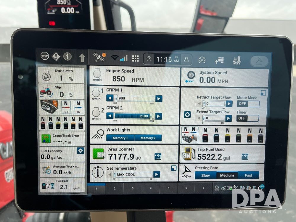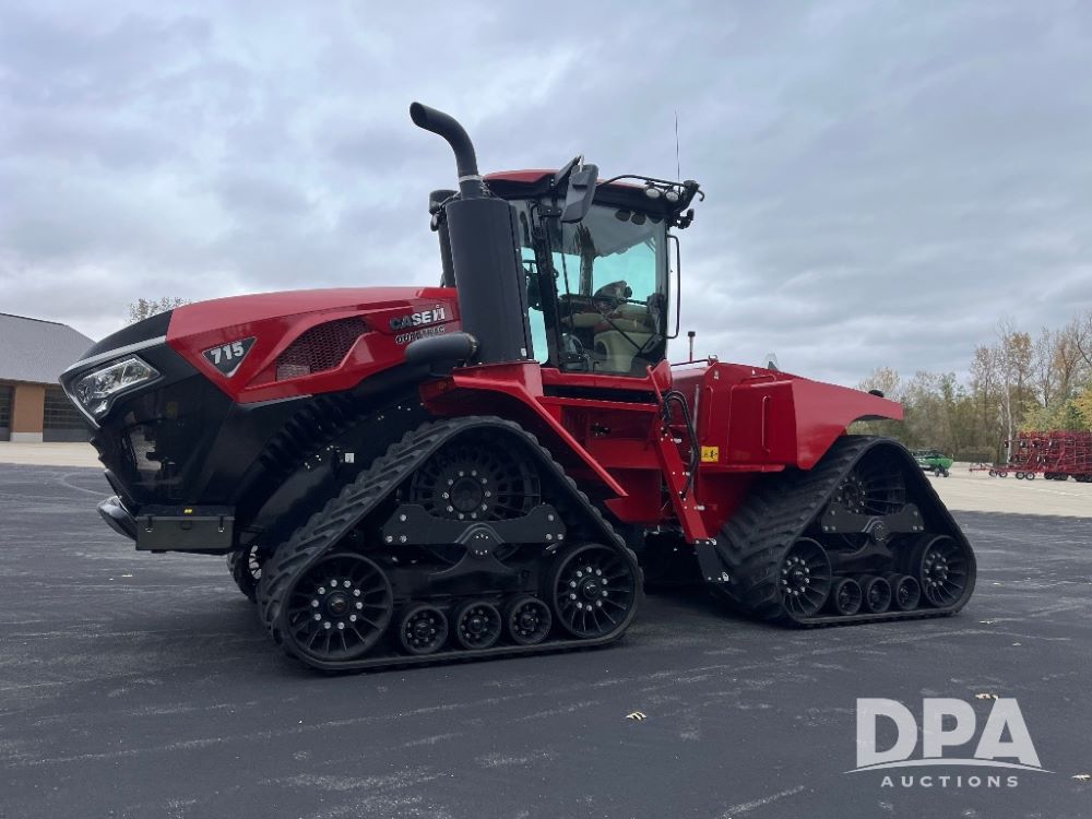 2025 Case IH Steiger 715 Quadtrac Tractor (JN3260), PT Cursor 16 turbocharged diesel engine, Powershift transmission, AFS Connect, Power beyond, luxury cab, buddy seat, engine brake, cold weather start, True ground speed radar, RH armrest, Pro 1200 monitor, AFS Vector Pro, 2 high capacity hydraulic pumps, 6 remotes, 1000 PTO, high cap drawbar with differential lock, 36 inch tracks, Power beyond supply and return, performance lighting, farmer owned, shows 271 hours.