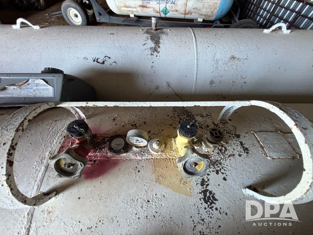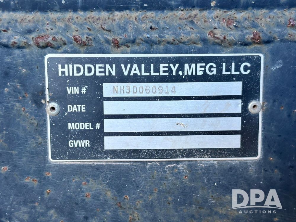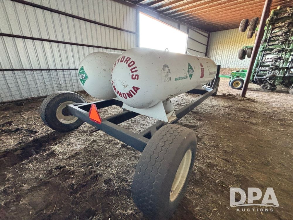 Double NH3 Nurse Tanks (GP11740, Tank 2), double 1,000 gallon anhydrous nurse tanks, Hidden Valey Mfg. LLC 4 wheel gear (S/N NH3D060914), 385/65R22.5 tires, data plates.