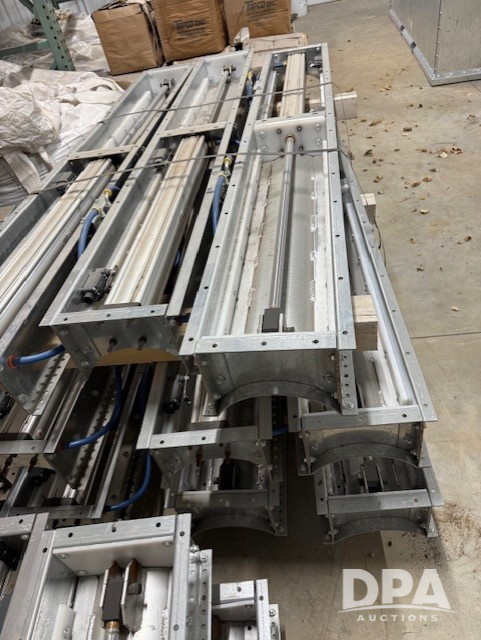 12 New Lambton Pneumatic Gates (PD5298), fits 9 inch round bottom Lambton conveyor, comes with discharge transitions.