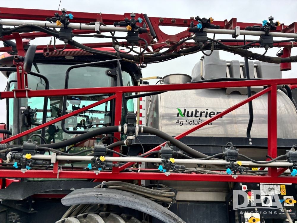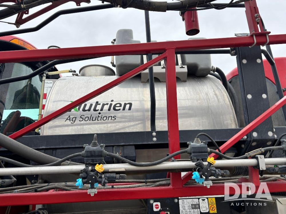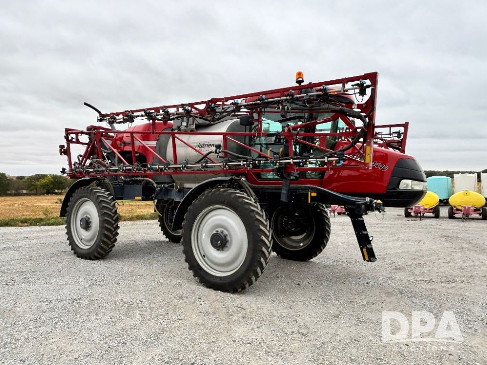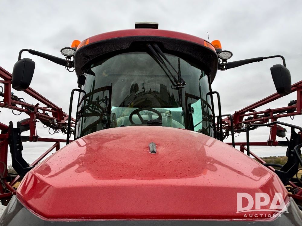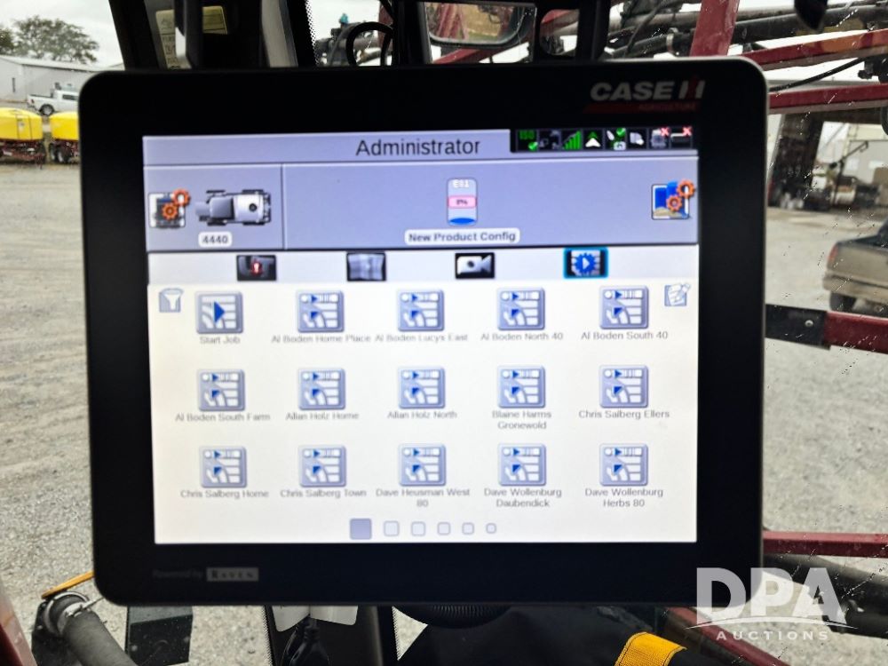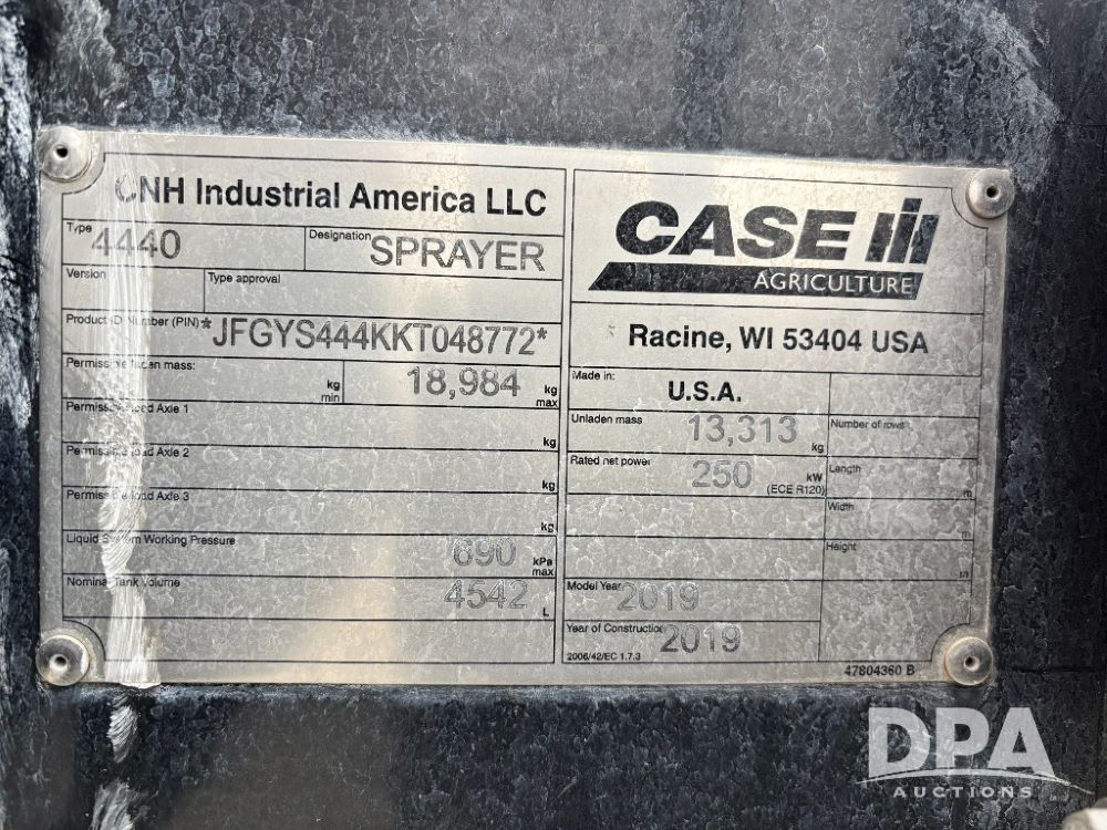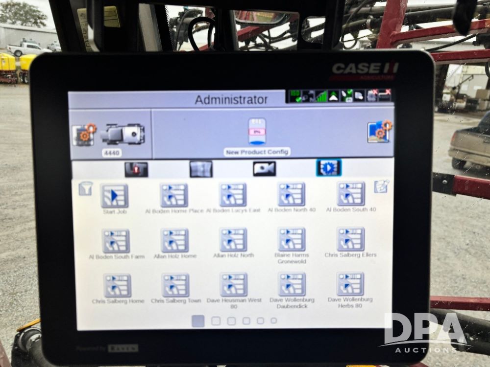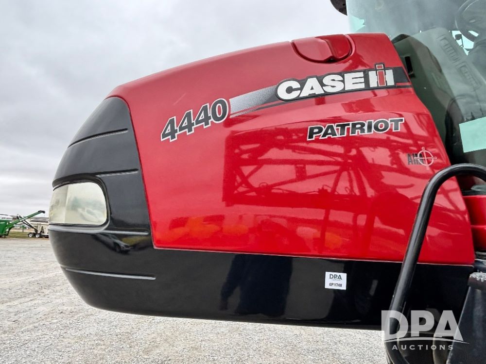 2019 CaseIH Patriot 4440 Sprayer (GP11748, Unit), diesel engine, hydrostatic transmission, heat, air conditioning, Am/Fm radio, leather driver and buddy seat, power mirrors, 1,200 gallon stainless steel liquid system, 100' boom, top mount poly rinse tank, stainless steel chemical inductor tank, front fill option, Michelin 380/90R46 row crop tires, fenders, Voyager backup camera, Raven GPS, Raven Viper 4 monitor, shows 2,835 hours.