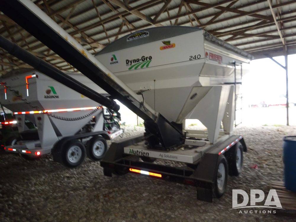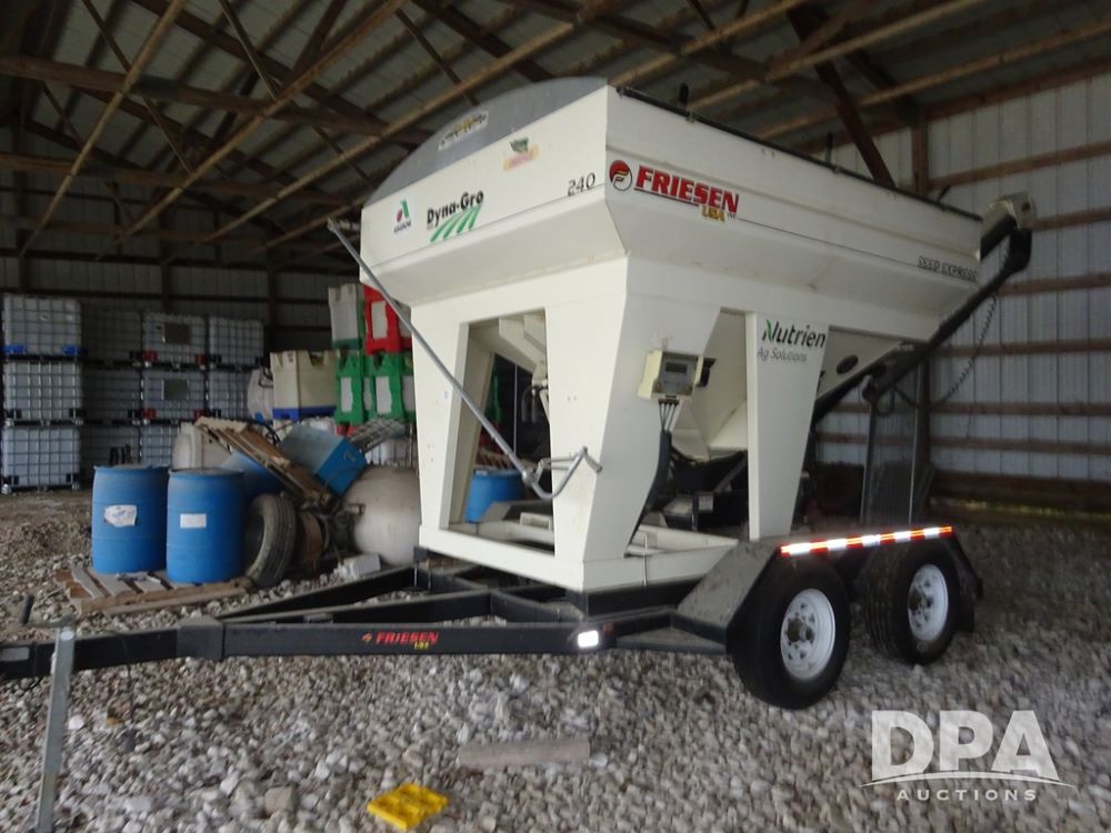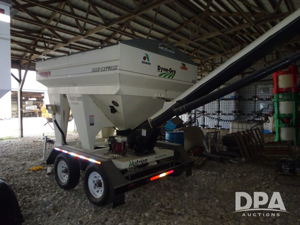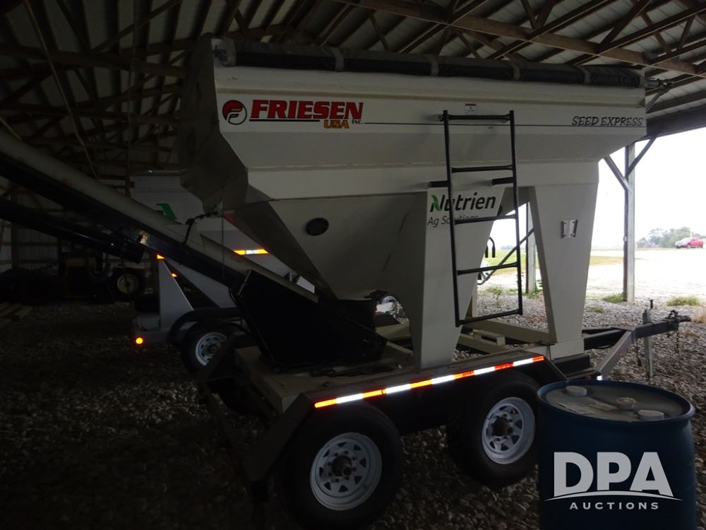 Friesen 240 Seed Express Seed Tender (PZ14105, Unit 40587), Friesen Model 240 Seed Express seed tender, front/rear hopper, discharge auger, roll tarp, Avery Weigh-Tronix Model 640 scale (Scale DOES NOT work), Honda GX160 5.5HP electric start gas motor, tandem axle gear, bumper hitch, ST235/80R16 tires.