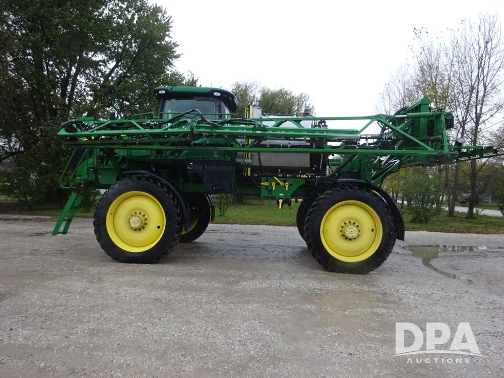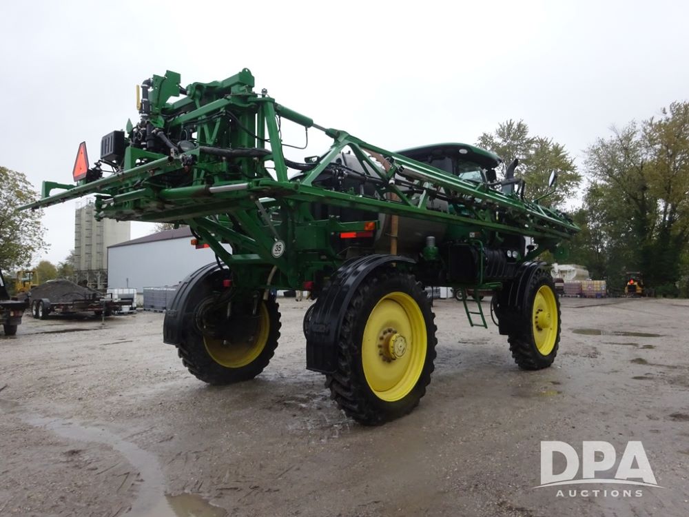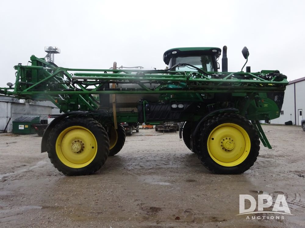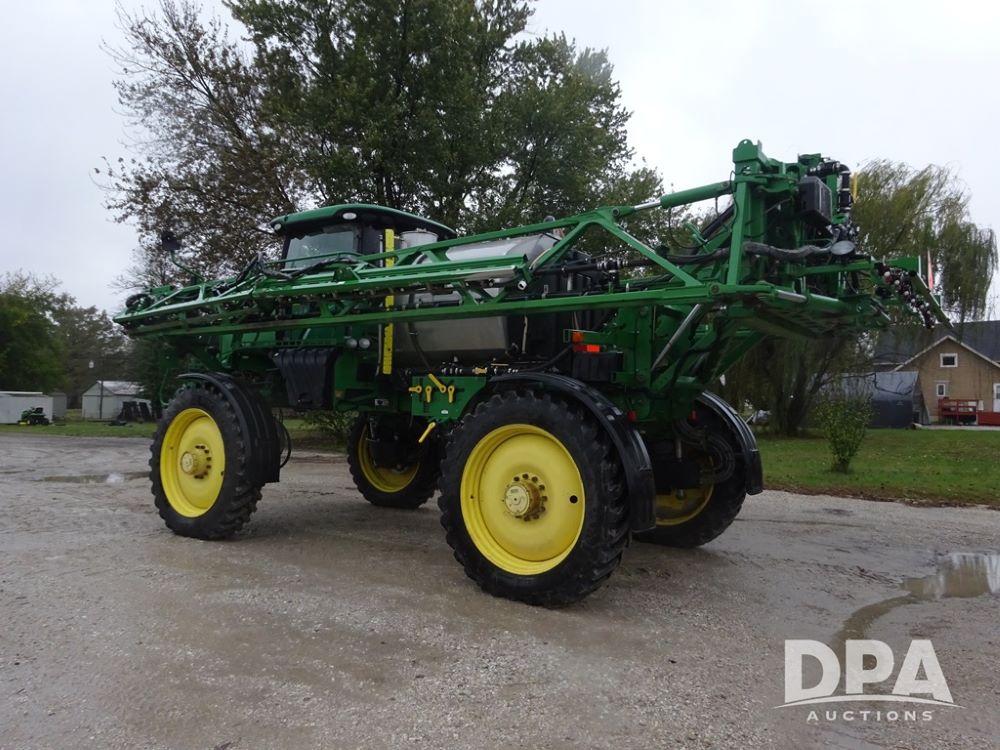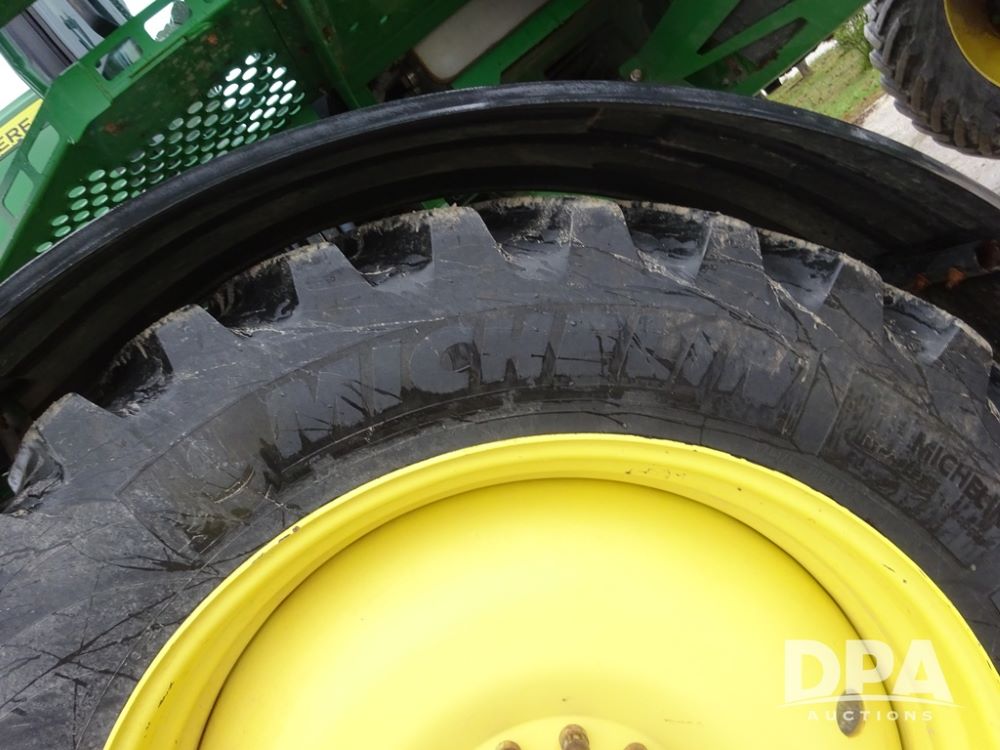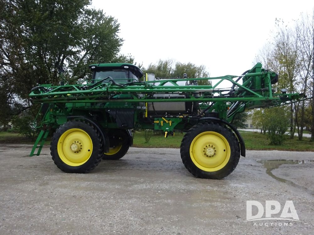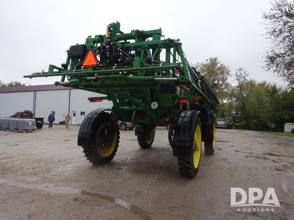 2015 John Deere R4038 Sprayer (PZ14111), John Deere diesel engine, hydrostatic transmission, heat, air conditioning, Am/Fm radio, 1,000 gallon stainless steel liquid system, 100' boom, rear mount poly rinse tank, manual solution control, 380/90R46 tires, fenders, StarFire 3000 globe, GreenStar monitor, shows 3,134 hours.