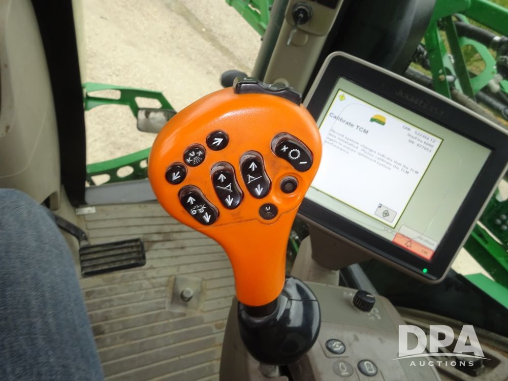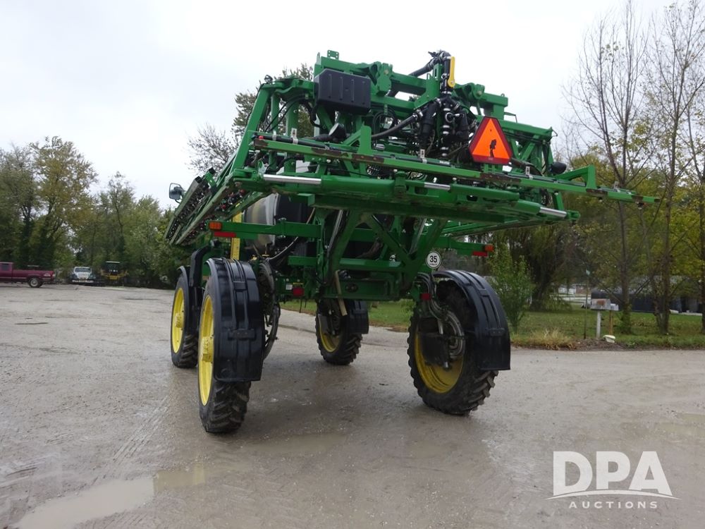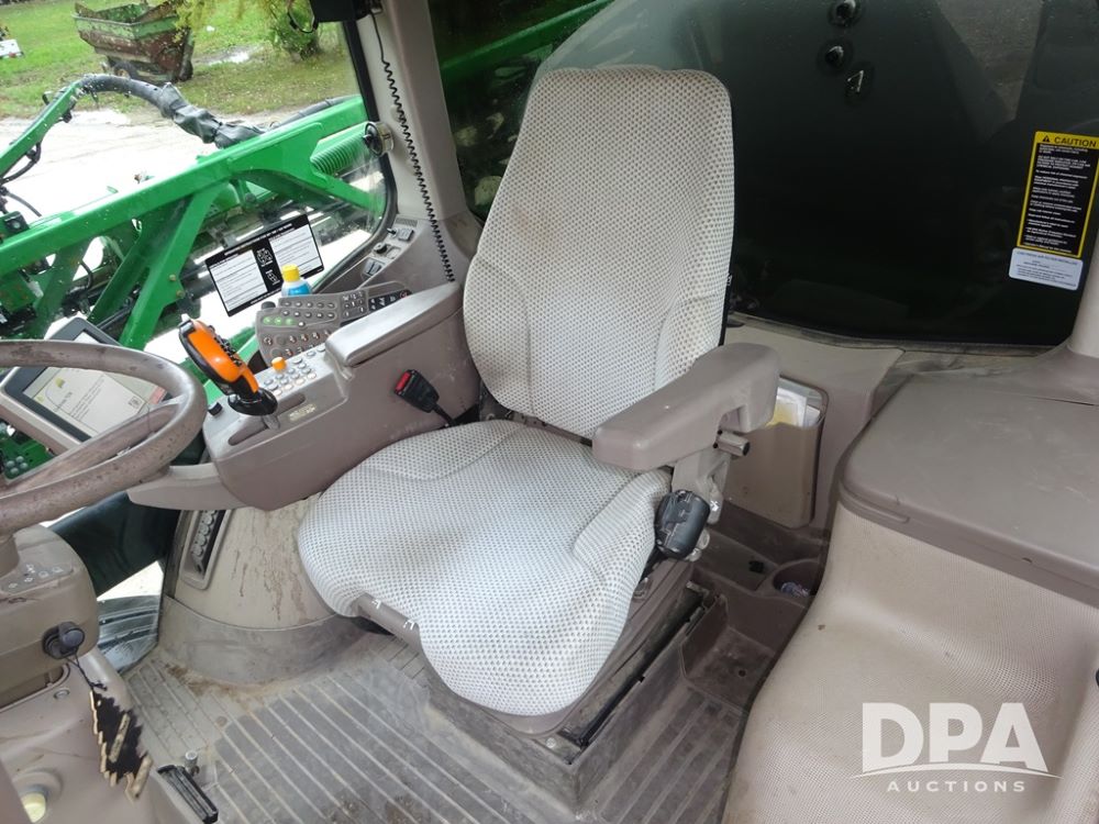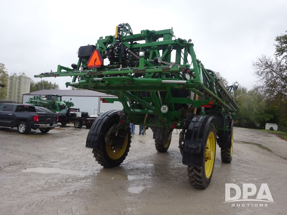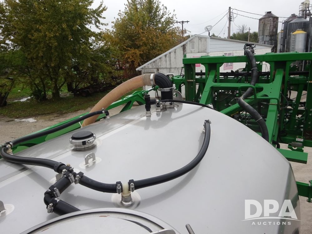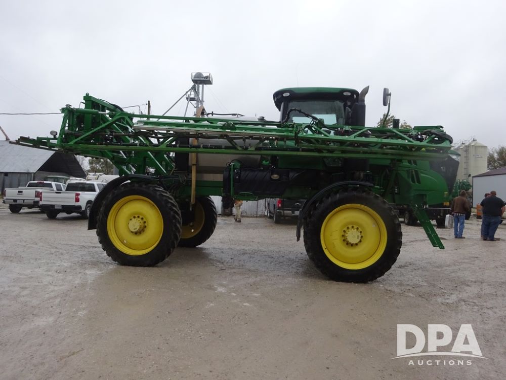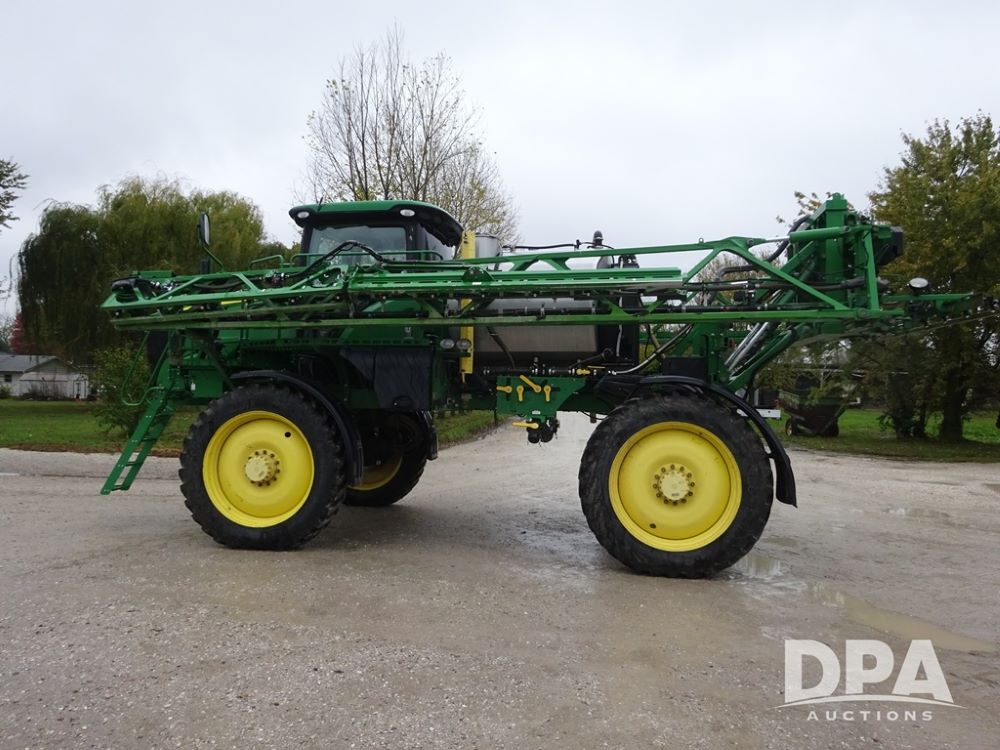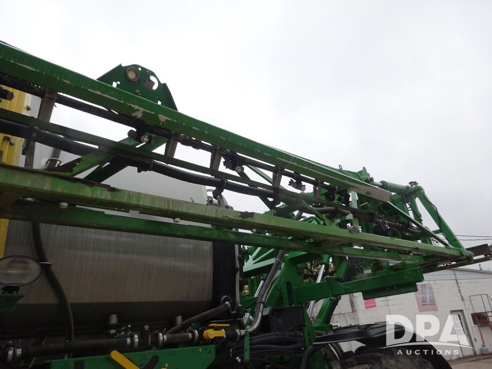 2017 John Deere R4038 Sprayer (PZ14112), John Deere diesel engine (S/N RG6090U037169), hydrostatic transmission, heat, air conditioning, Am/Fm radio, 1,000 gallon stainless steel liquid system, 100' boom, rear mount poly rinse tank, manual solution control, 380/90R46 tires, fenders, StarFire 6000 globe, GreenStar monitor, shows 2,938 hours.