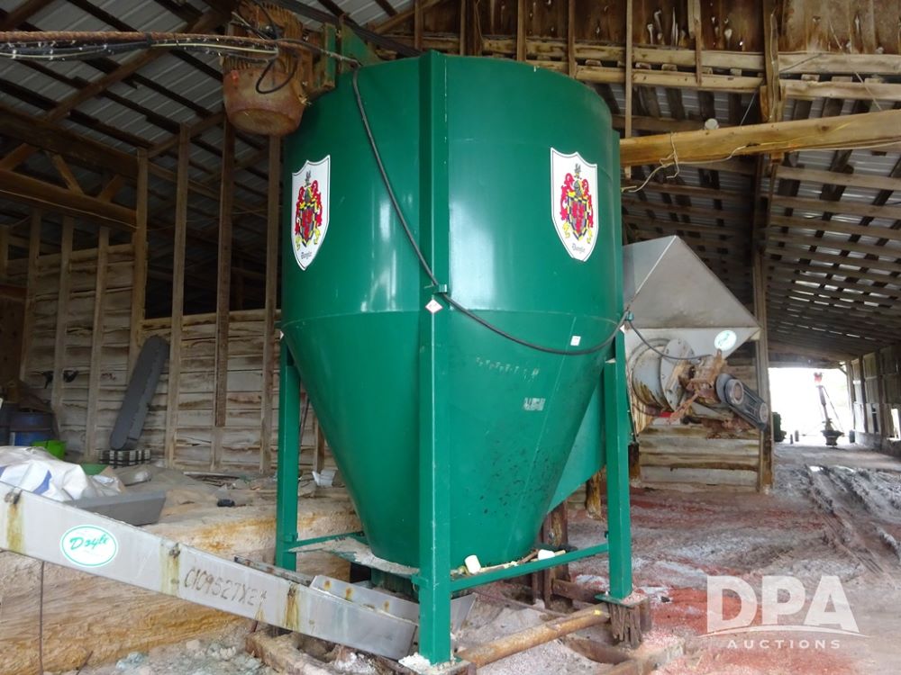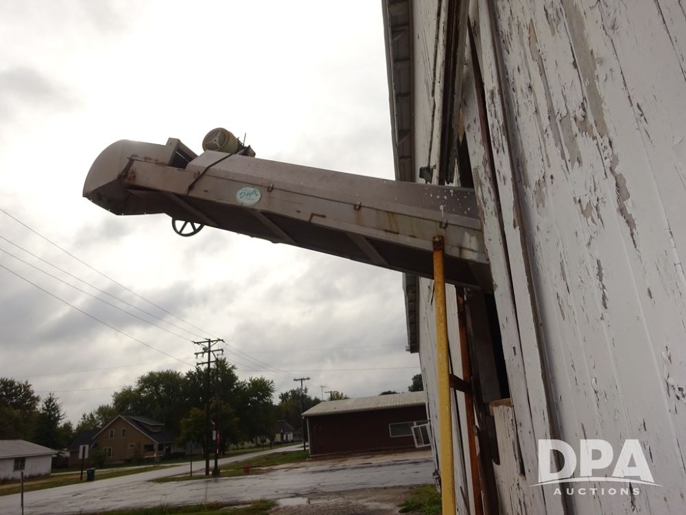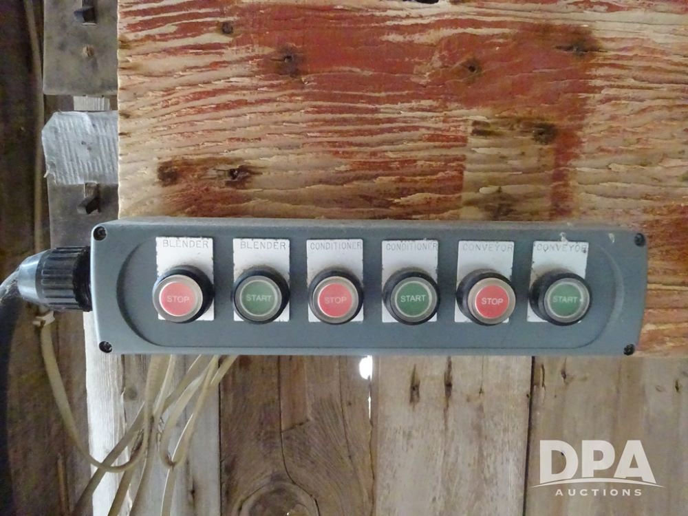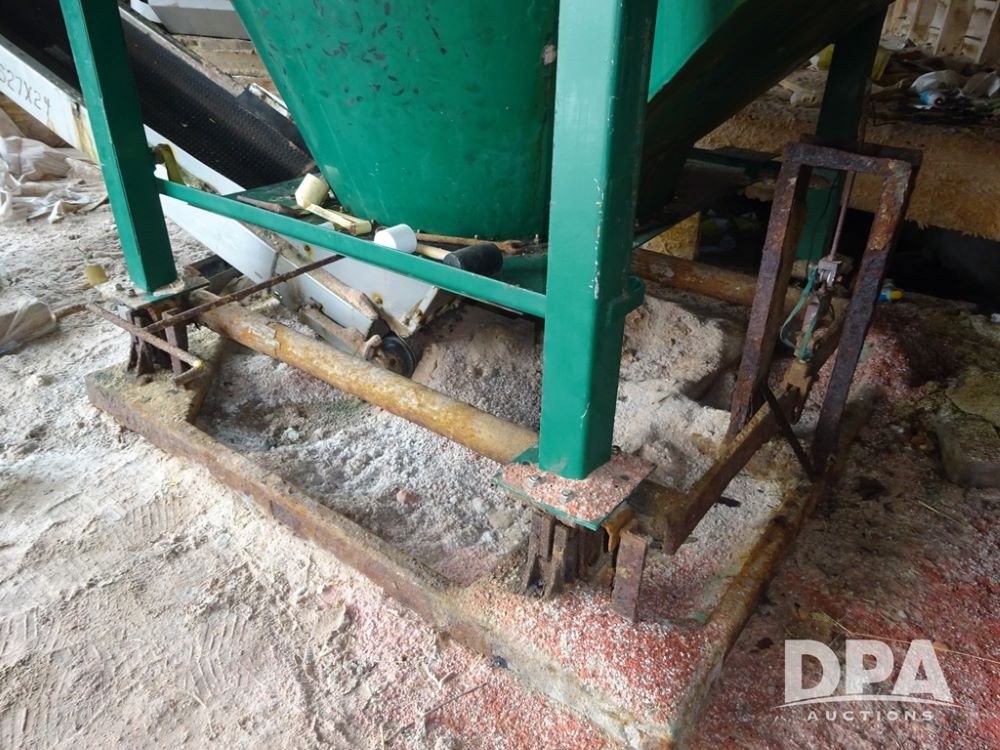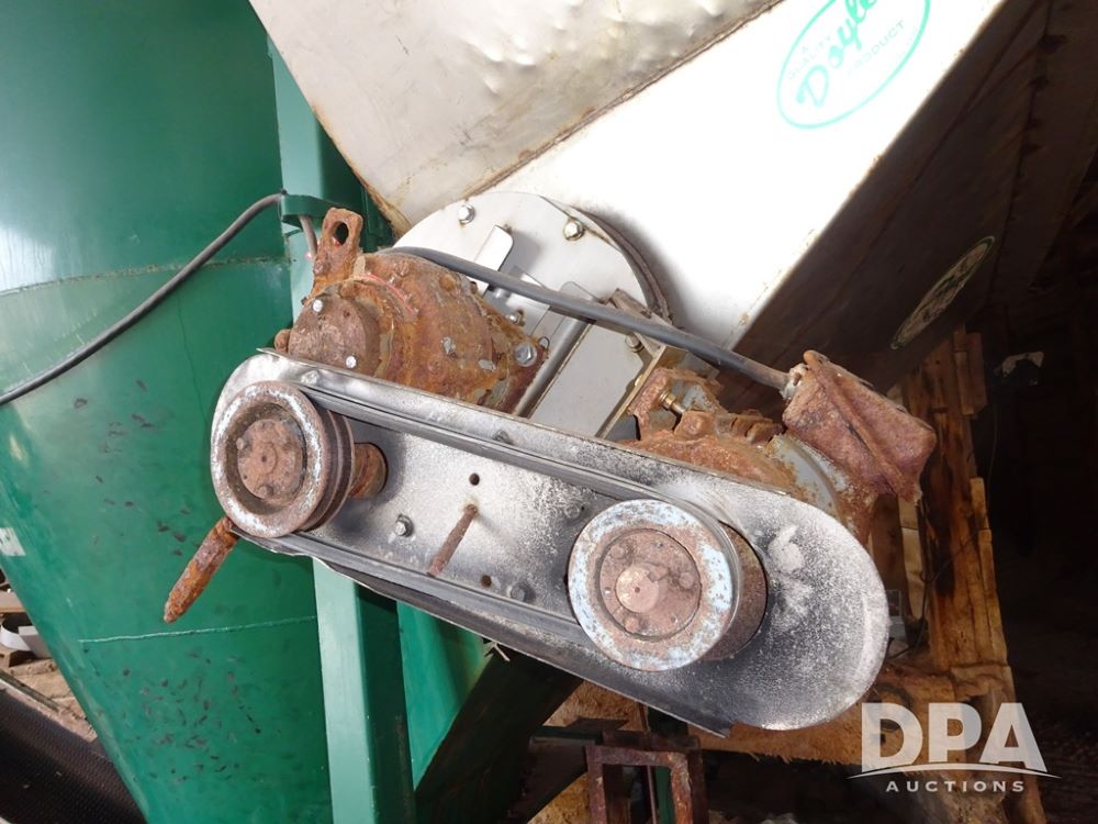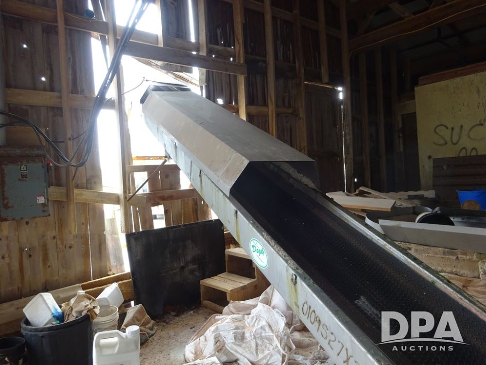 Doyle Vertical Dry Blender (PZ14120), Doyle vertival dry fertilizer blender, side mount hopper, Matko digital scale head, Doyle stationary discharge conveyor (S/N 0109S27X24), 27' length x 24" belt, electric motor.