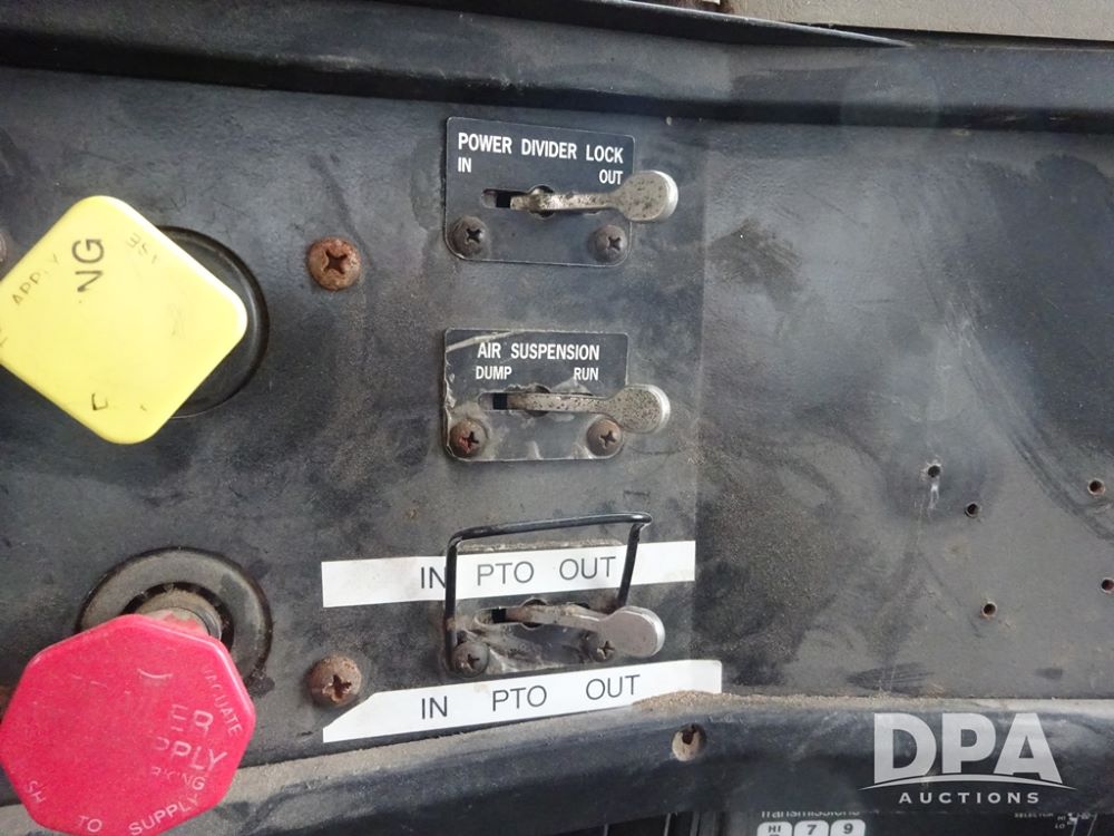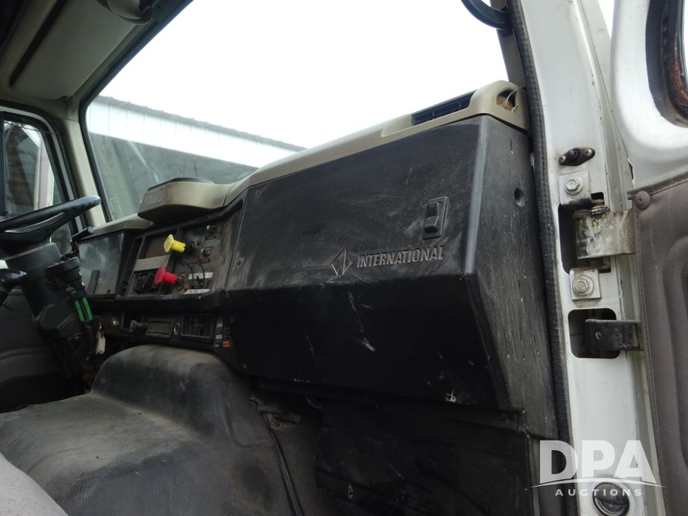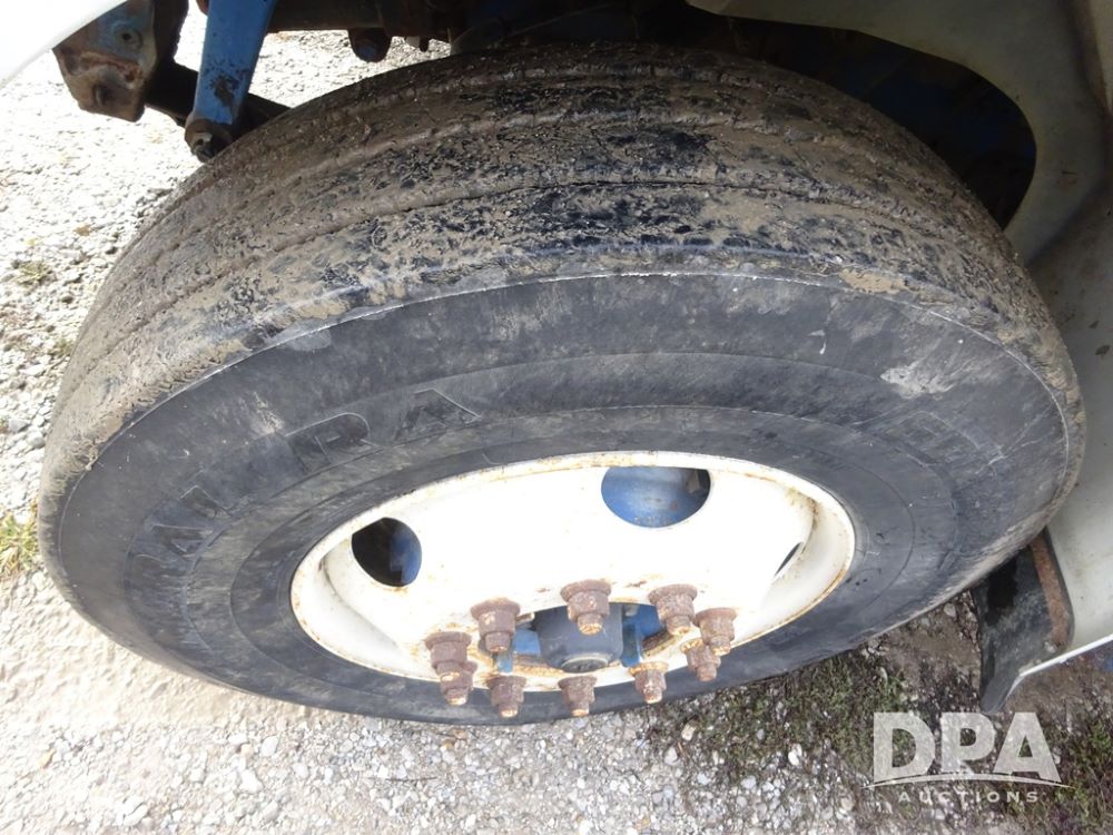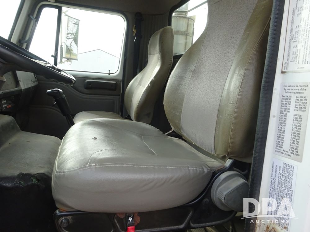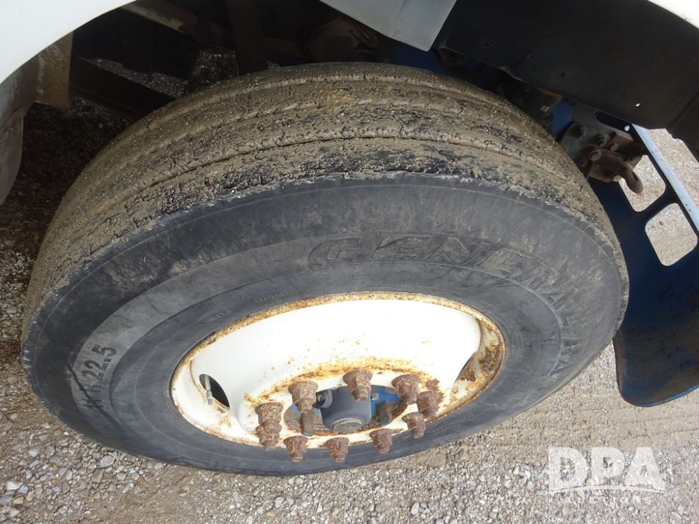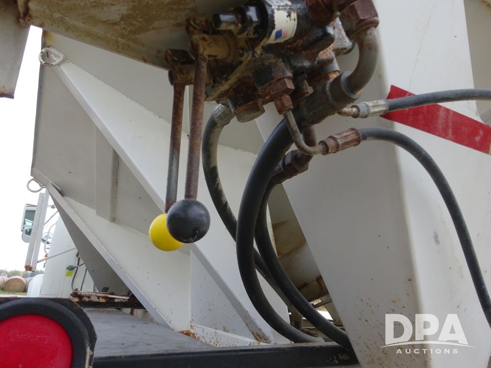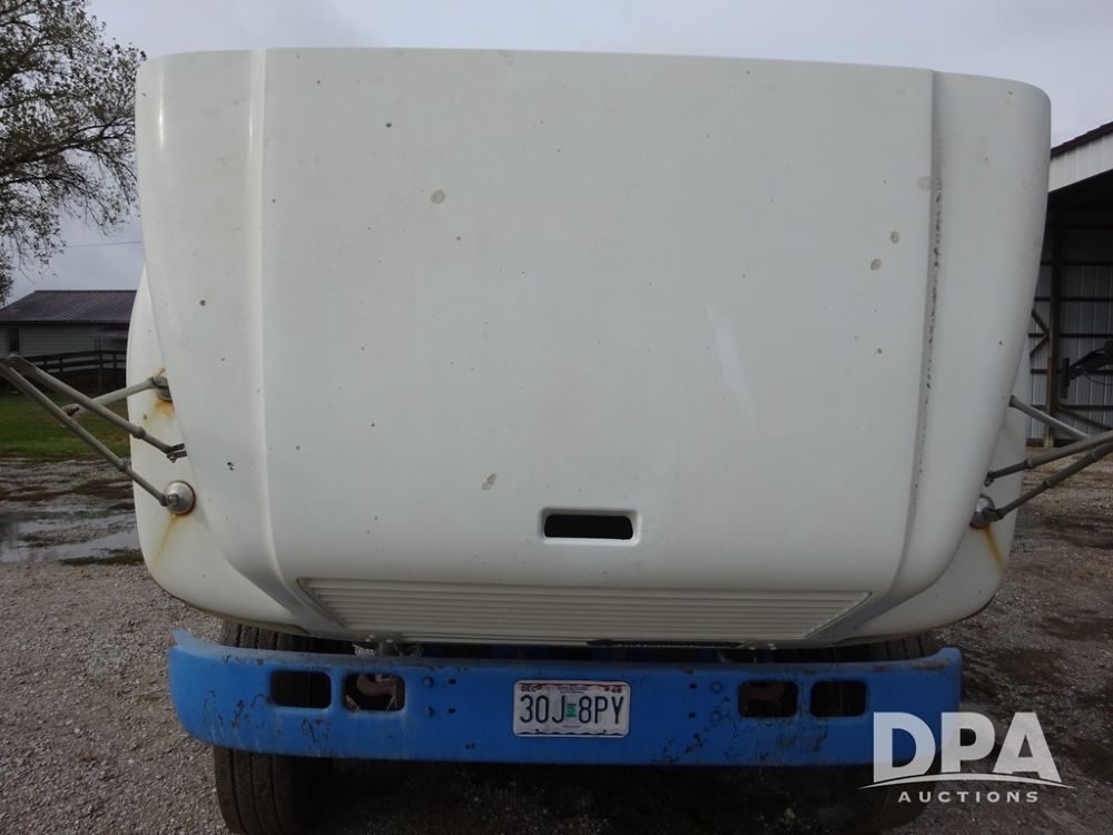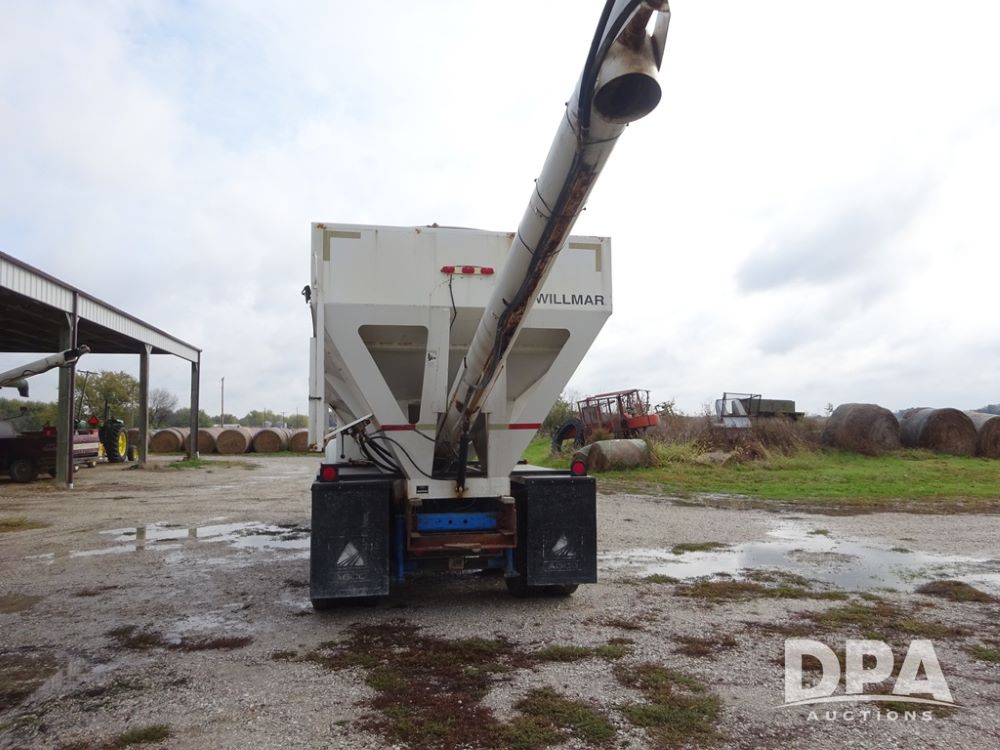 2003 International 8100 Dry Tender Truck (PZ14121), Cat diesel engine, Eaton Fuller 10 speed transmission, heat, Am/Fm radio, cruise control, tandem axle, air ride suspension, Willmar 1600 dry tender box, rear discharge auger, hydraulic, dual fuel tanks, single exhaust, 11R22.5 tires, shows 377,860 miles.