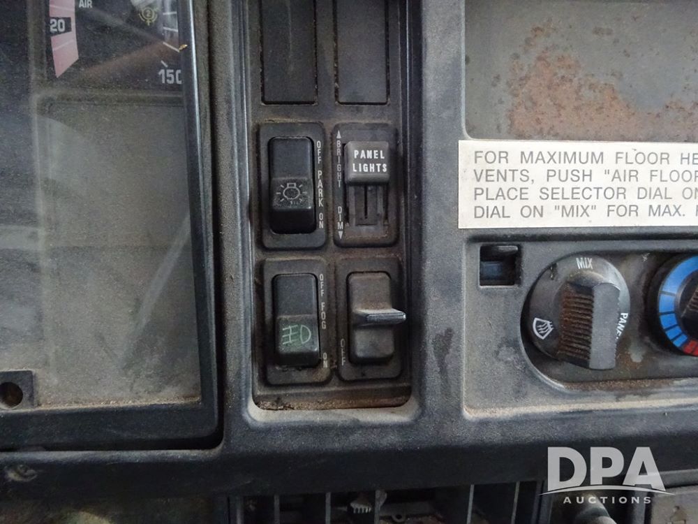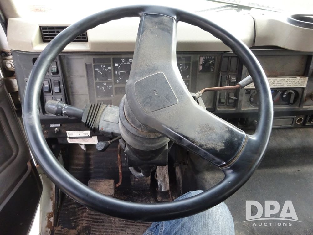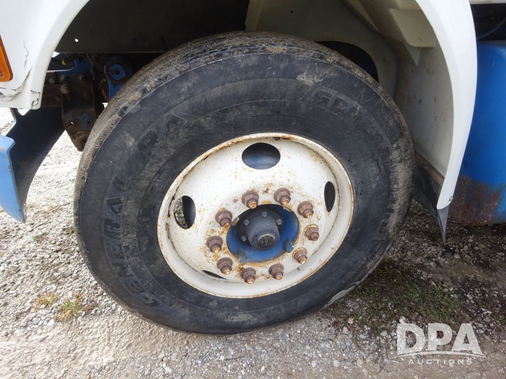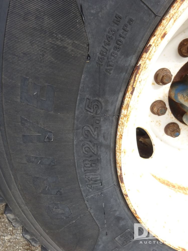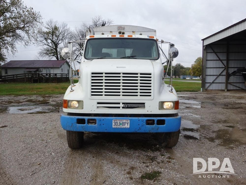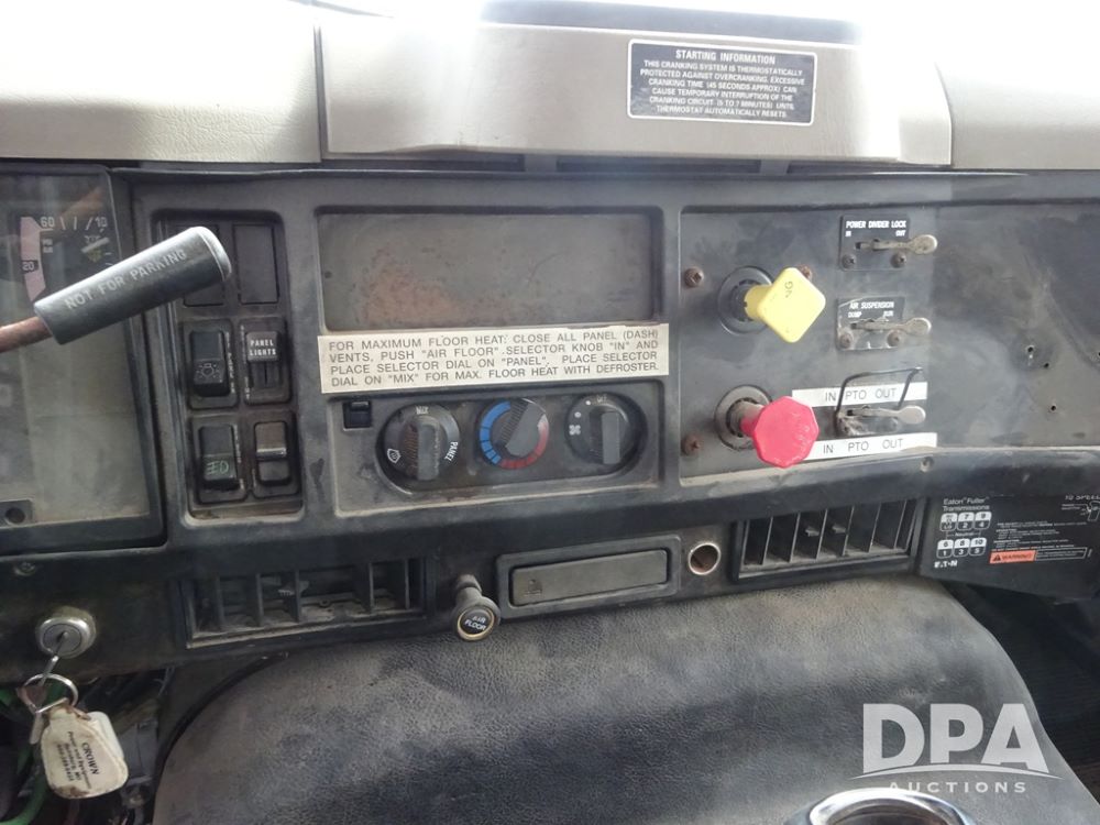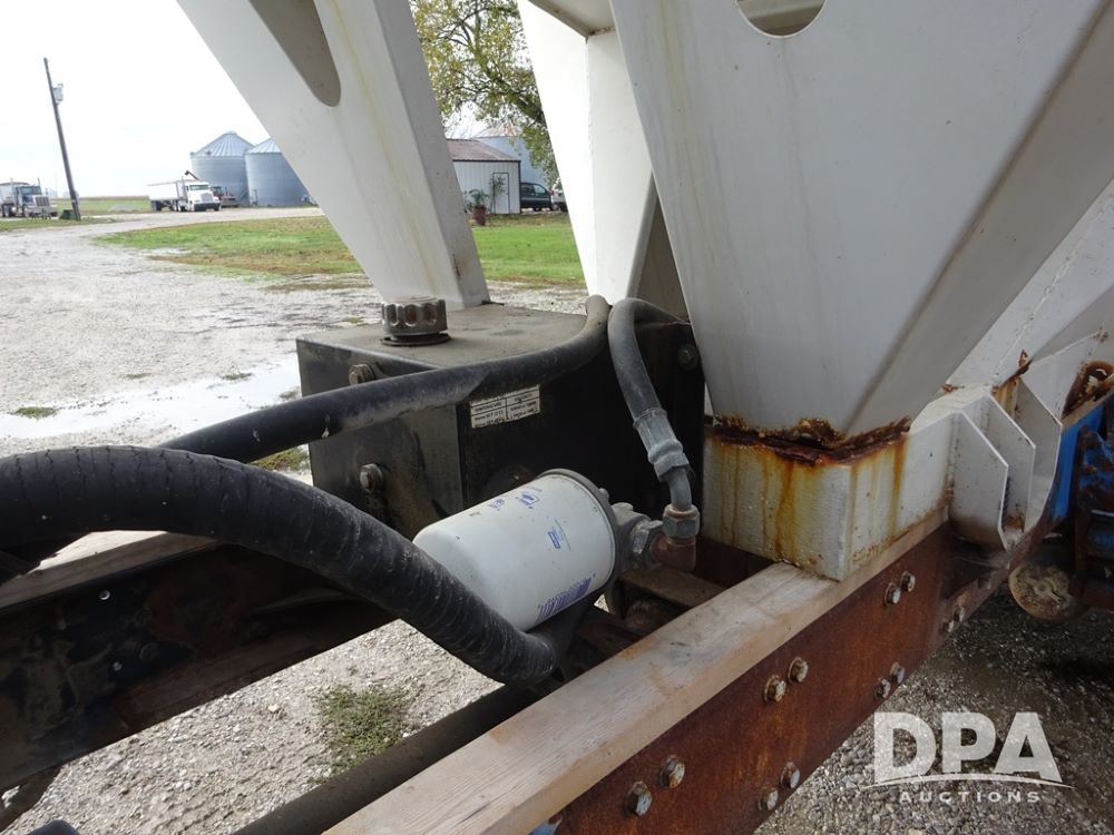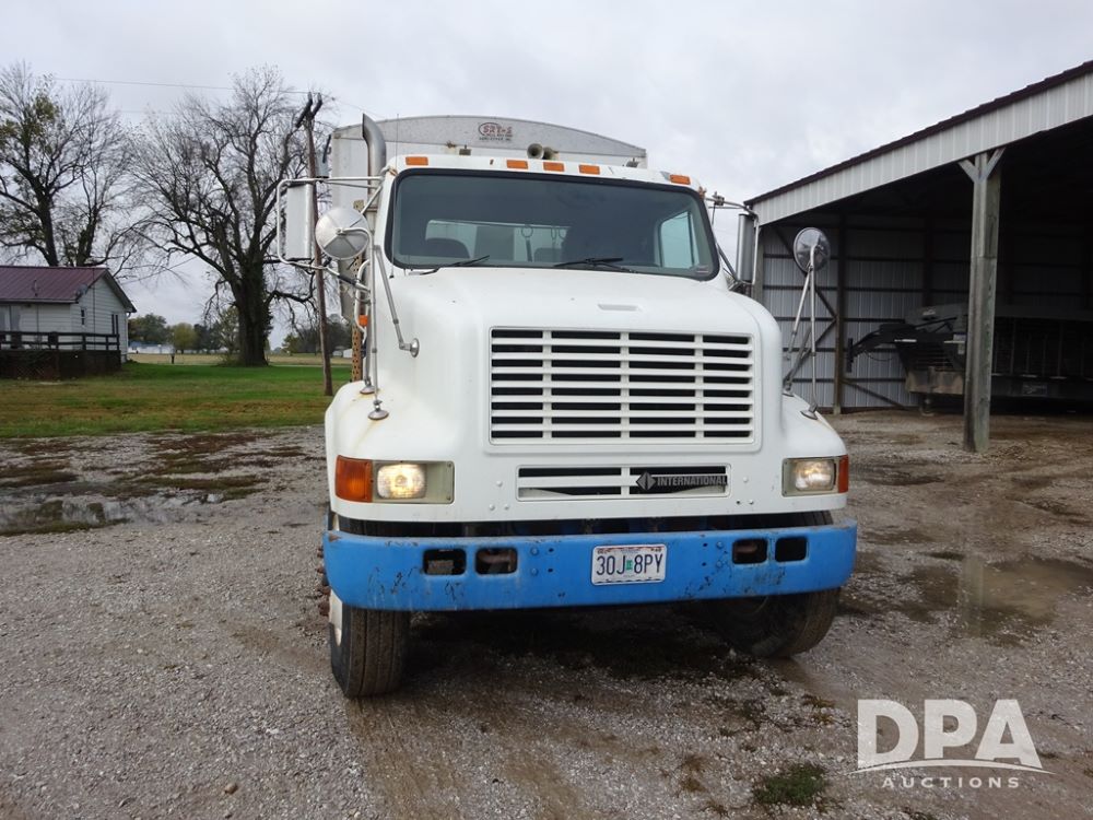 2003 International 8100 Dry Tender Truck (PZ14121), Cat diesel engine, Eaton Fuller 10 speed transmission, heat, Am/Fm radio, cruise control, tandem axle, air ride suspension, Willmar 1600 dry tender box, rear discharge auger, hydraulic, dual fuel tanks, single exhaust, 11R22.5 tires, shows 377,860 miles.