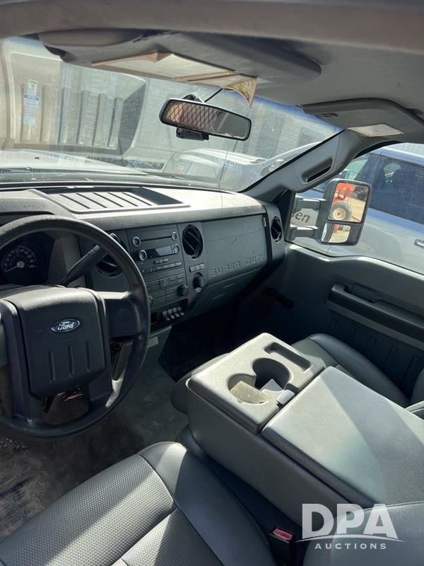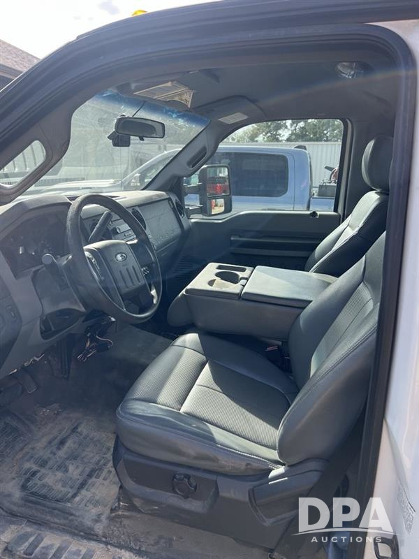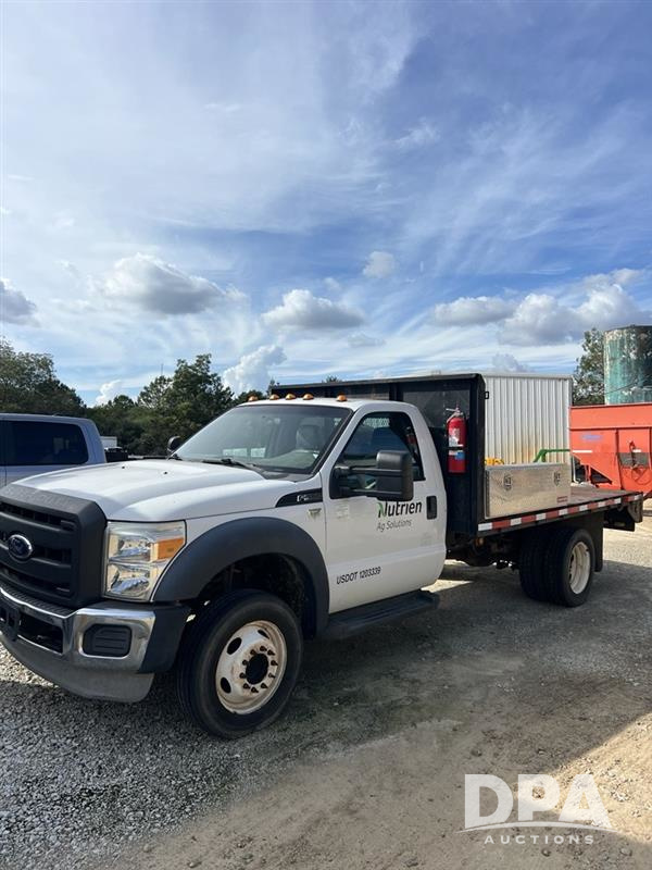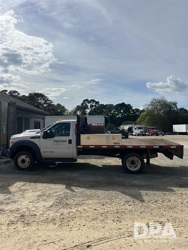 2014 Ford F550 Flatbed Truck (PZ14137, Unit 11276), gas engine, automatic transmission, air conditioning, heat, Am/Fm CD radio, running boards, dually, steel flatbed, headache rack, shows 154,165 mile.
