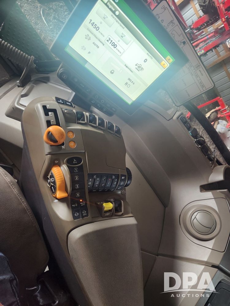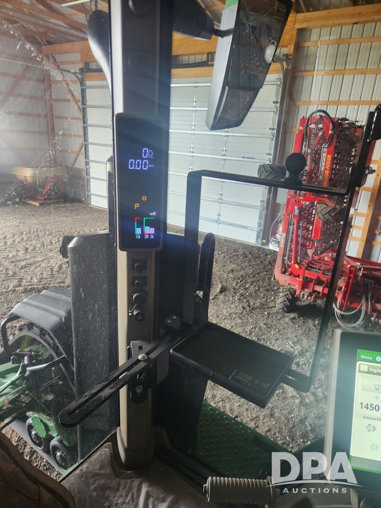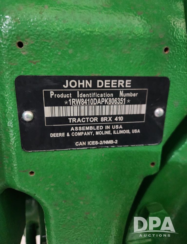 2023 John Deere 8RX 410 Tractor (MN1136), John Deere turbocharged diesel engine, E23 (powershift) transmission, Signature Series Cab, heated/cooled seats, buddy seat, air/heat, AM/FM radio, 6 SCV remotes, 84 GPM dual pumps, 3 point, PTO, Gen 4 command center, 4.0 activations, 18 inch tracks, 120 inch spacing, approx. 420 hours.