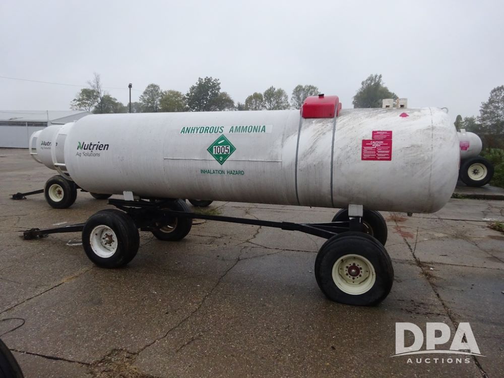 NH3 Nurse Tank (PZ14094, Unit 96105, Tank 42), 1450 gallon NH3 nurse tank, front fill, poly water tank, no data plate, VTP 2-24, Dalton WN1660 5th wheel running gear, 12.5L-15 flotation tires.