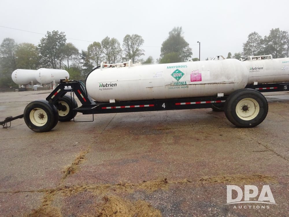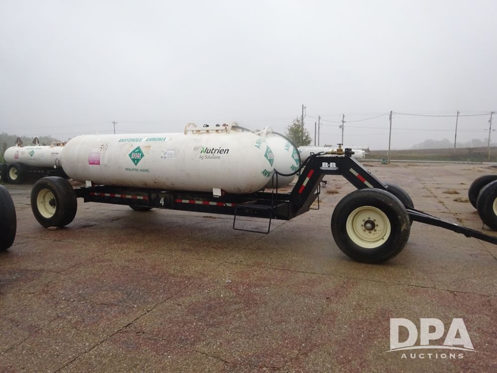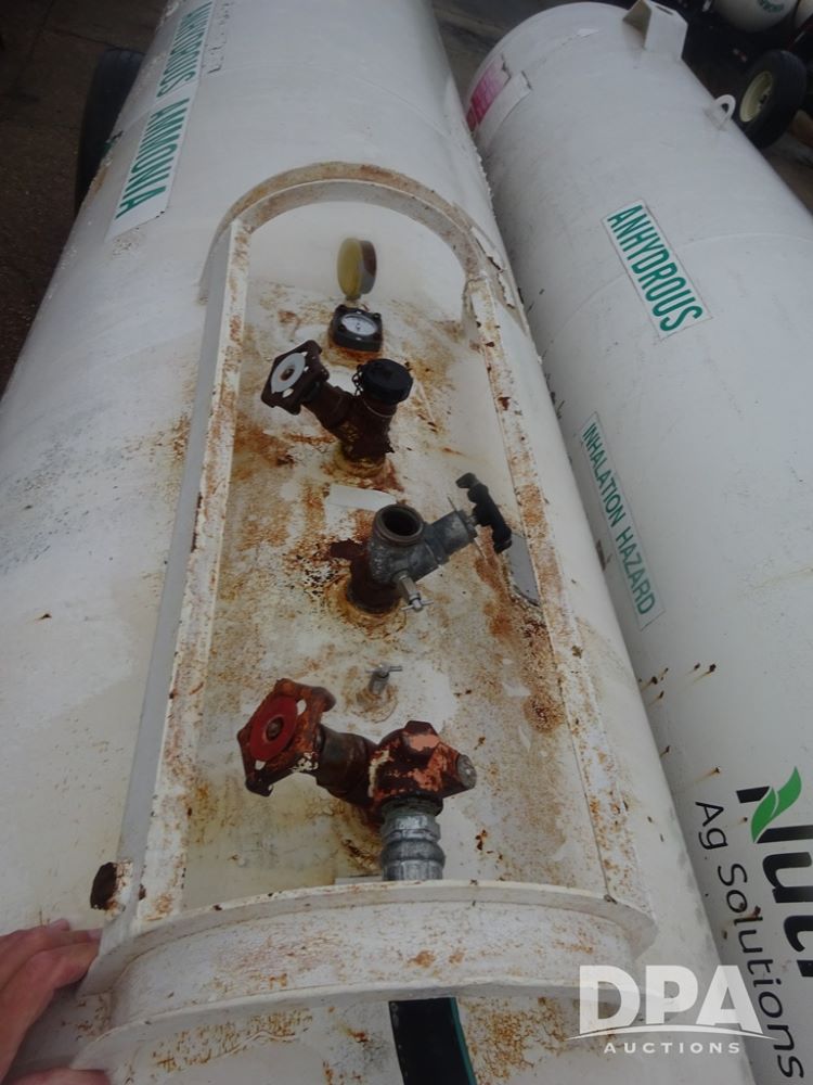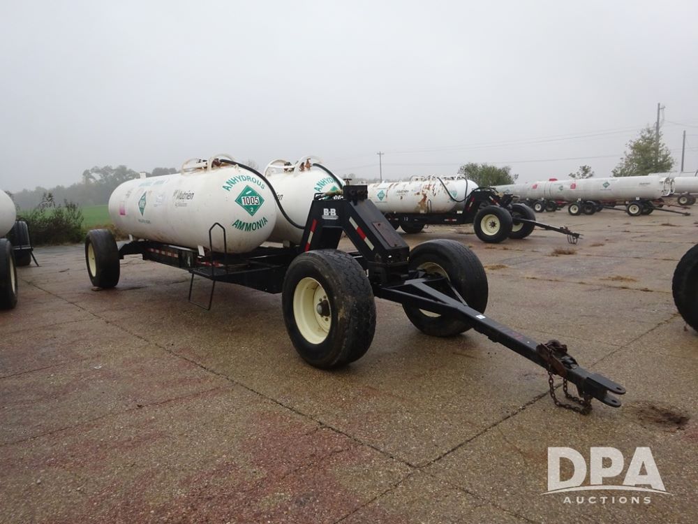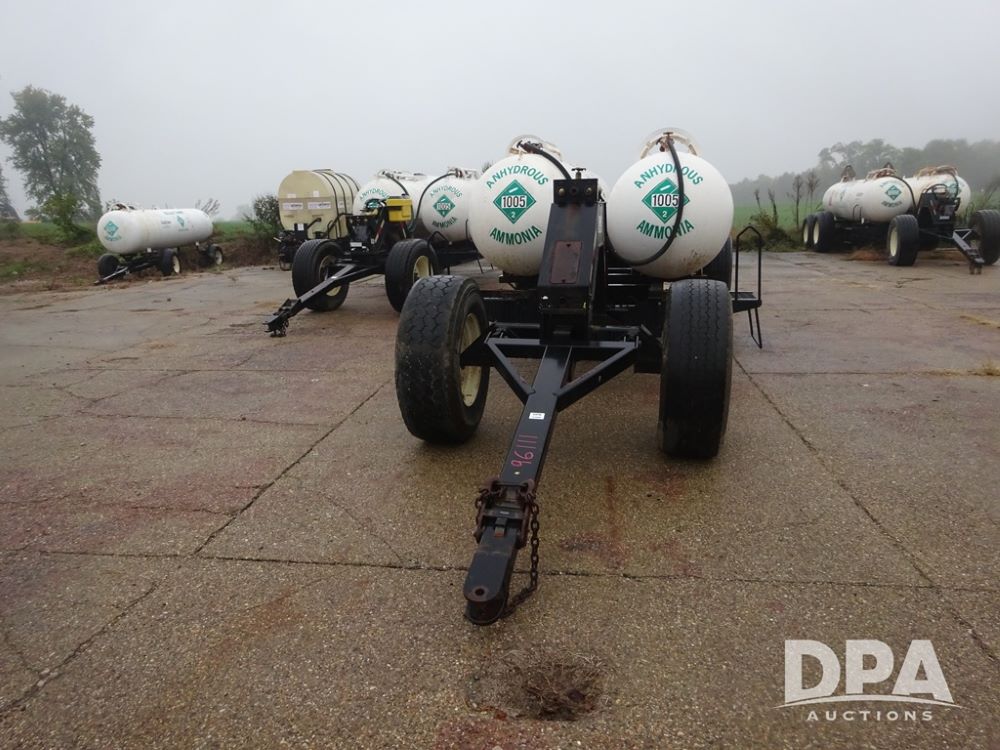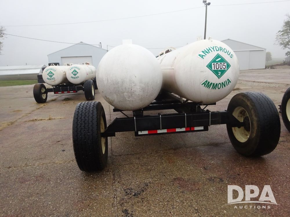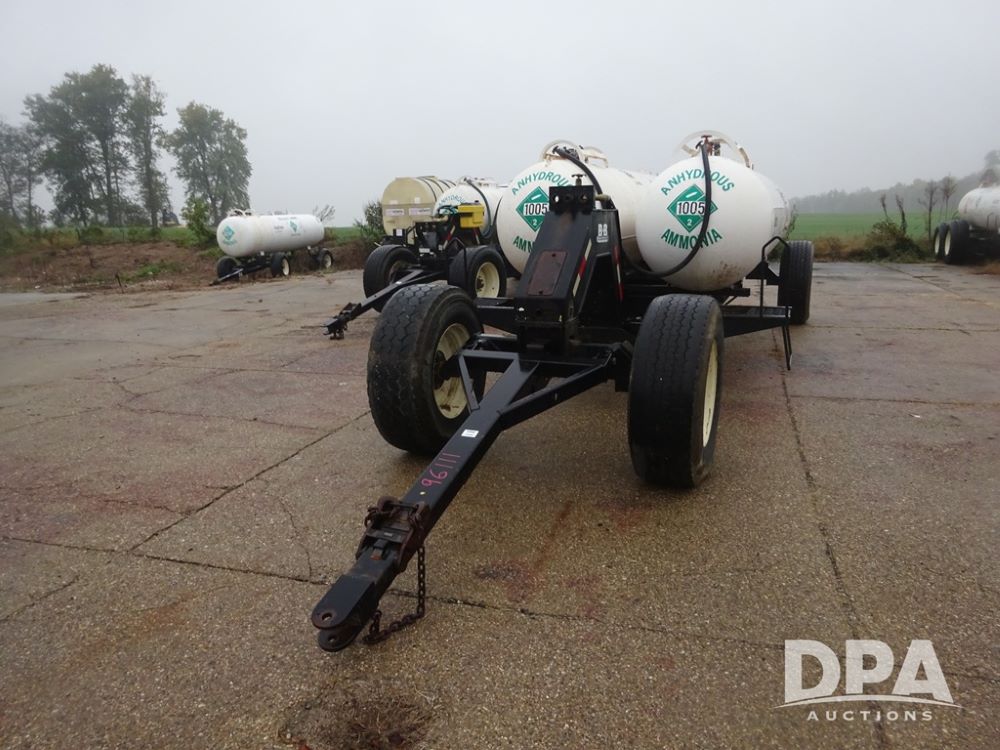 Double NH3 Nurse Tanks (PZ14083, Unit 96111, Tank 4), Double 1000 gallon NH3 nurse tanks, top front fill, 1 tank has data plate, VTP 2-24, B-B 5th wheel running gear, side steps, 385/65R22.5 tires.