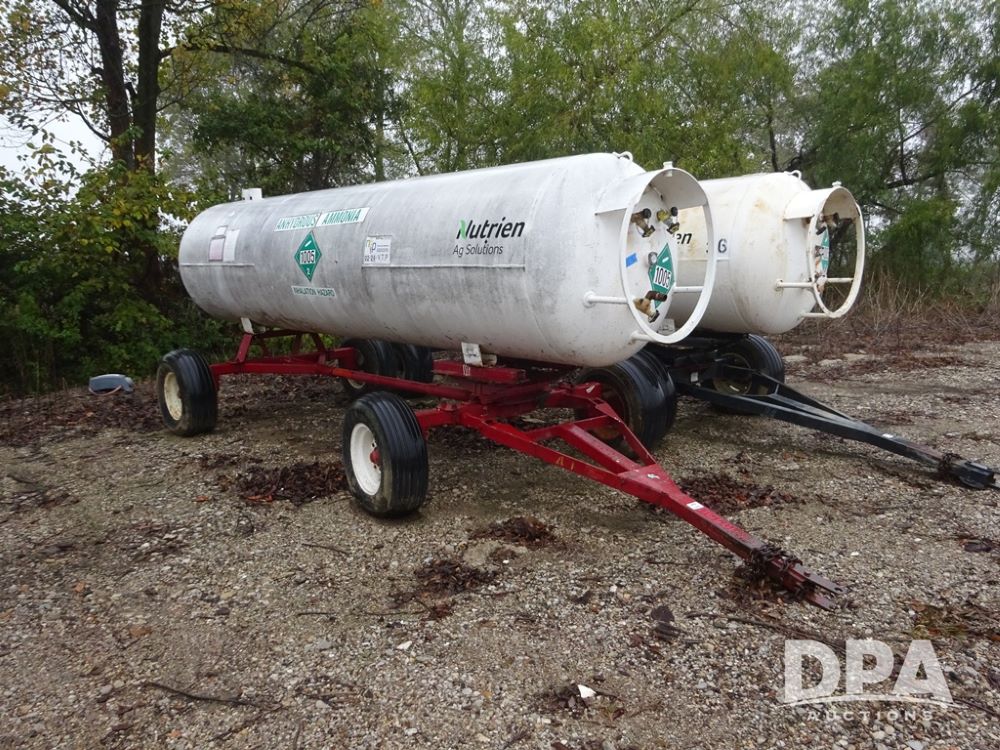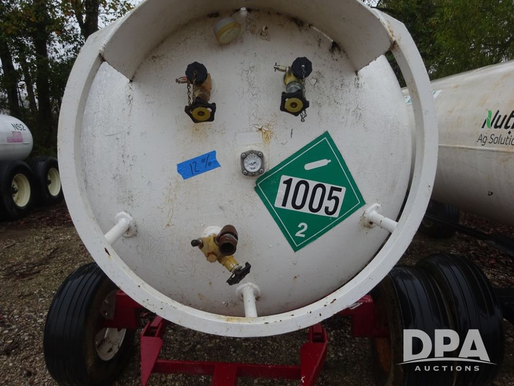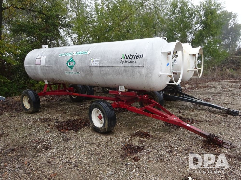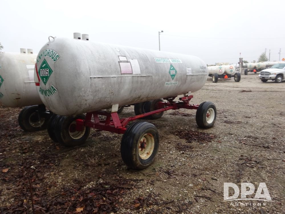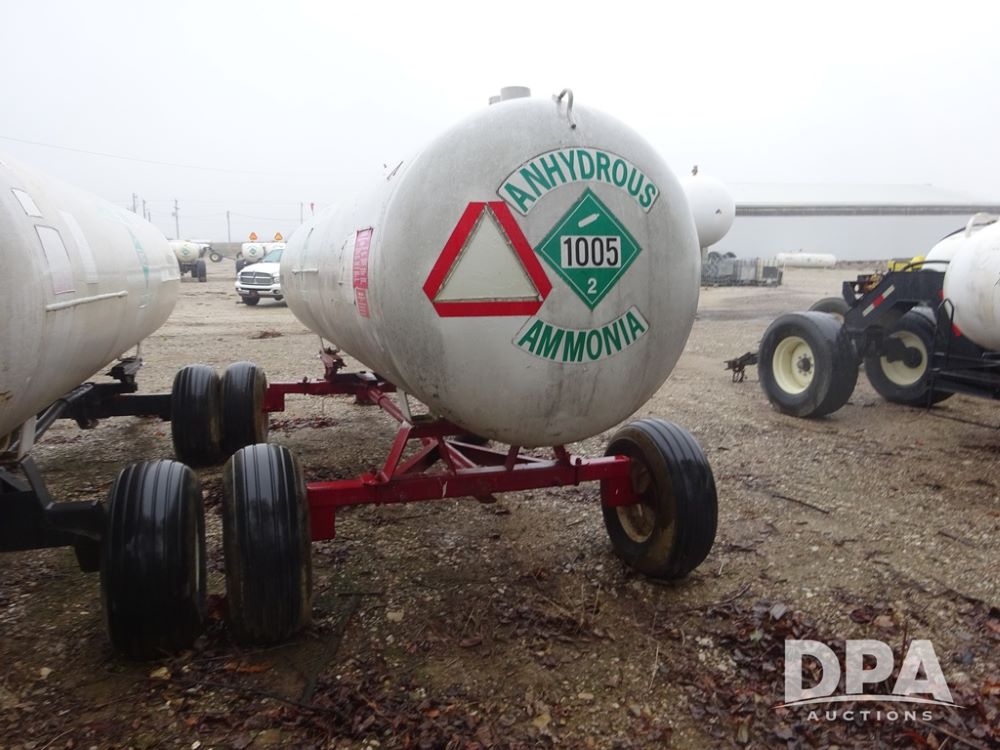 NH3 Nurse Tank (PZ14090, Unit 107191, Tank 41), 1450 gallon NH3 nurse tank, front fill, no data plate, VTP 2-24, Clark 5th wheel adjustable running gear, 12.5L-15 flotation tires.