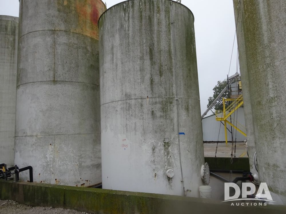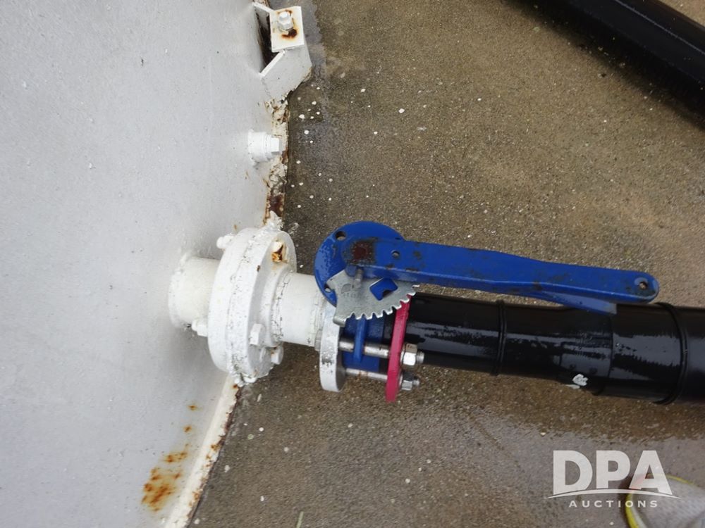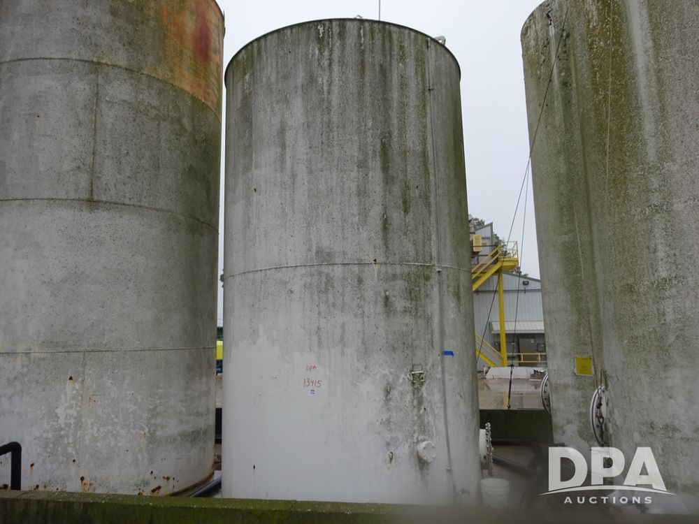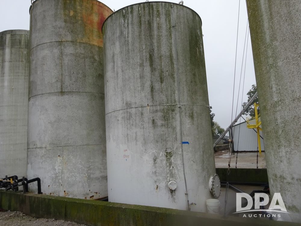 Steel Storage Tank (PZ14095, Unit 13415), 12,000 gallon vertical steel storage tank, valve.