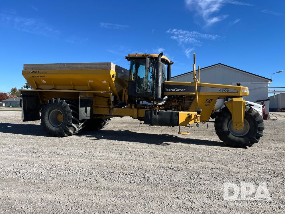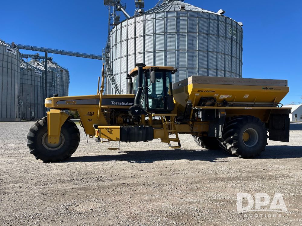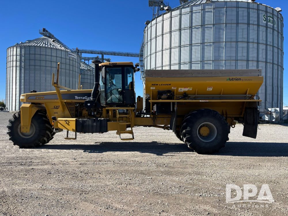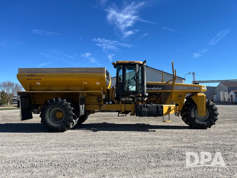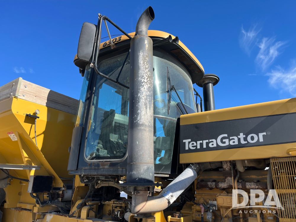 2011 Terra Gator 6303 Dry Floater (JN3326, Unit 115689), AGCO SISU diesel engine, CVT transmission, air conditioning, heat, Am/Fm radio, New Leader 14' stainless steel dry spreader box (S/N 134254), twin spinner, all hydraulic, Alliance Agri-Star 1000/50R25 tires, lightbar, Raven SmarTrax, Raven Viper Pro monitor, shows 4,893 hours.