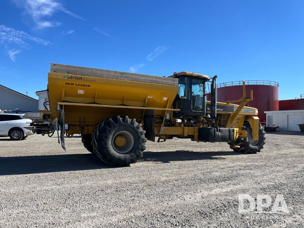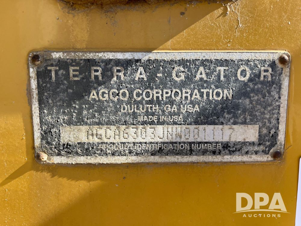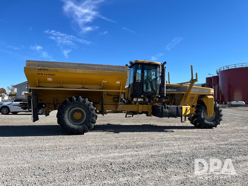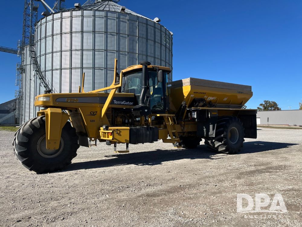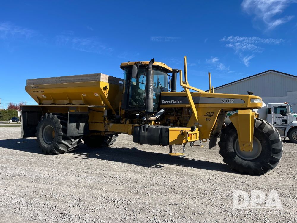2011 Terra Gator 6303 Dry Floater (JN3326, Unit 115689), AGCO SISU diesel engine, CVT transmission, air conditioning, heat, Am/Fm radio, New Leader 14' stainless steel dry spreader box (S/N 134254), twin spinner, all hydraulic, Alliance Agri-Star 1000/50R25 tires, lightbar, Raven SmarTrax, Raven Viper Pro monitor, shows 4,893 hours.
