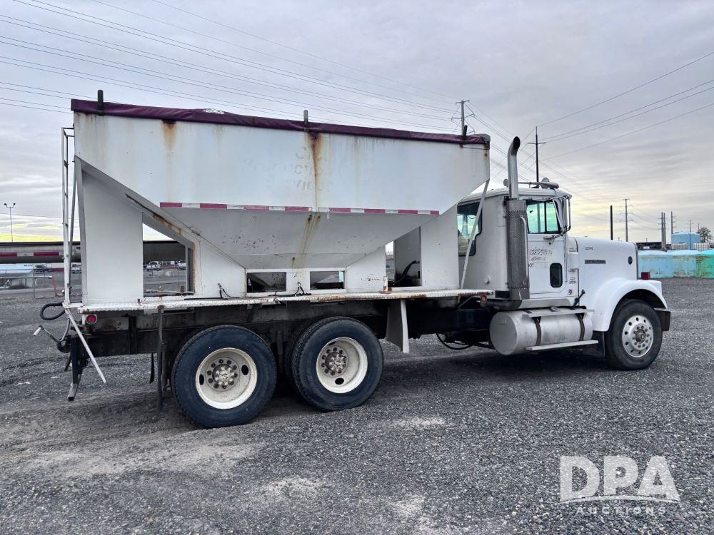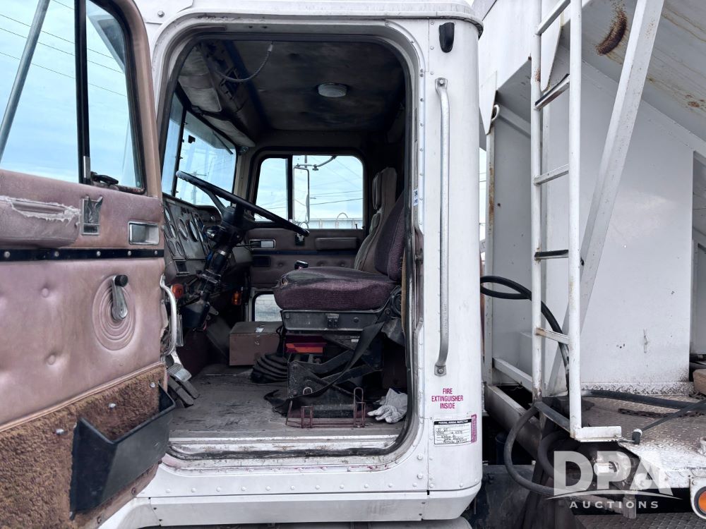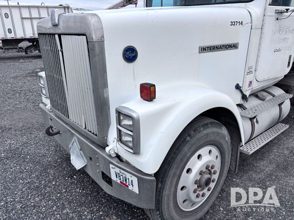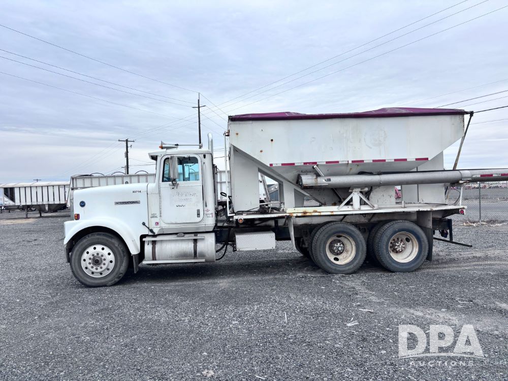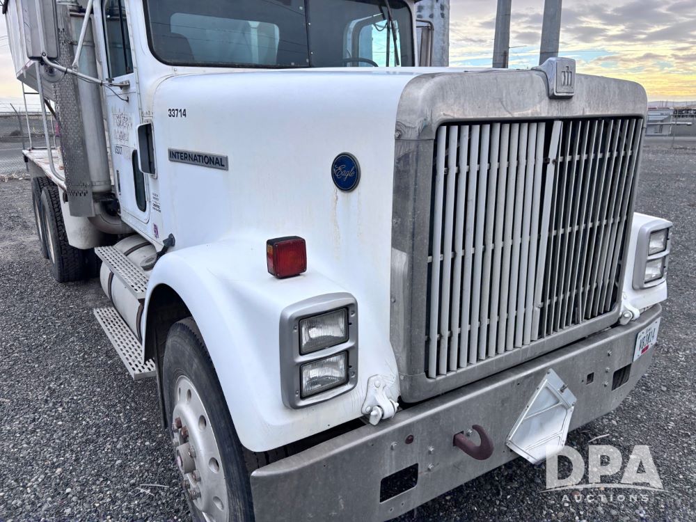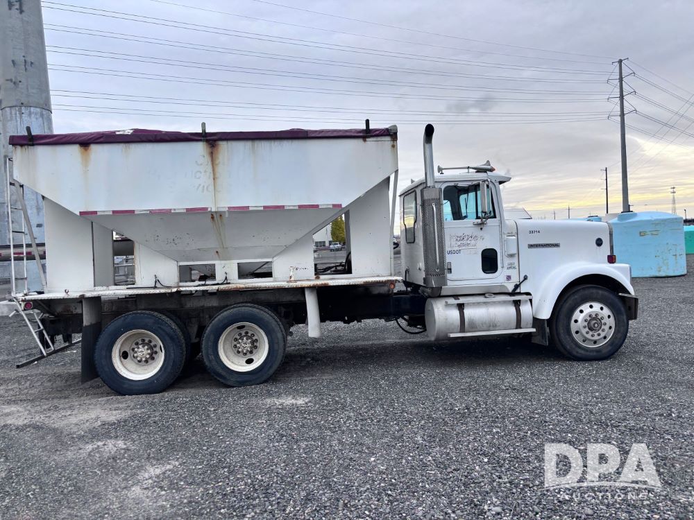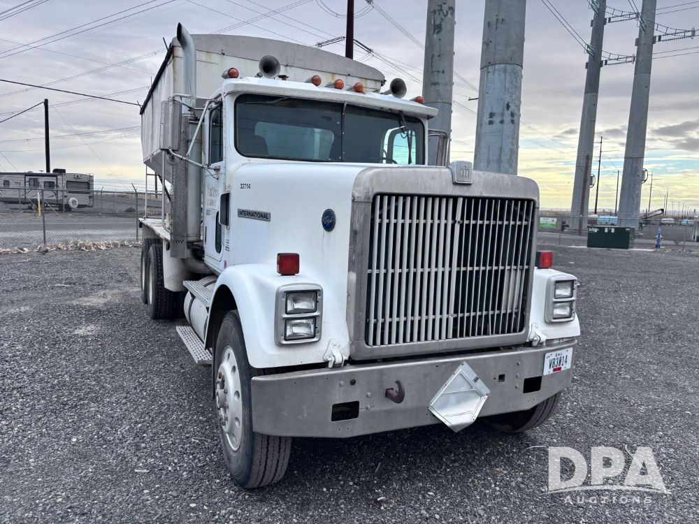 1986 IHC Eagle 9370 Dry Tender Truck (GP11922, Unit 33714), Cummins diesel engine, Eaton Fuller 13 speed transmission, air conditioning, heat, Am/Fm radio, engine brake, tandem axle, full screw, air ride suspension, 16 ton dry tender box, side discharge auger, all hydraulic, roll over tarp, 11R24.5 tires.