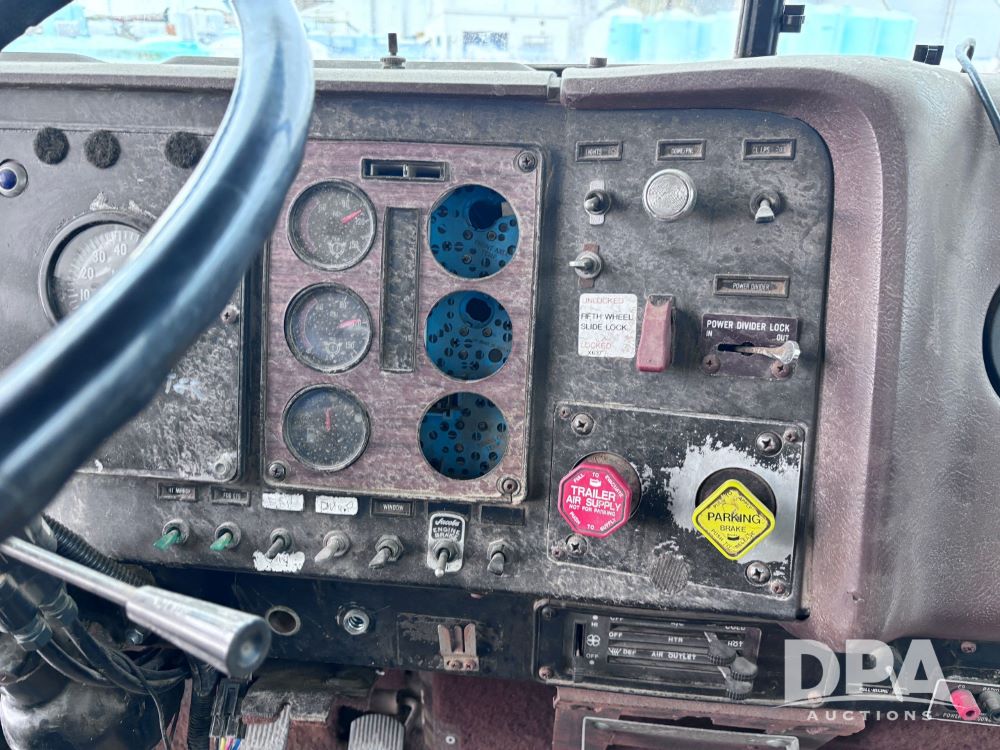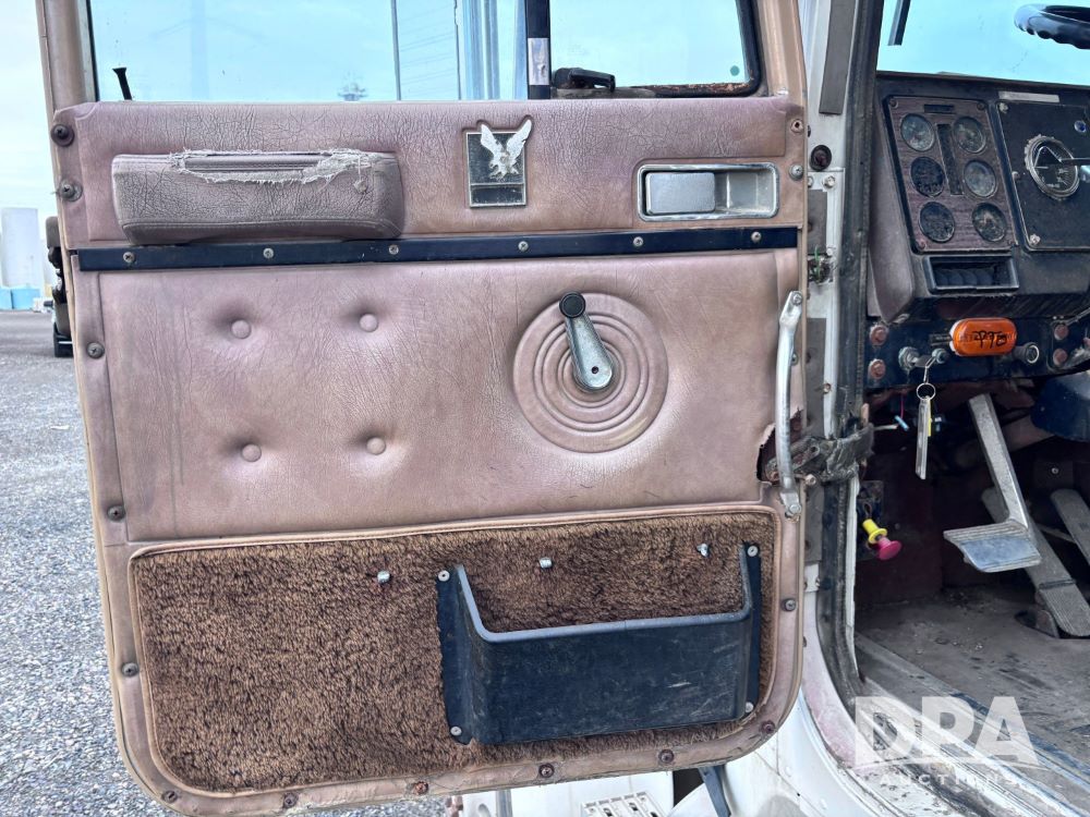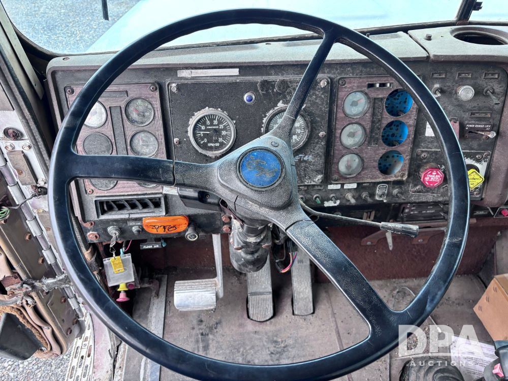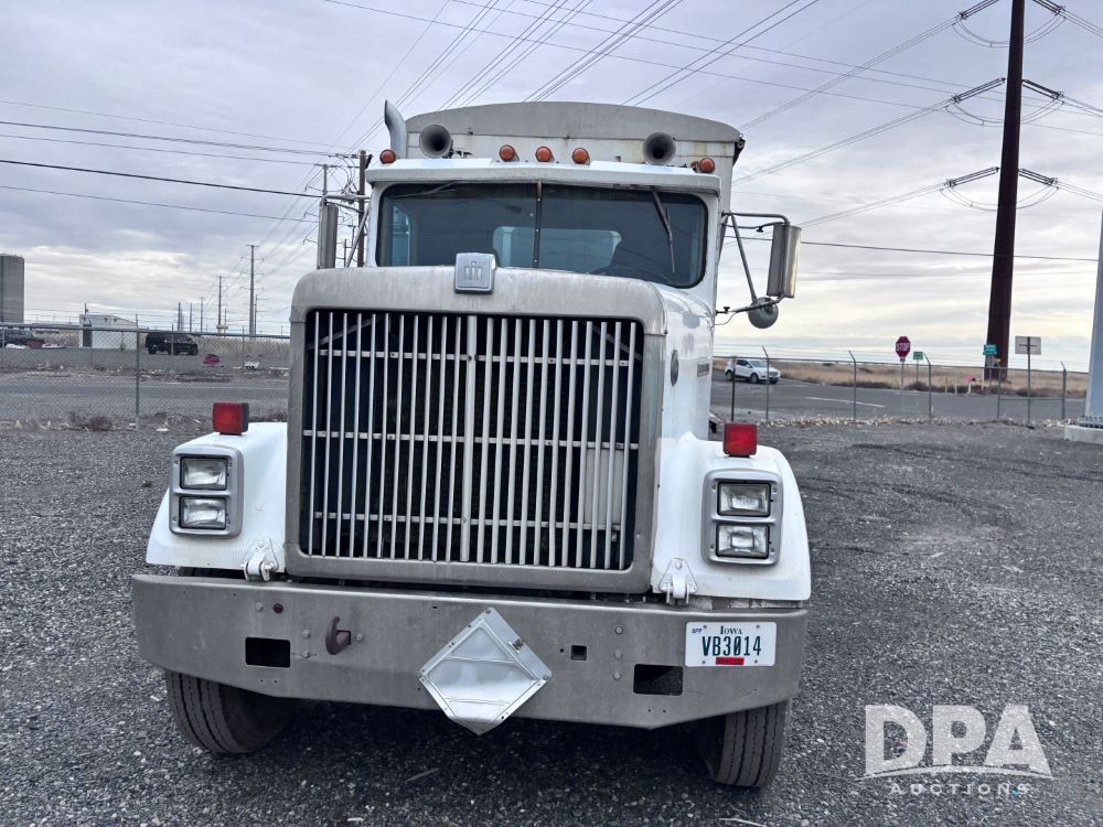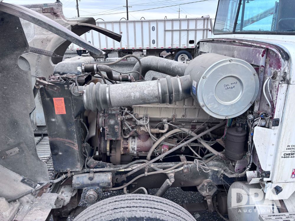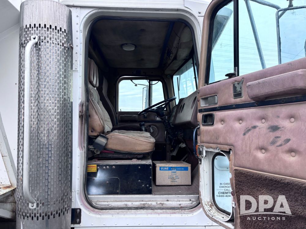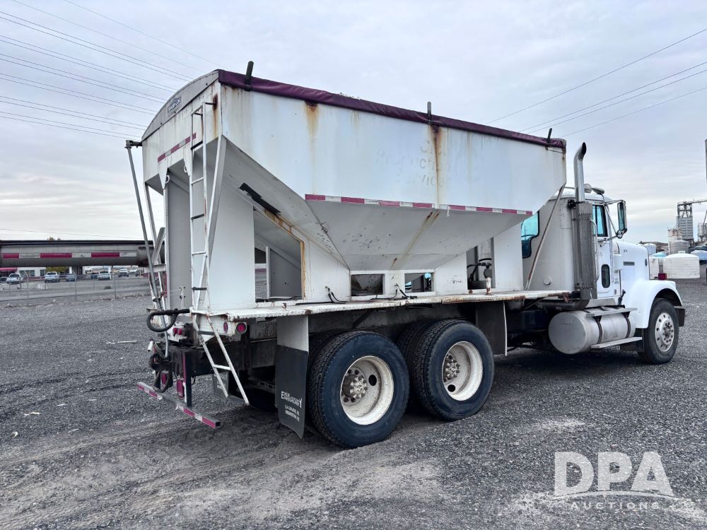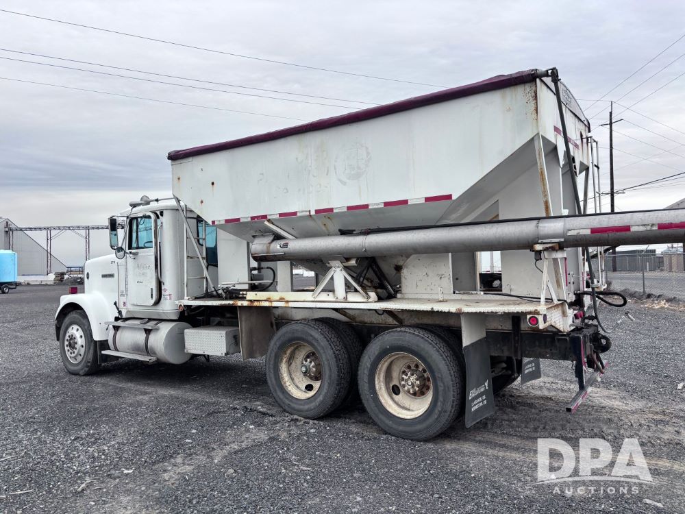 1986 IHC Eagle 9370 Dry Tender Truck (GP11922, Unit 33714), Cummins diesel engine, Eaton Fuller 13 speed transmission, air conditioning, heat, Am/Fm radio, engine brake, tandem axle, full screw, air ride suspension, 16 ton dry tender box, side discharge auger, all hydraulic, roll over tarp, 11R24.5 tires.