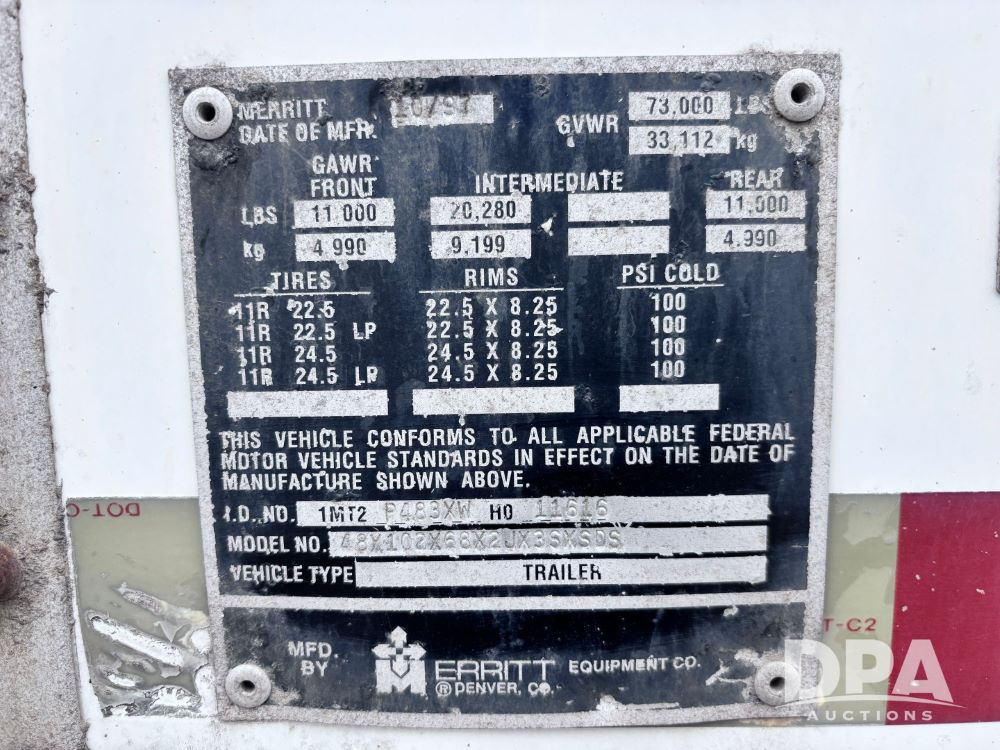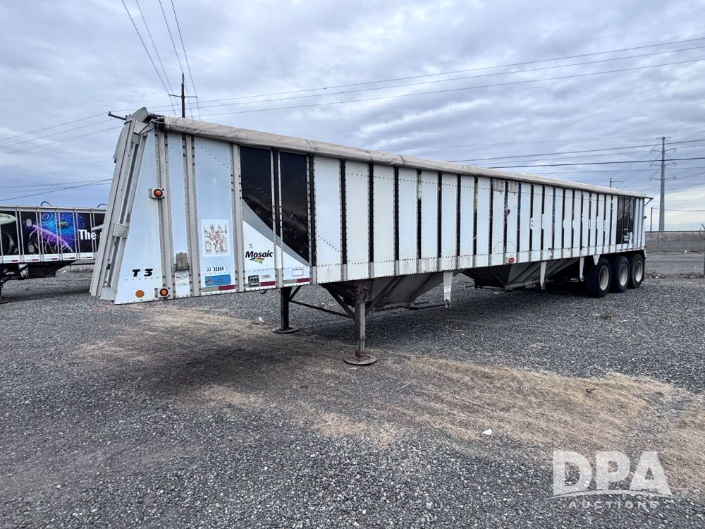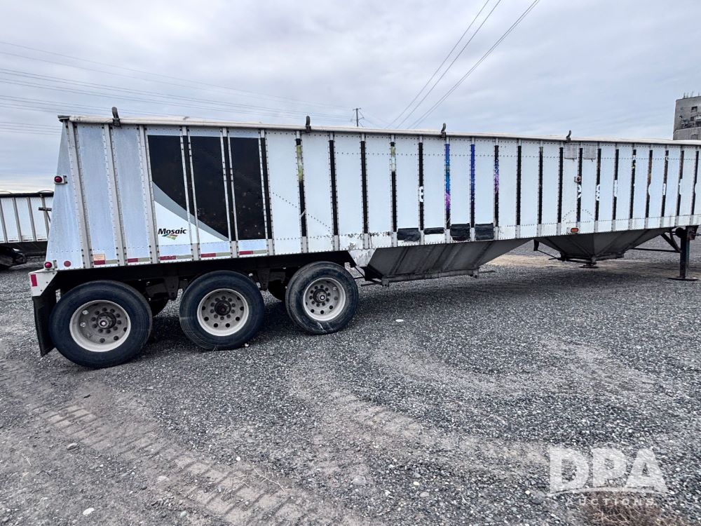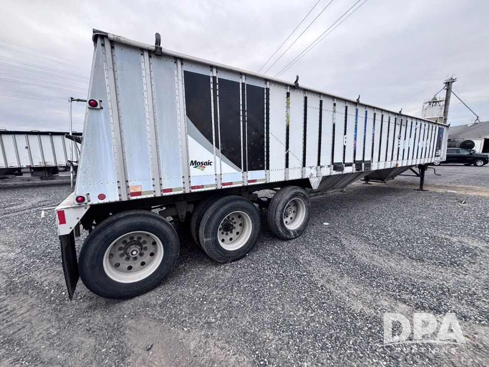 1998 Merritt Hopper Bottom Grain Trailer (GP11924, Unit 32854), 1998 Merritt aluminum hopper bottom grain trailer, Model 48x102x68x2JX3SXSDS, roll over tarp, triple axle, 11R24.5 tires, aluminum rims.