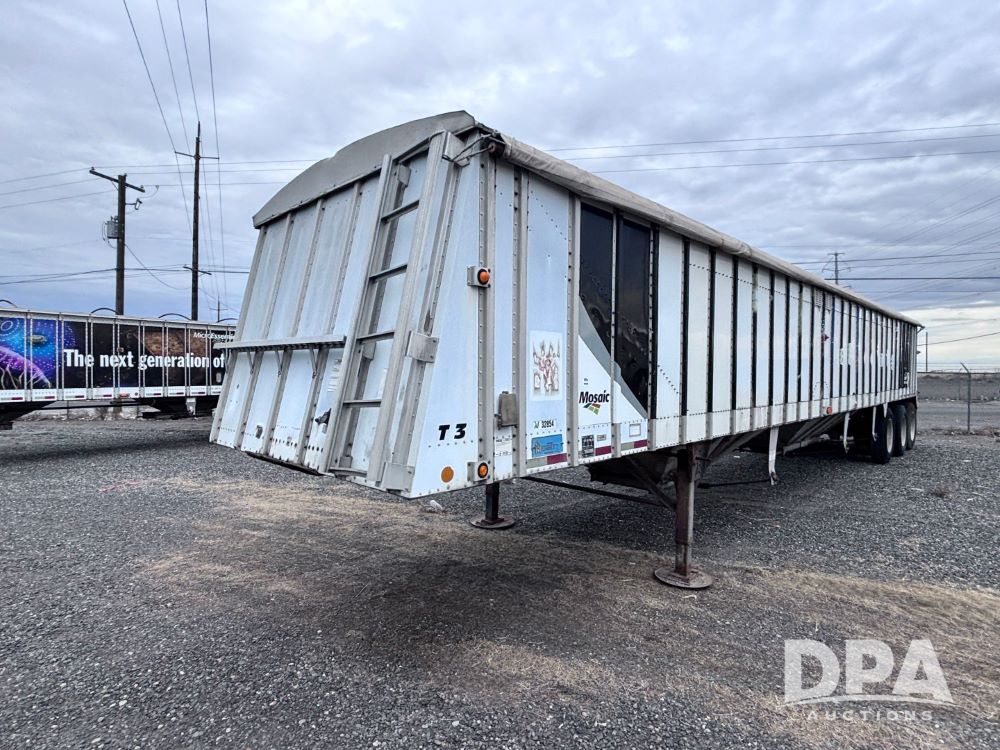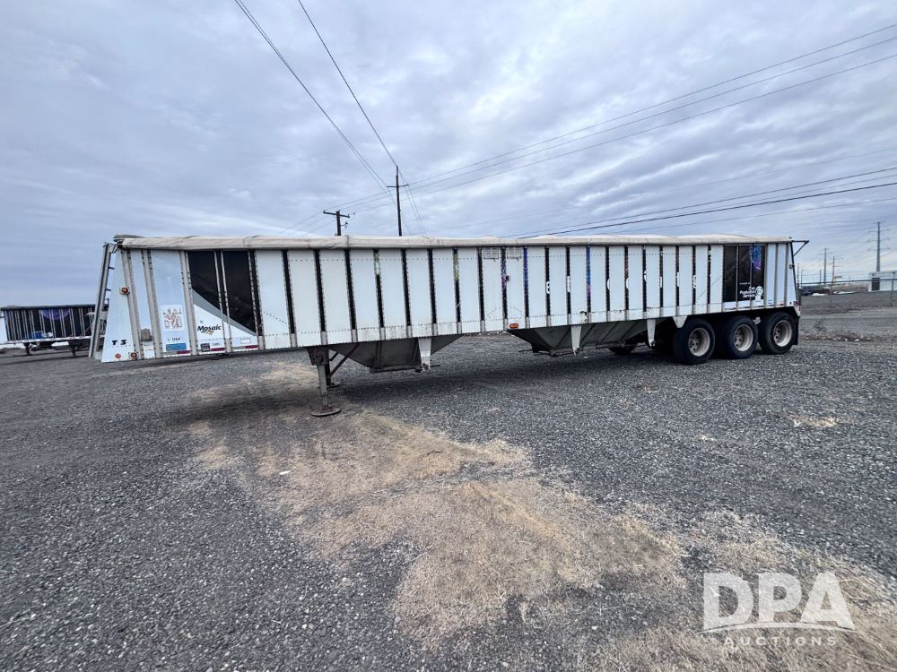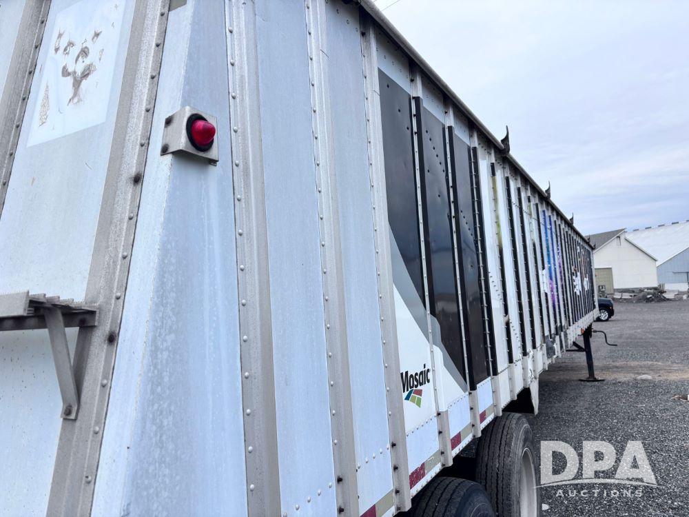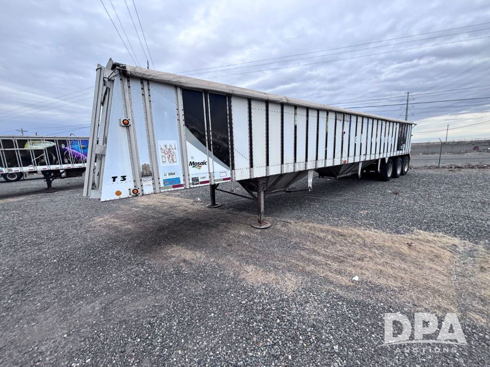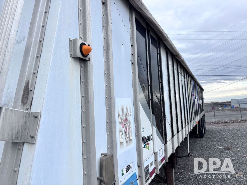 1998 Merritt Hopper Bottom Grain Trailer (GP11924, Unit 32854), 1998 Merritt aluminum hopper bottom grain trailer, Model 48x102x68x2JX3SXSDS, roll over tarp, triple axle, 11R24.5 tires, aluminum rims.