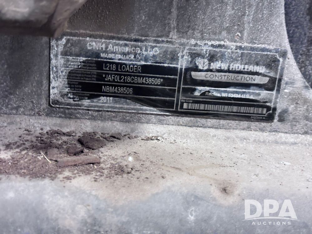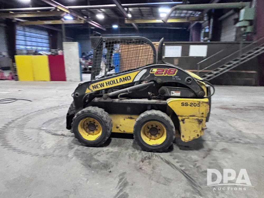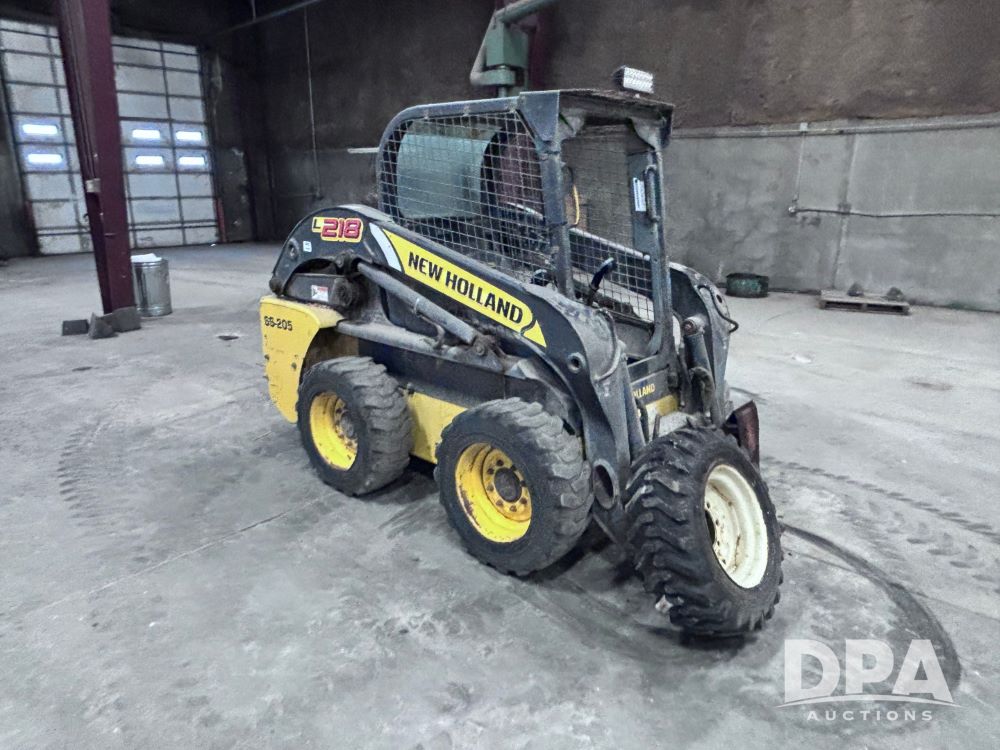 2011 New Holland L218 Skid Steer (GP11921, Unit 31802), diesel engine, hydrostatic transmission, canopy, lights, no bucket, 10-16.5 tires, shows 2,288 hours.