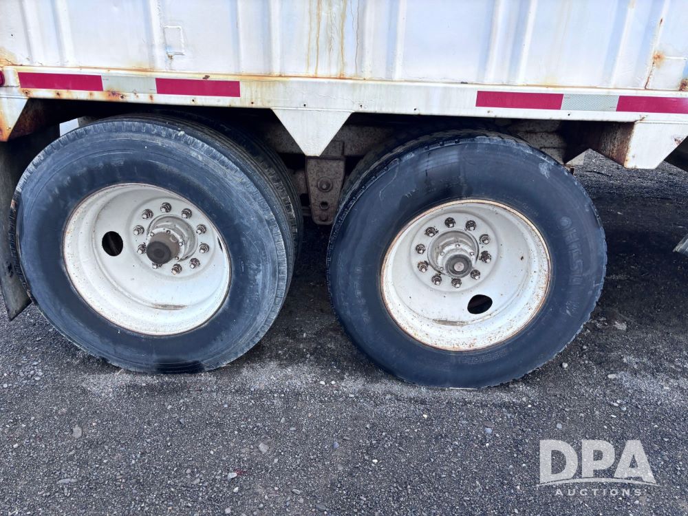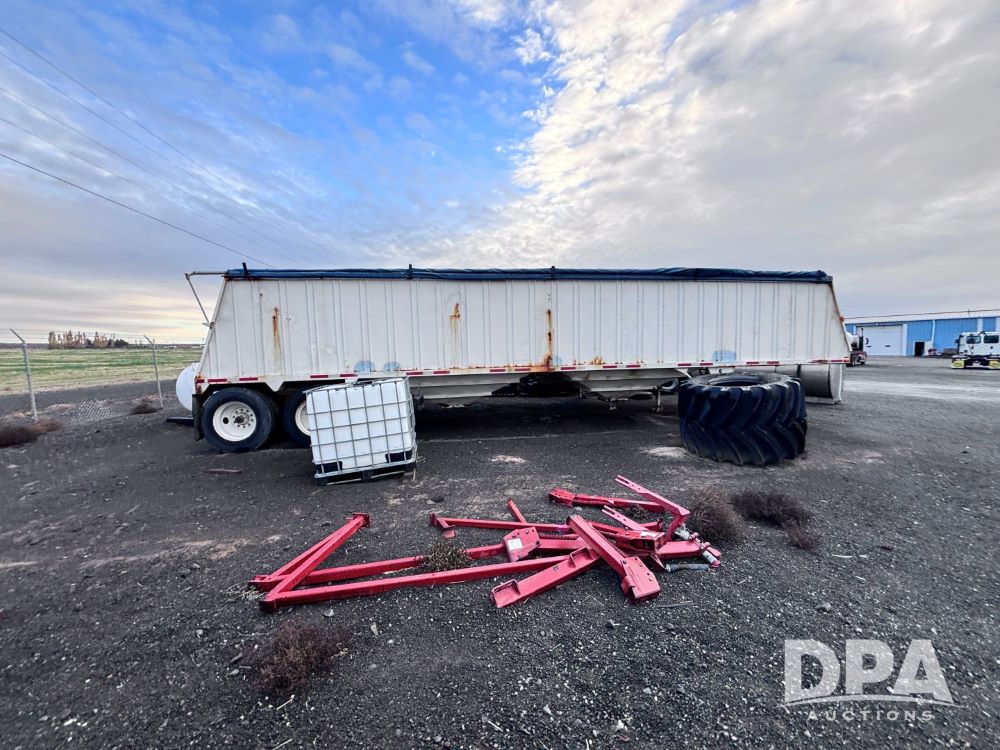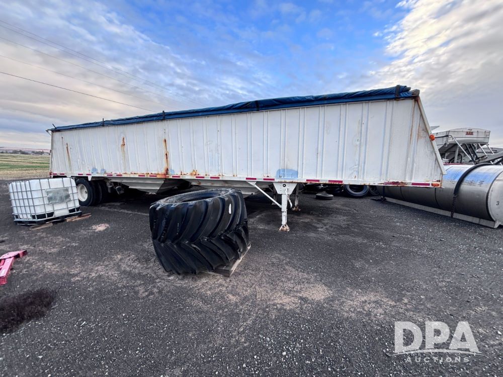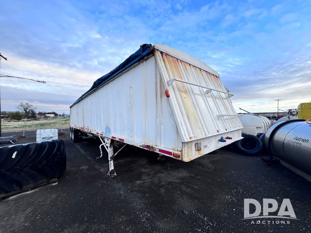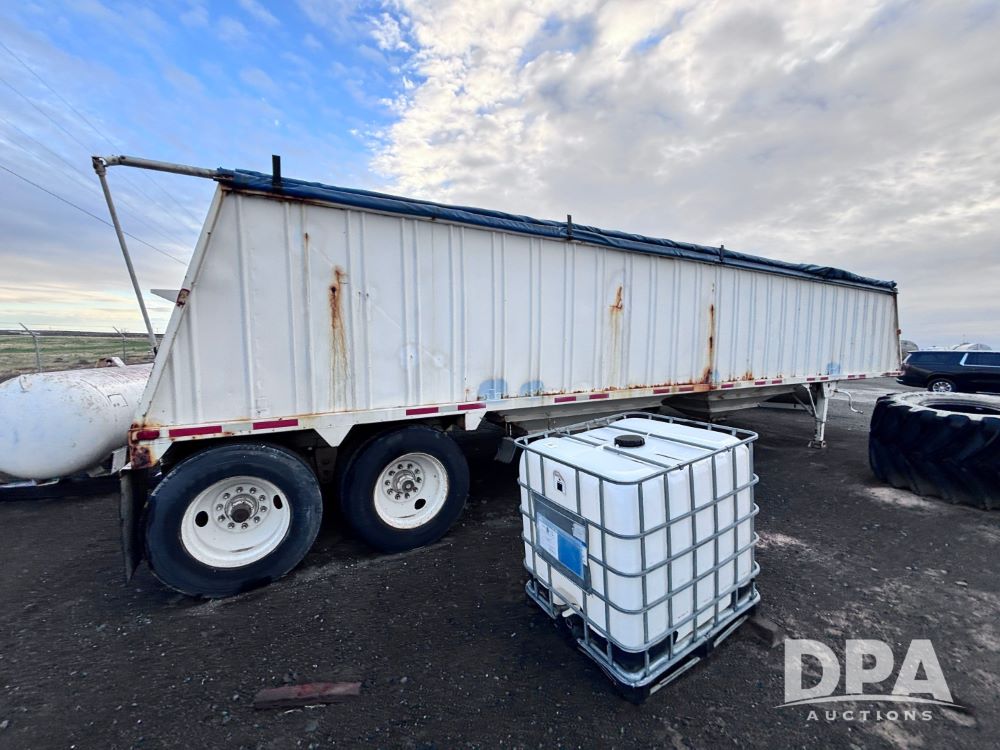 1989 Eagle Grain Trailer (GP11935, Unit 46188), 1989 Eagle hopper bottom grain trailer, roll over tarp, tandem axle, spring suspension, 11R24.5 tires.
