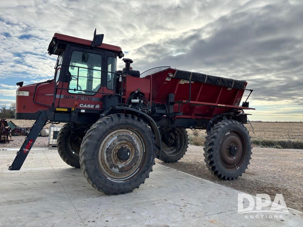 Case IH SPX3200 Dry Machine (DR12663), diesel engine, hydrostatic drive, New Leader L3020 G4 stainless steel hydraulic dry spinner box, belt/chain, roll over tarp, Raven Viper Pro controller, light bar, cab heat/air conditioning, shows 4,129 hours, Firestone 380/90R46 row crop tires.