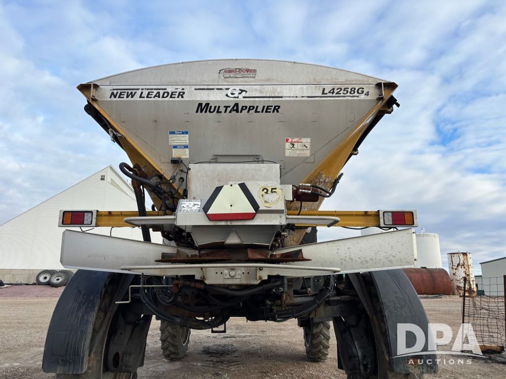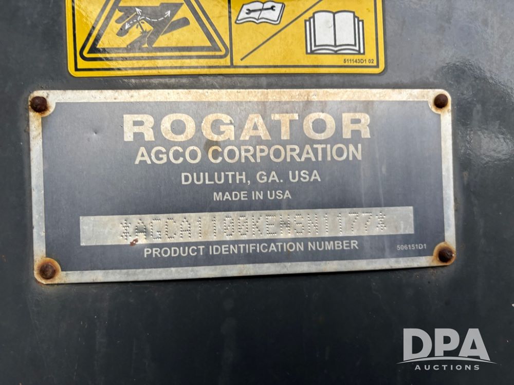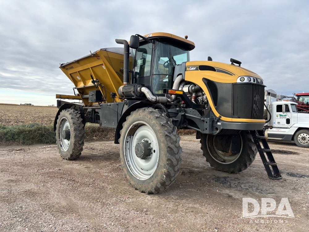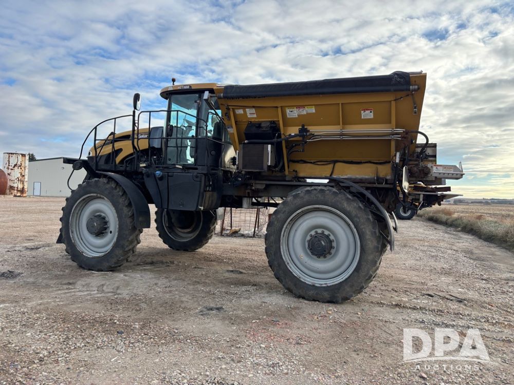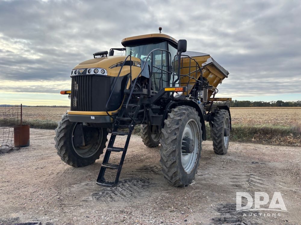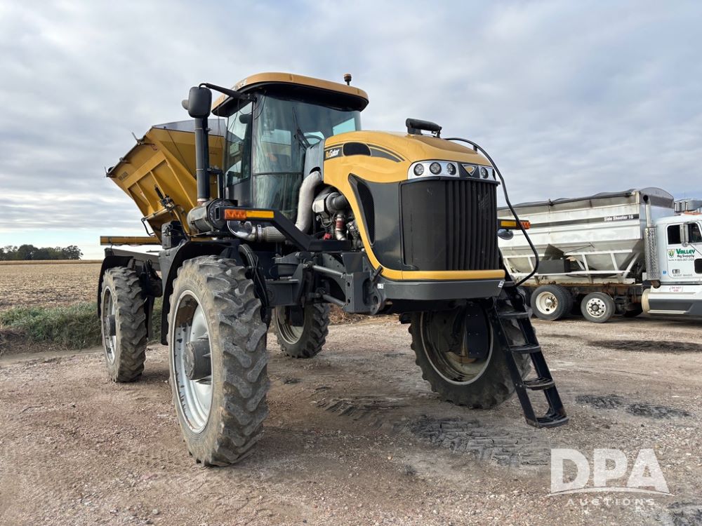 2014 RoGator RG1100 Dry Machine (DR12264), diesel engine, hydrostatic drive, New Leader L4258 G4 stainless steel hydraulic dry spinner box, Multiplier insert box, Raven Viper Pro controller, light bar, Center Point display DOES NOT work, electric roll over tarp, cab heat/air conditioning, AM/FM CD radio, cab cam, 380/90R46 row crop tires, shows 4,180 hours.
