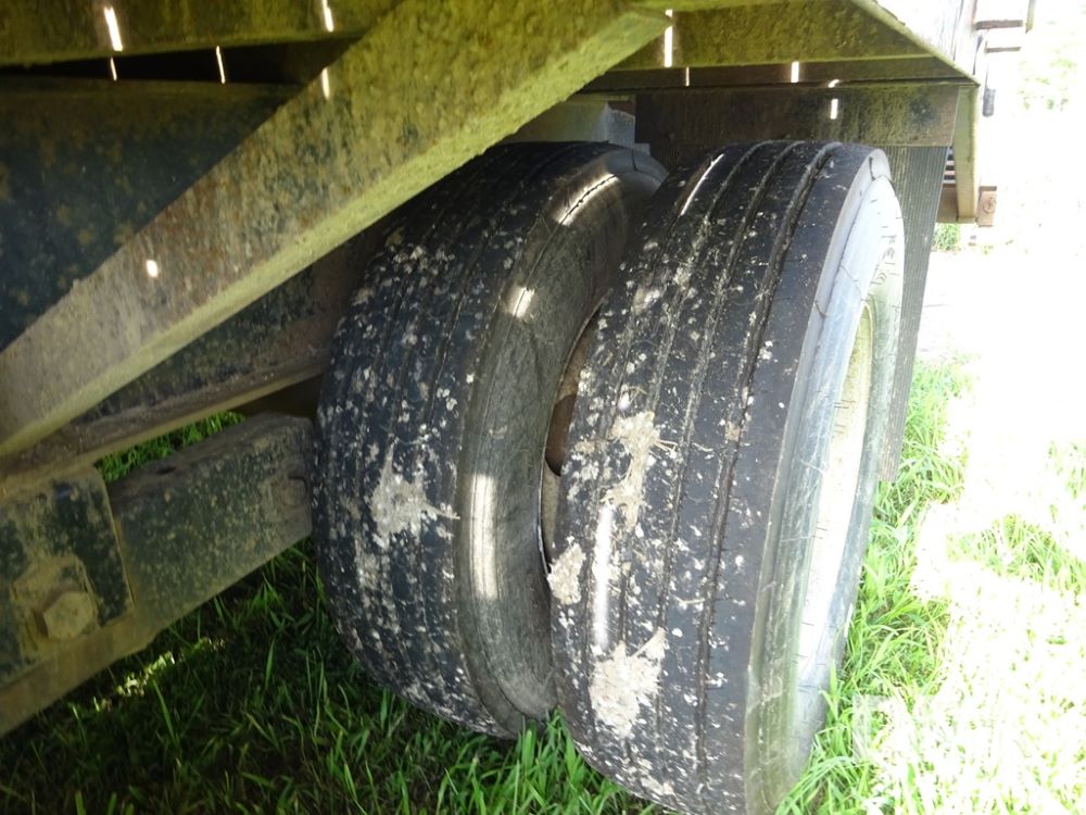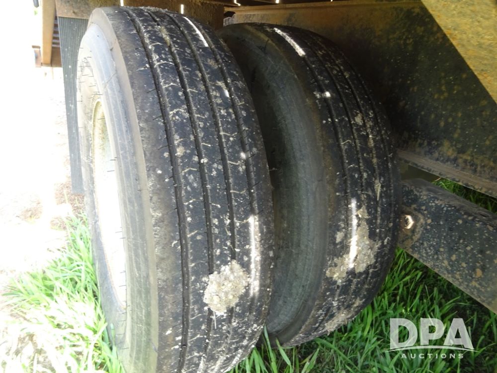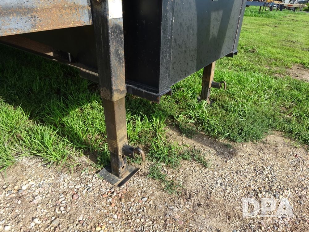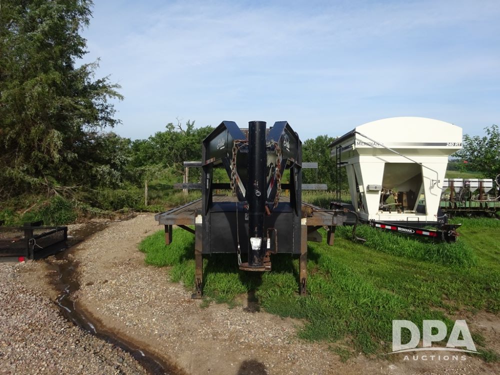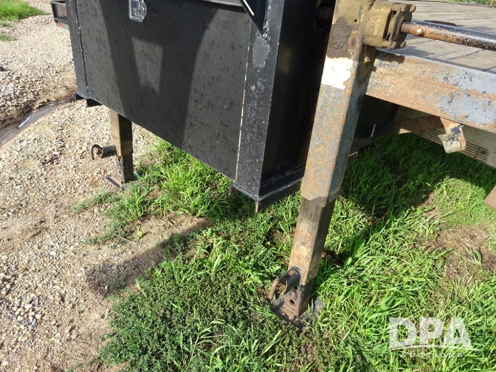 2007 Delta Trailer (PZ13712 Unit 33942), 26' gooseneck hitch trailer, rear beaver tail, rear manual ramps, front mounted storage box, rear manual outriggers, tandem dual wheeled axles 12,000 GVW each, 235/80R16 tires.