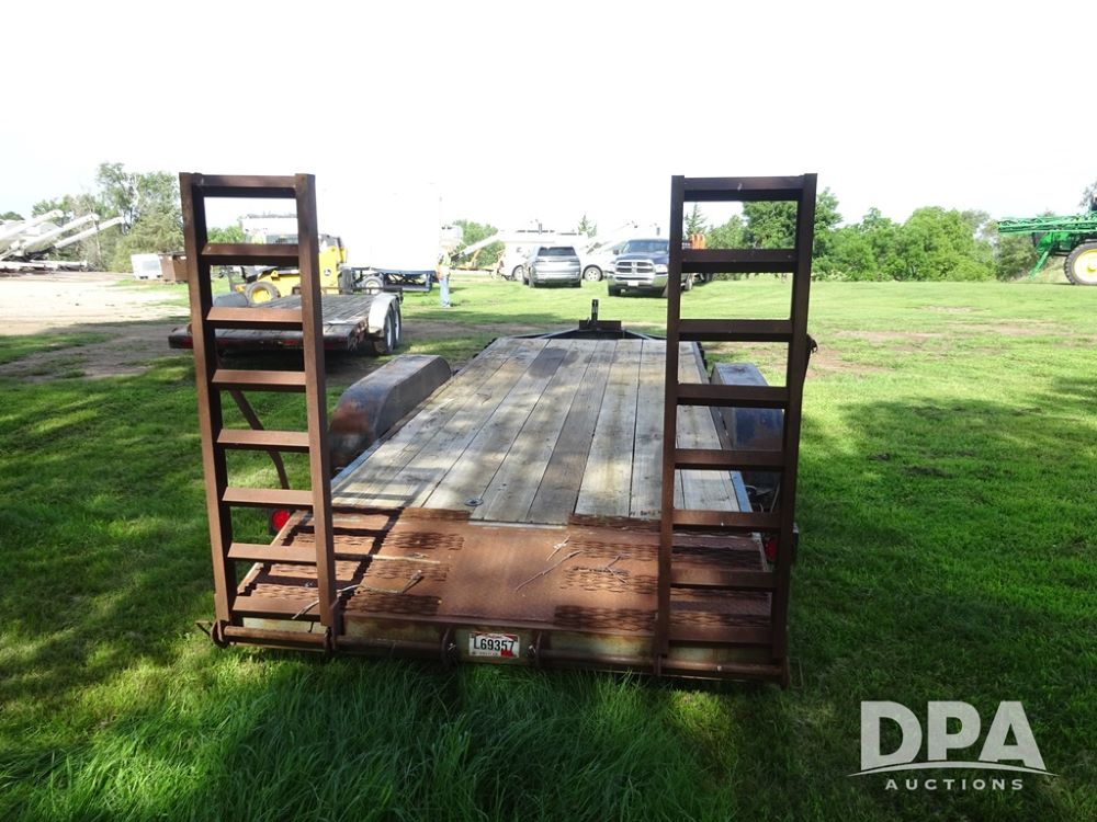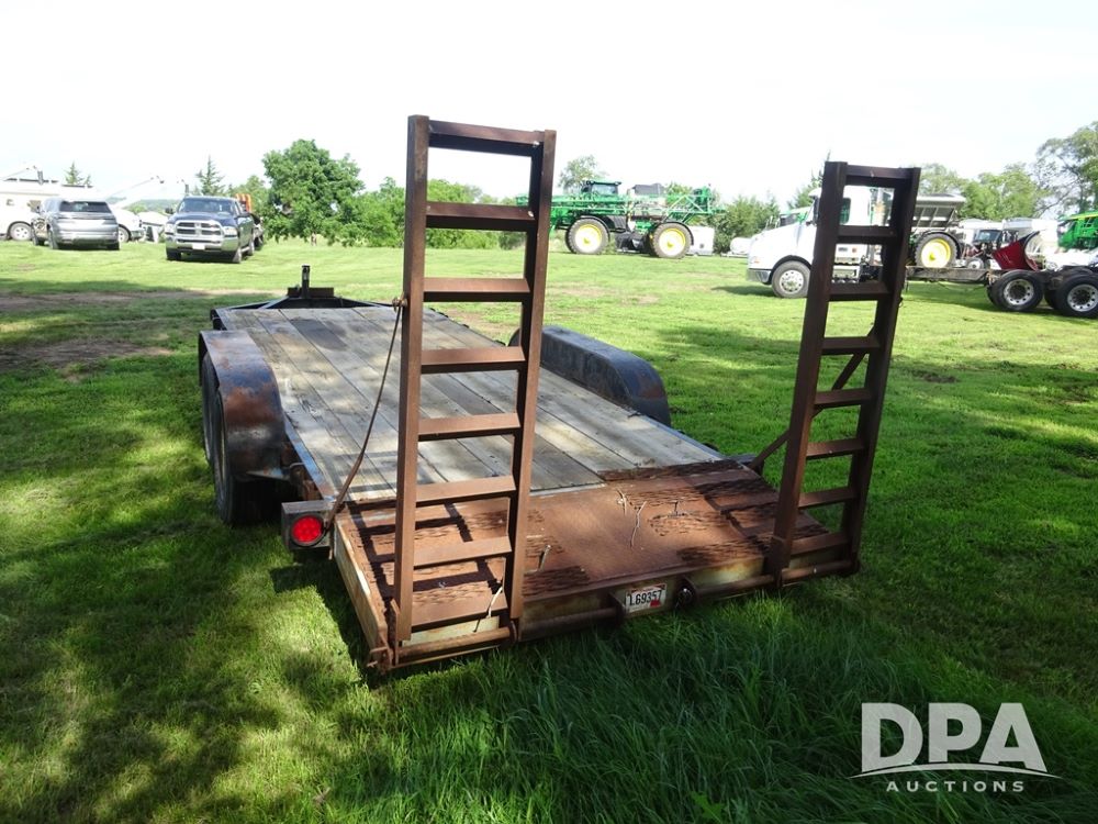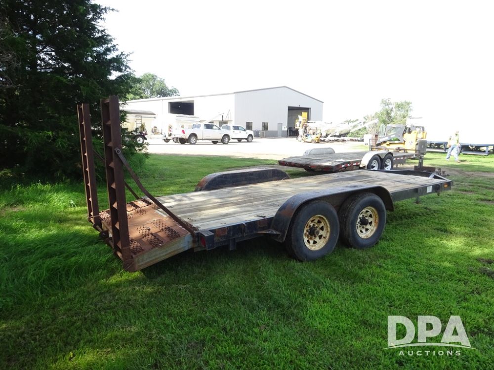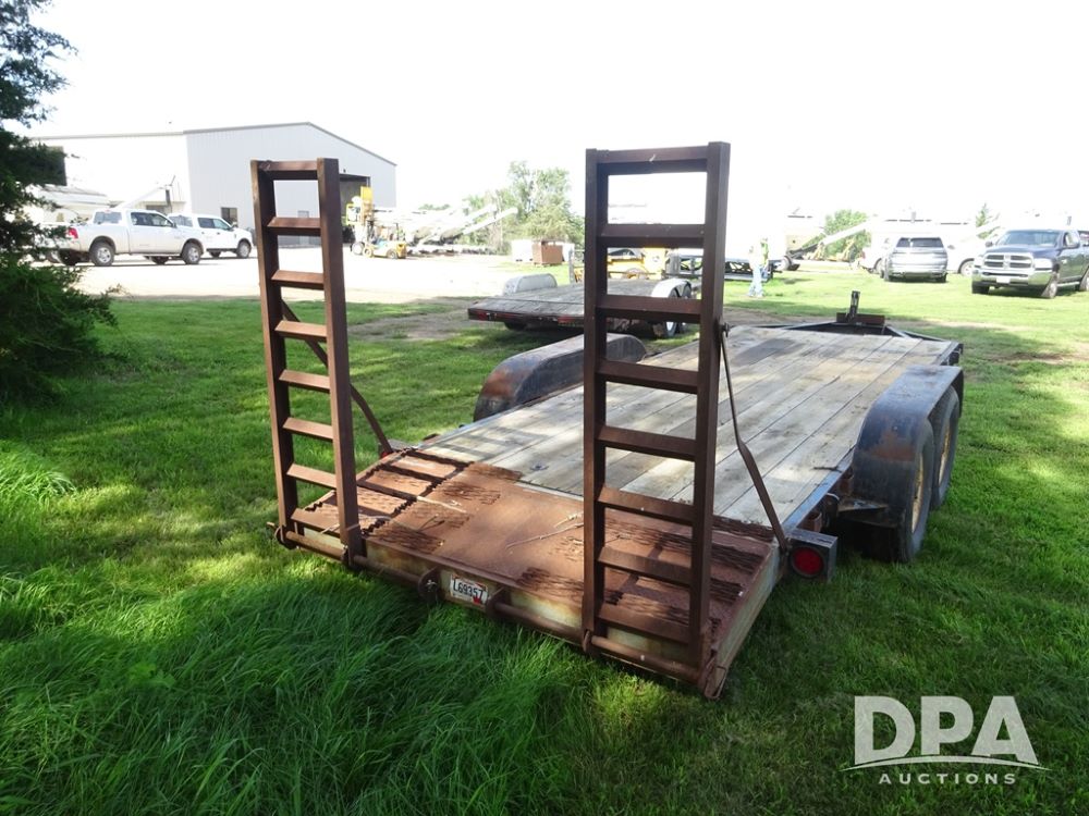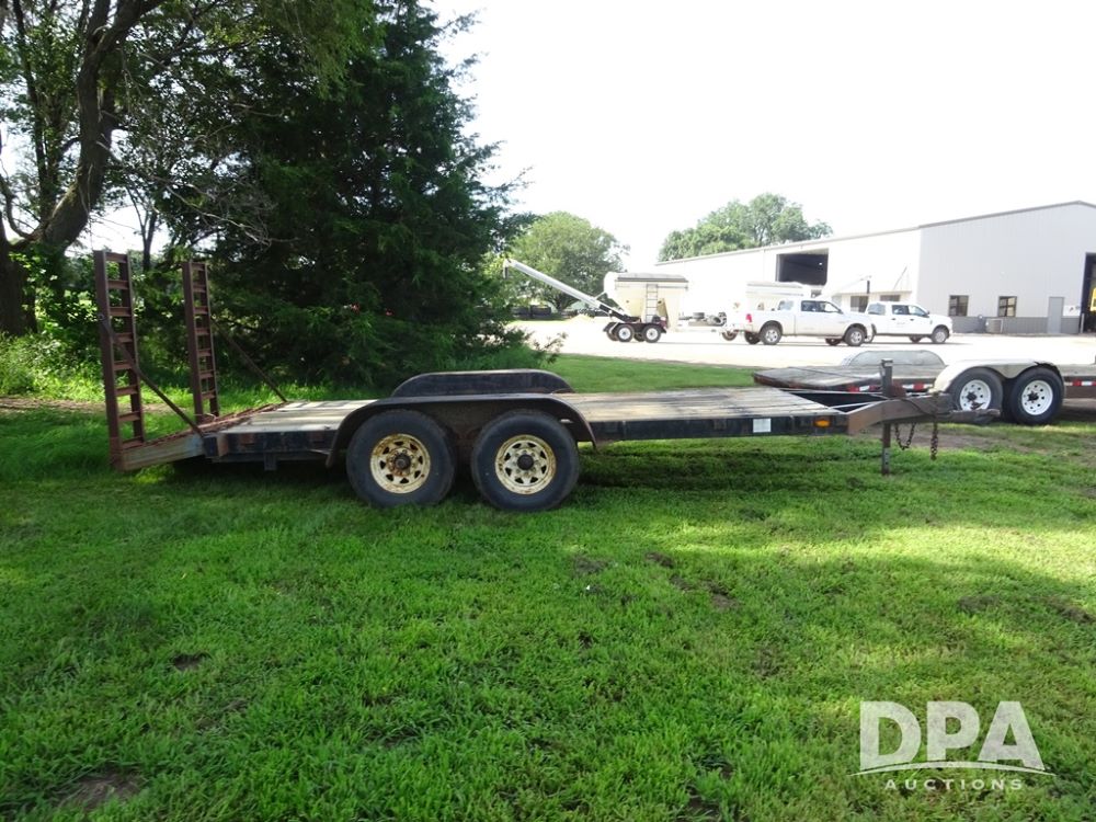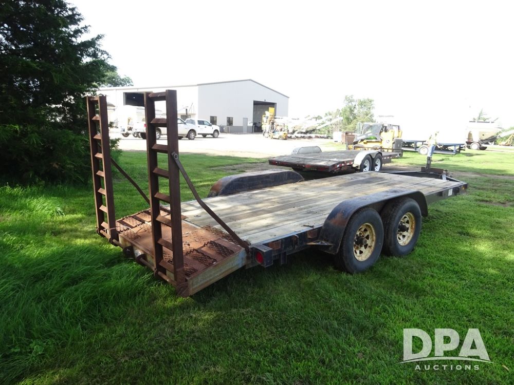 1997 Homemade Trailer (PZ13721), 18' bumper hitch trailer, rear beaver tail, manual ramps, tandem axle, 235/85R16 tires.