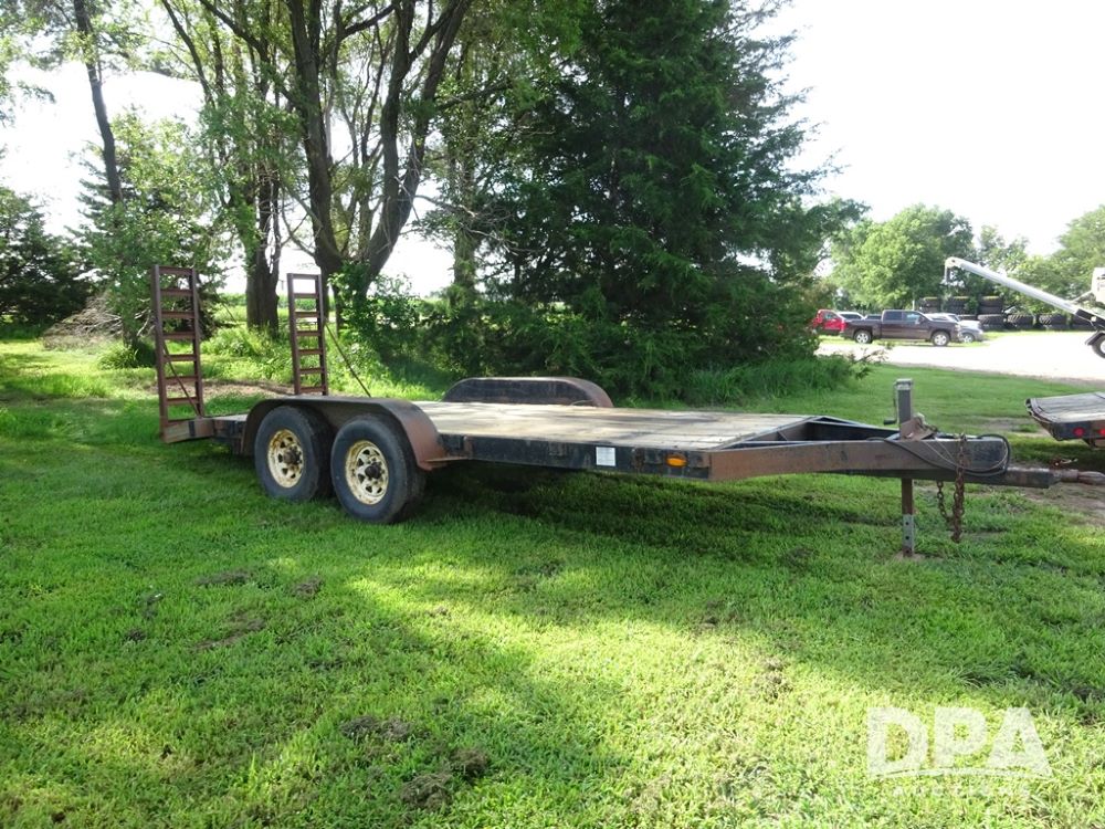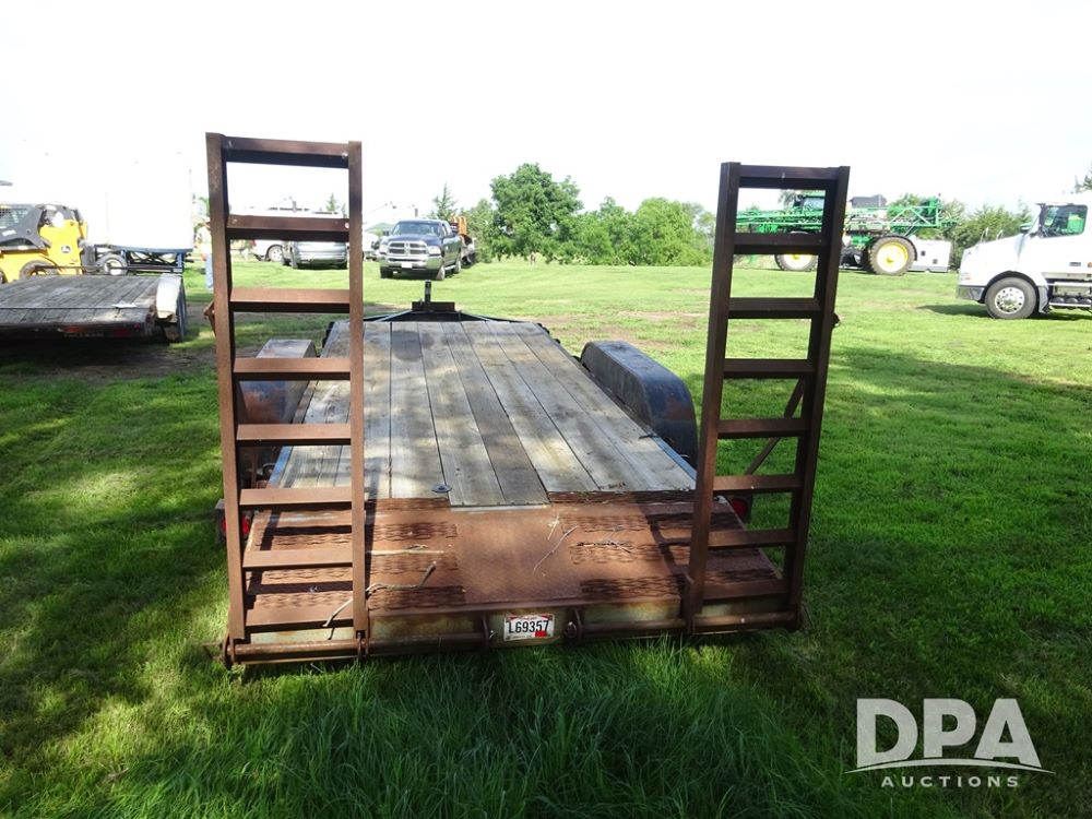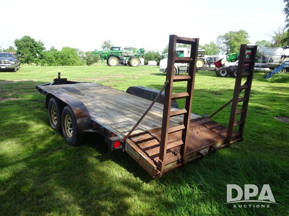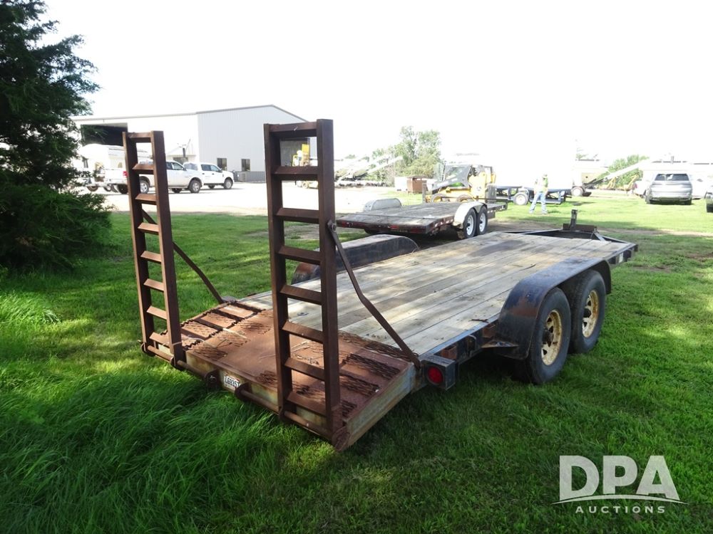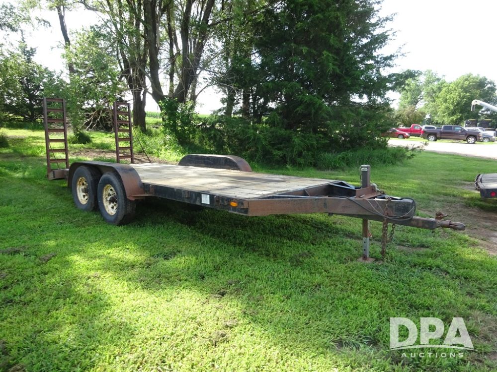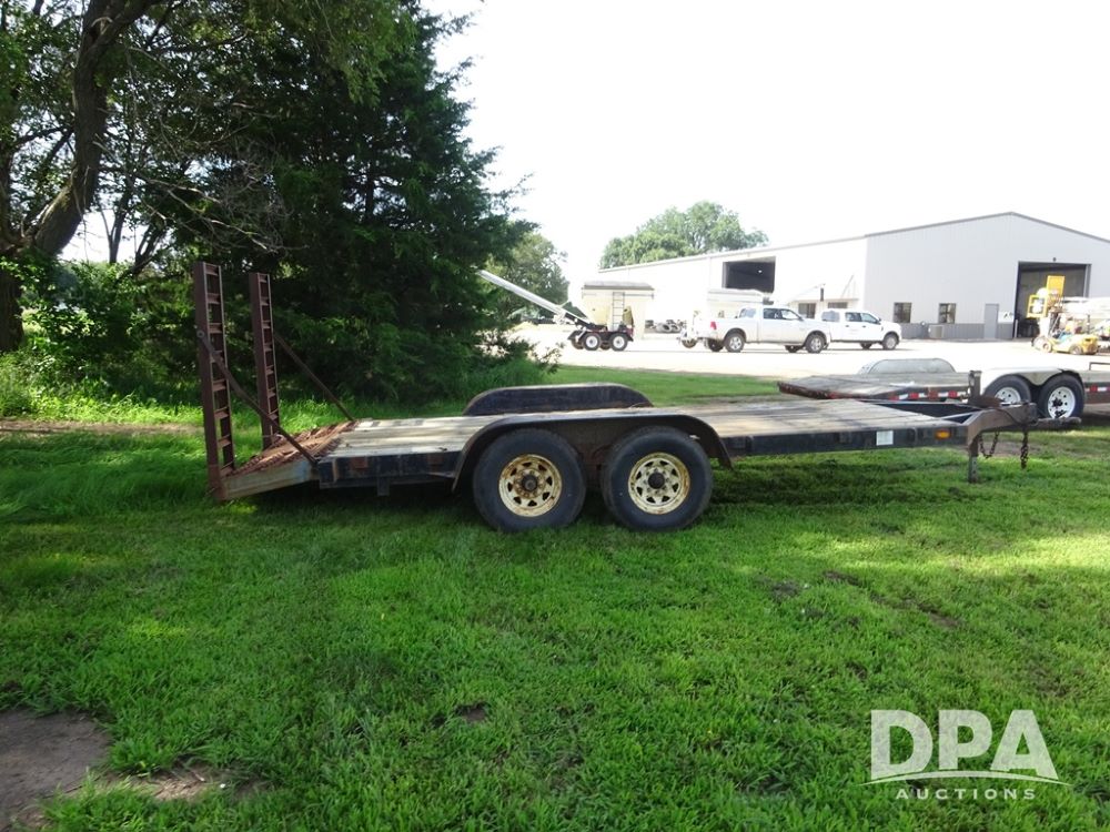 1997 Homemade Trailer (PZ13721), 18' bumper hitch trailer, rear beaver tail, manual ramps, tandem axle, 235/85R16 tires.