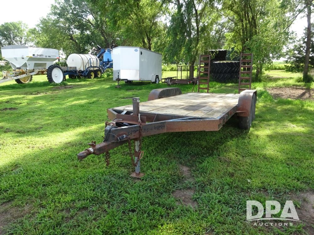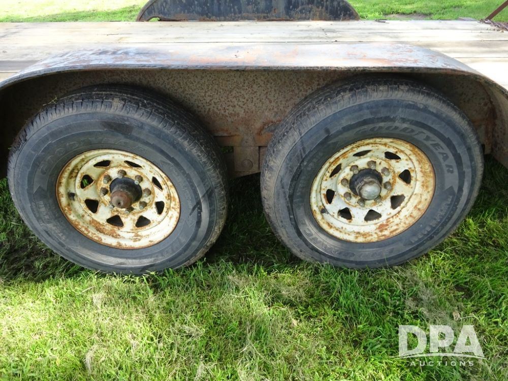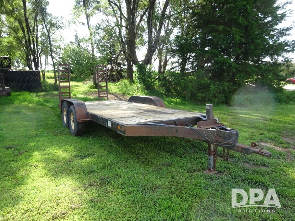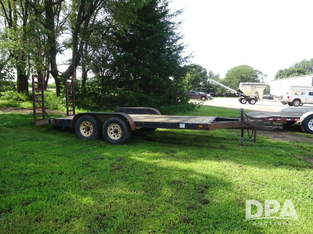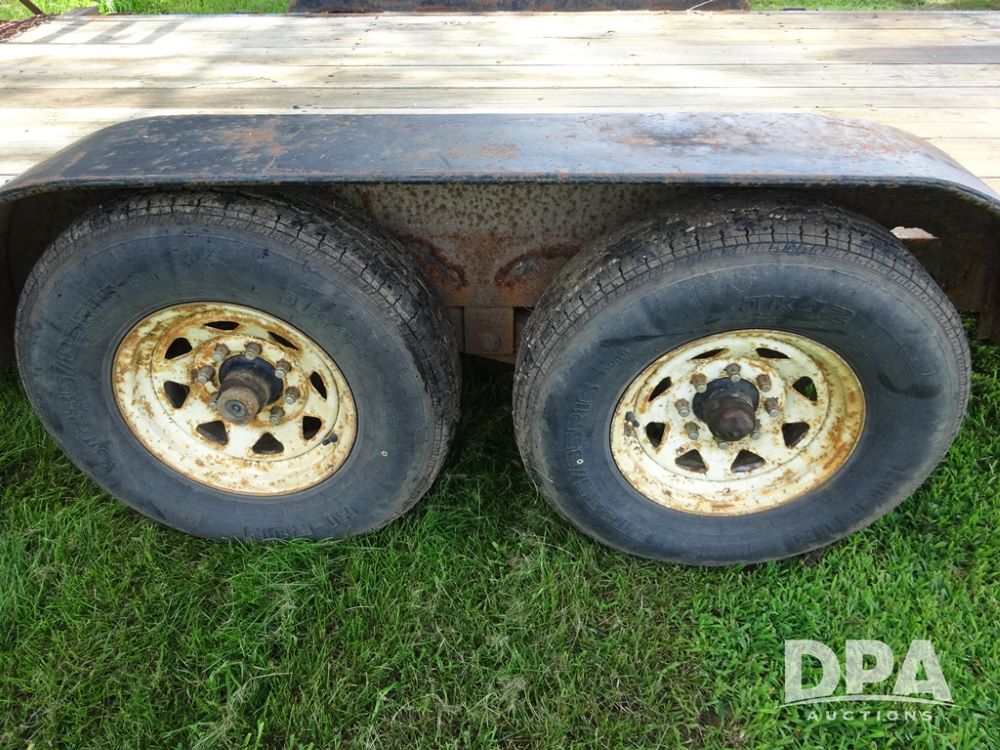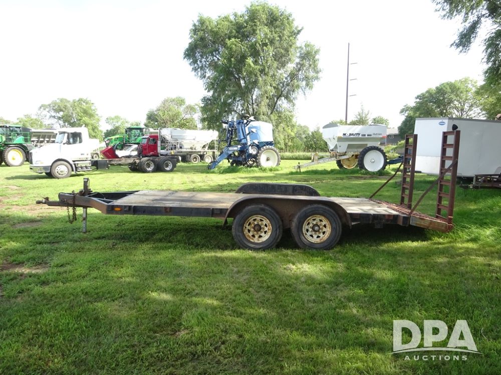 1997 Homemade Trailer (PZ13721), 18' bumper hitch trailer, rear beaver tail, manual ramps, tandem axle, 235/85R16 tires.