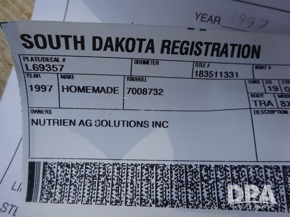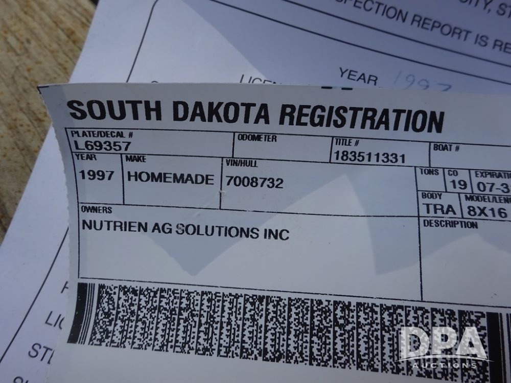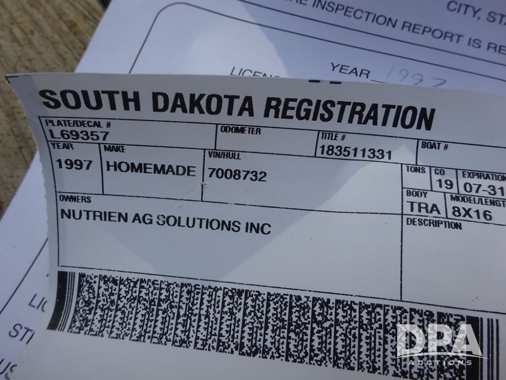 Notes: This trailer sells with Registration ONLY.
