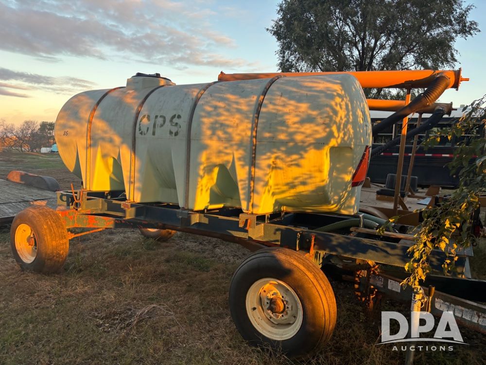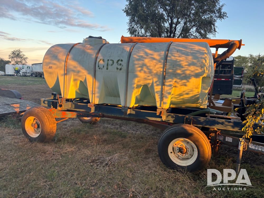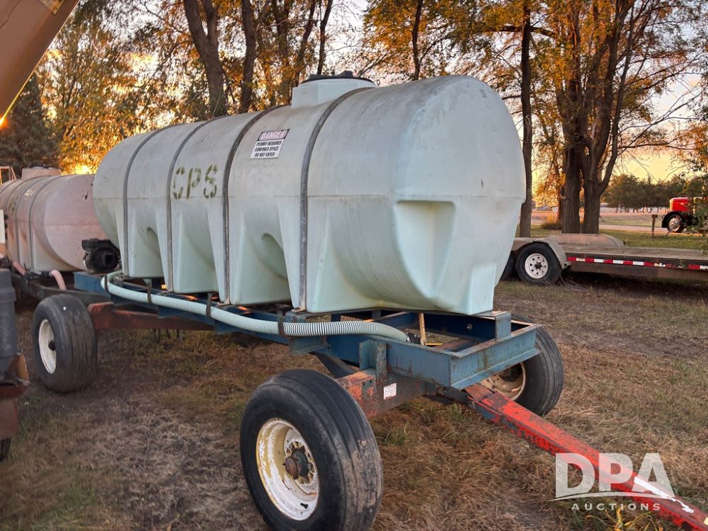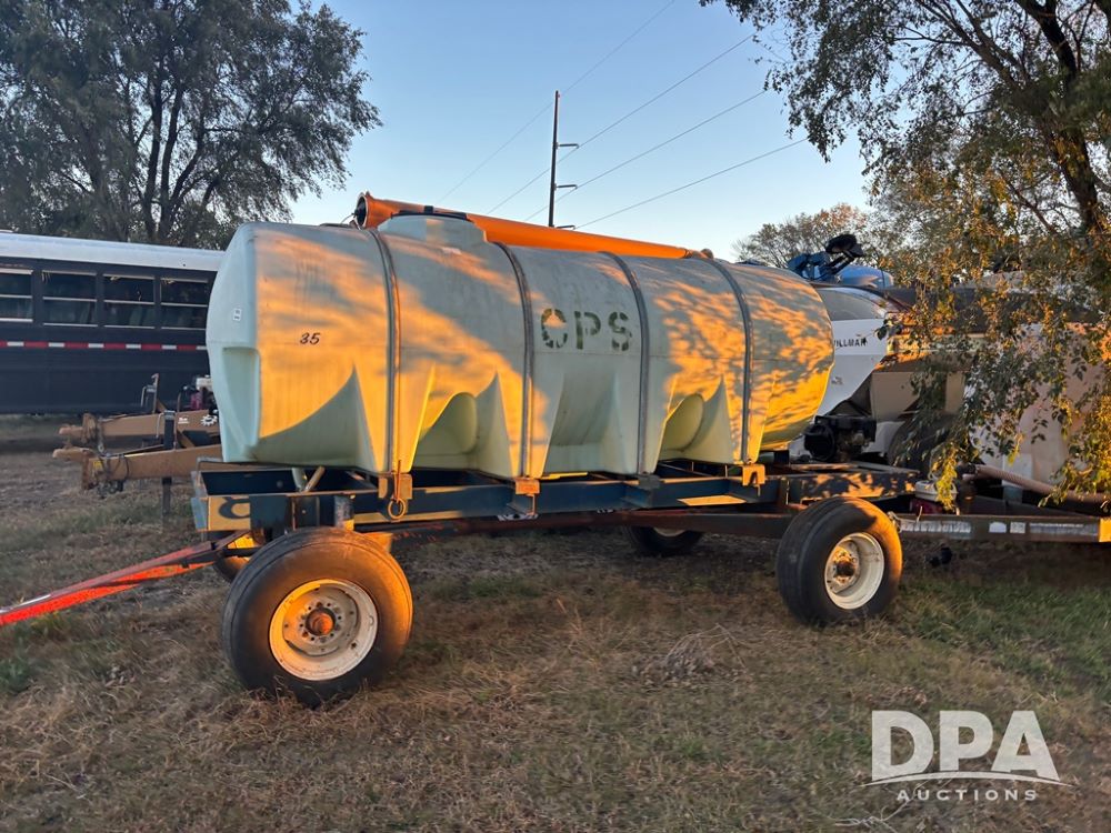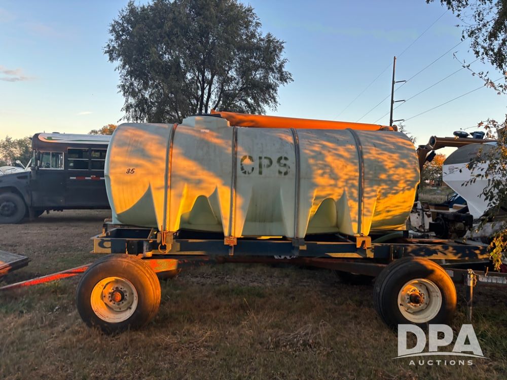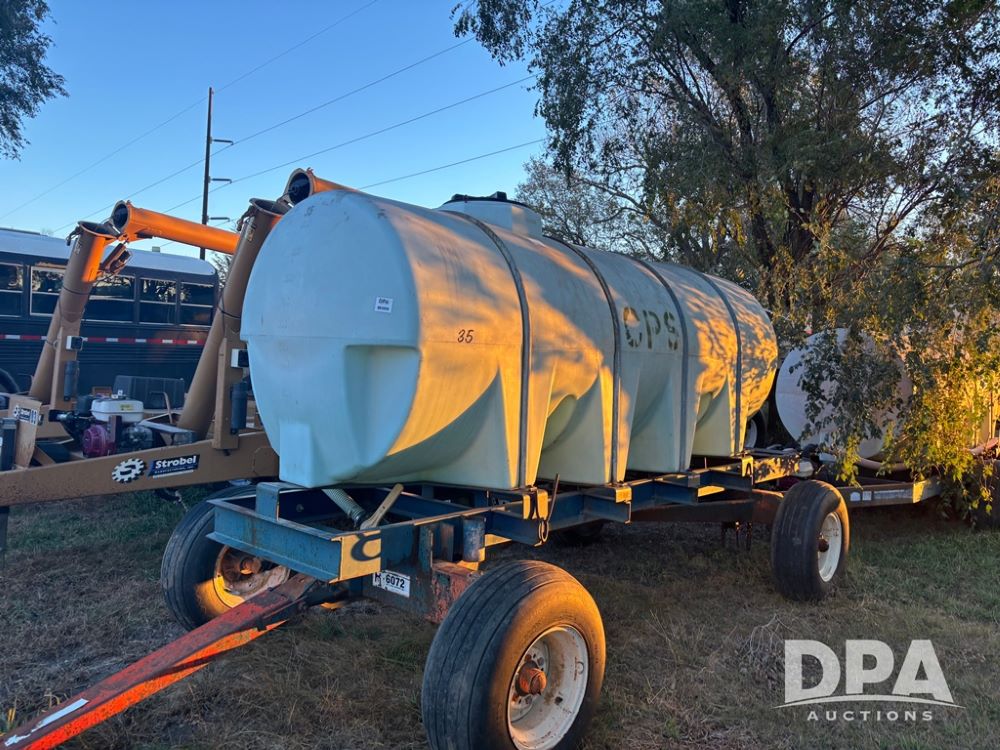 Liquid Nurse Tank (DR12656 Tank #35), 1,000 gallon crown poly liquid tank, Honda gas engine and pump need work, Kory 6072 running gear w/11L-15 tires.