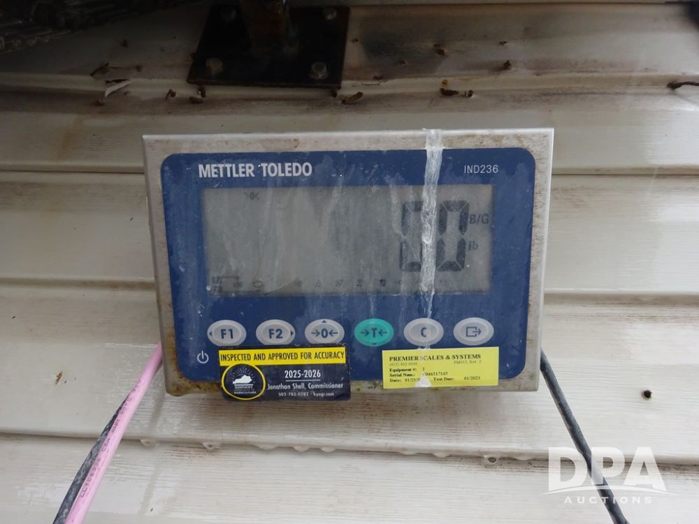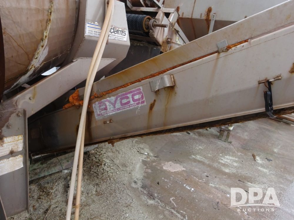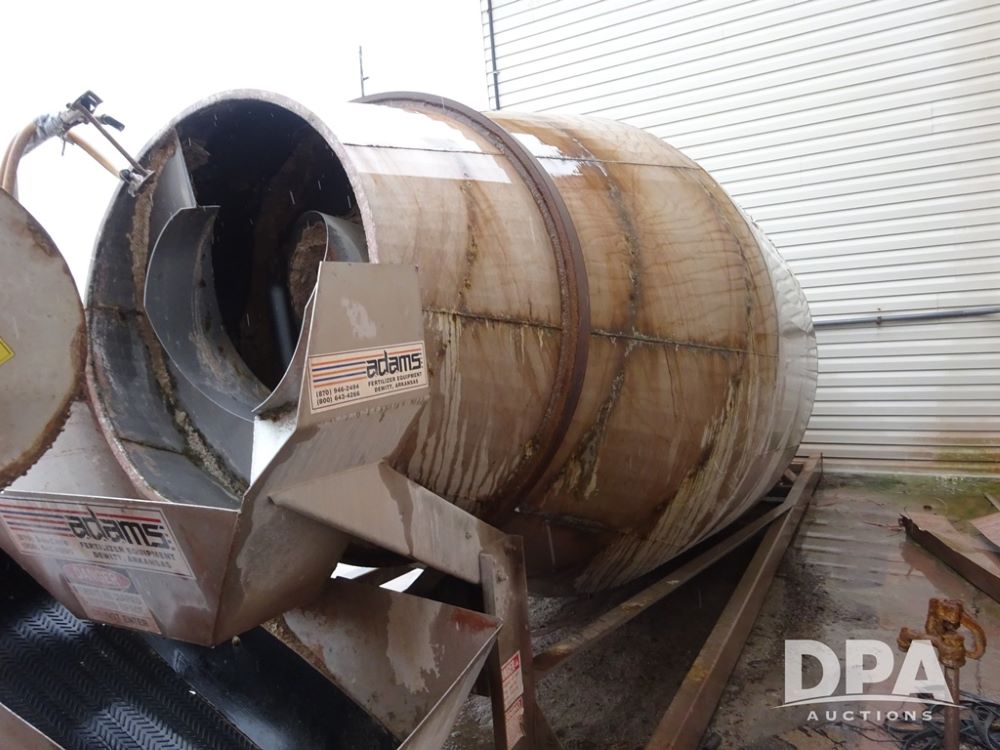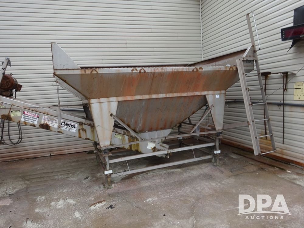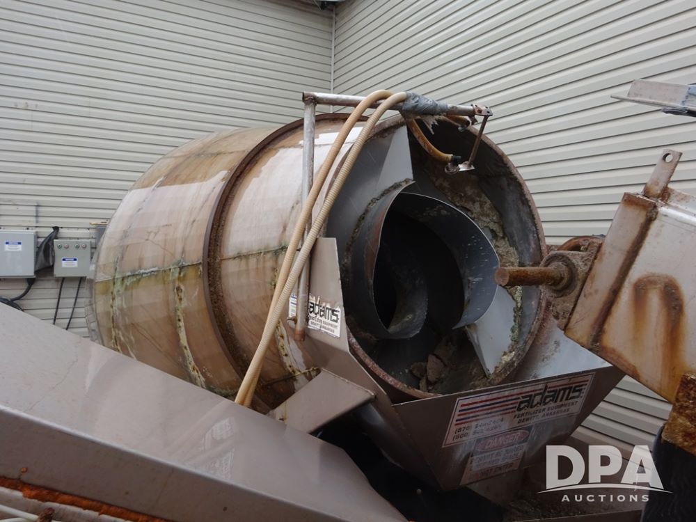 Adams Dry Blender (PZ14004), Adams 8 ton stainless steel drum blender, 30 hp electric motor, Adams stainless steel hopper, Adams stainless steel hopper conveyor, NIDEC 7.5 hp electric motor, Layco stainless steel loadout conveyor, electric motor, 2016 Matko model SBL-4 digital readout, S/N 4160152, Mettler Toledo IND236 digital readout, control box.