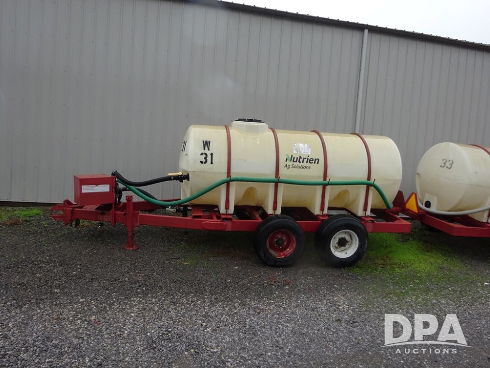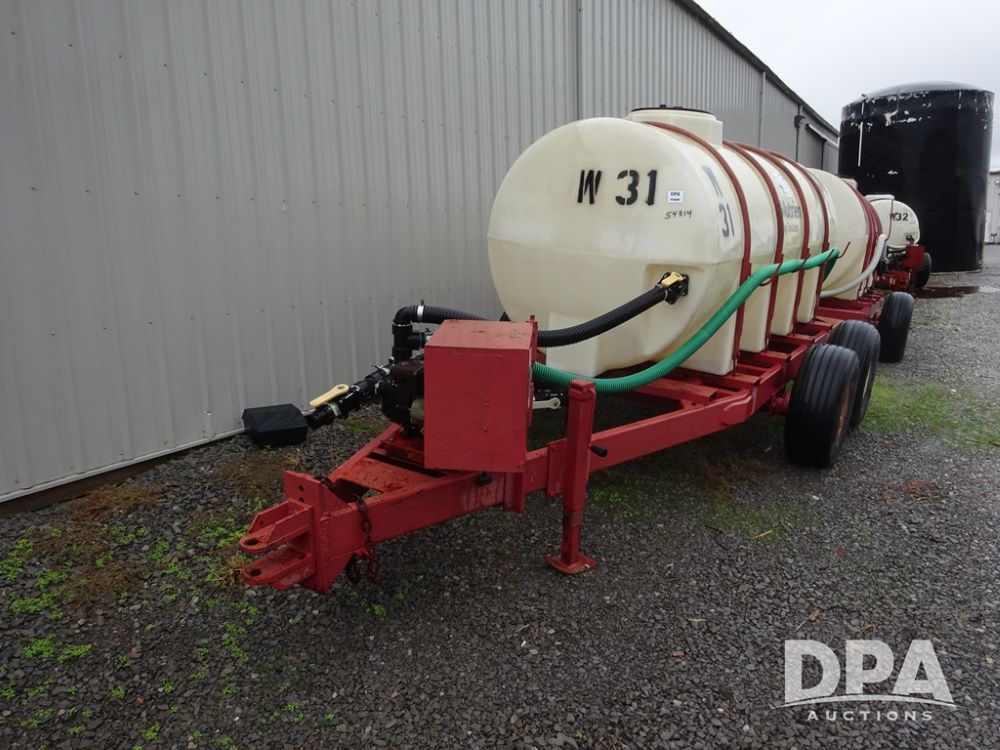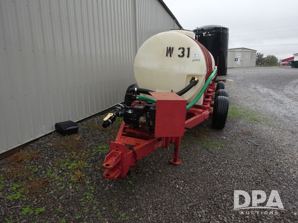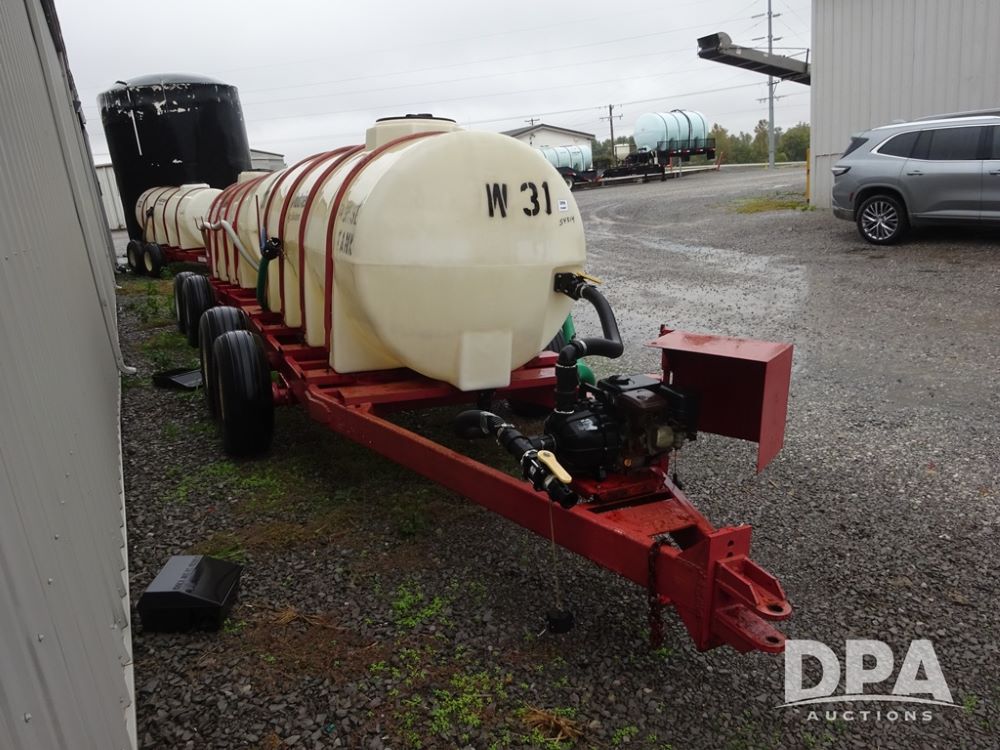Adams Liquid Nurse Trailer (PZ14007, Unit 54314, Tank W31), Adams 1000 gallon poly liquid nurse trailer, gas engine, pump, tandem axle gear, 11L-15 flotation tires.