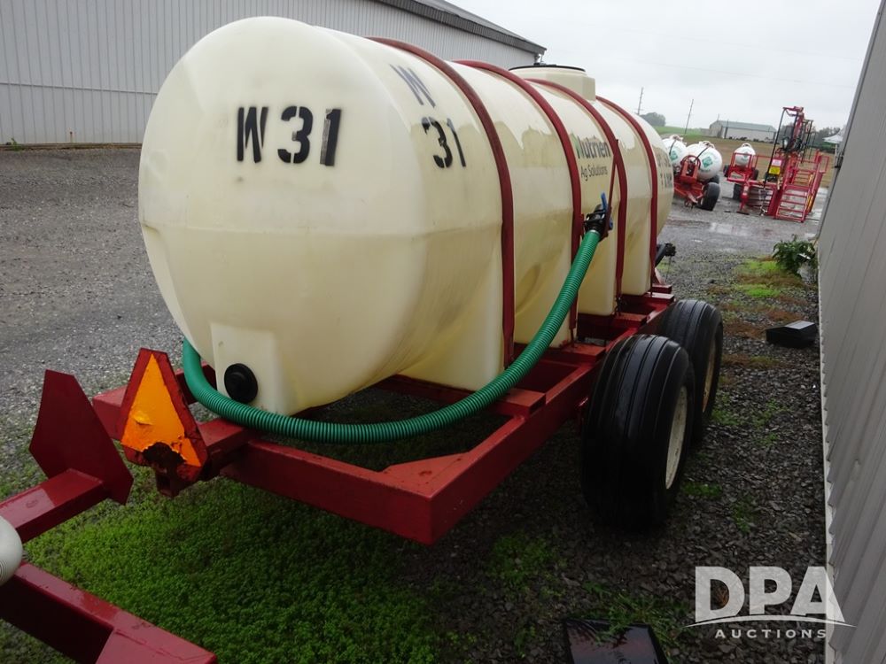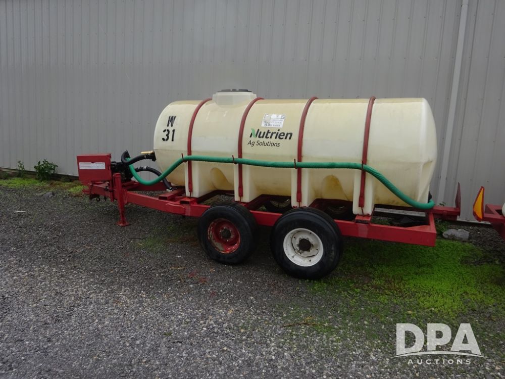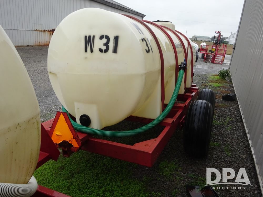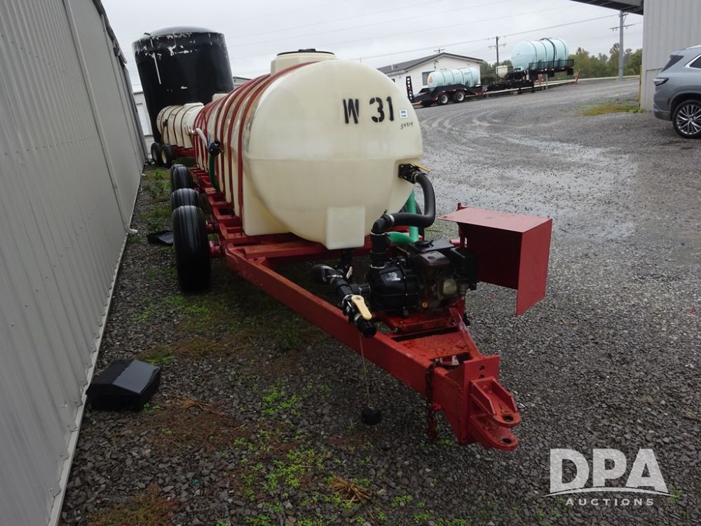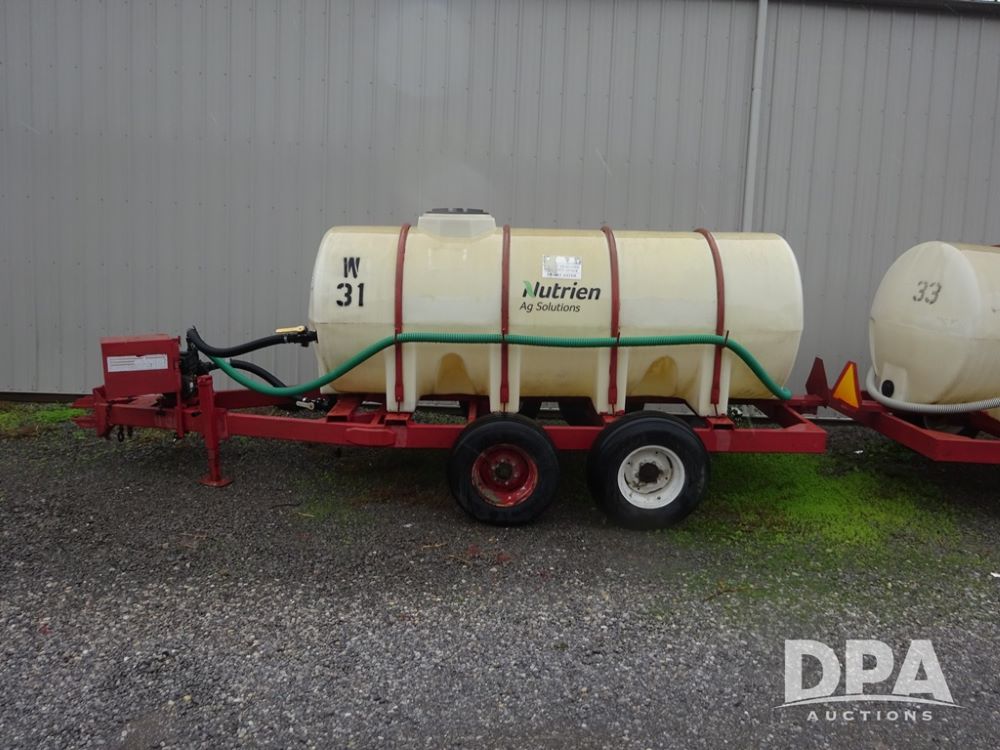 Adams Liquid Nurse Trailer (PZ14007, Unit 54314, Tank W31), Adams 1000 gallon poly liquid nurse trailer, gas engine, pump, tandem axle gear, 11L-15 flotation tires.