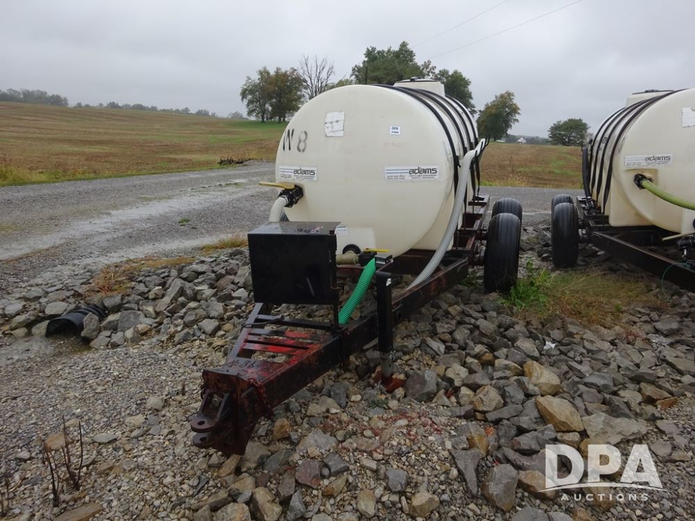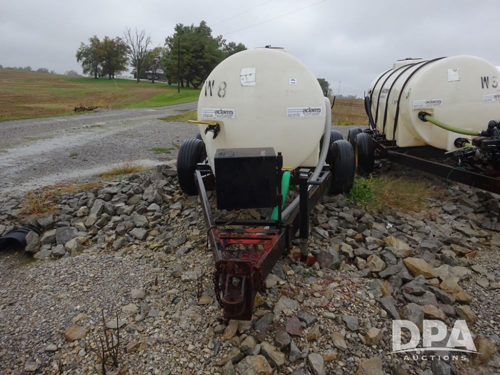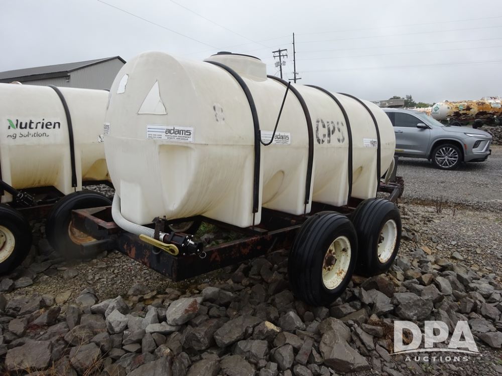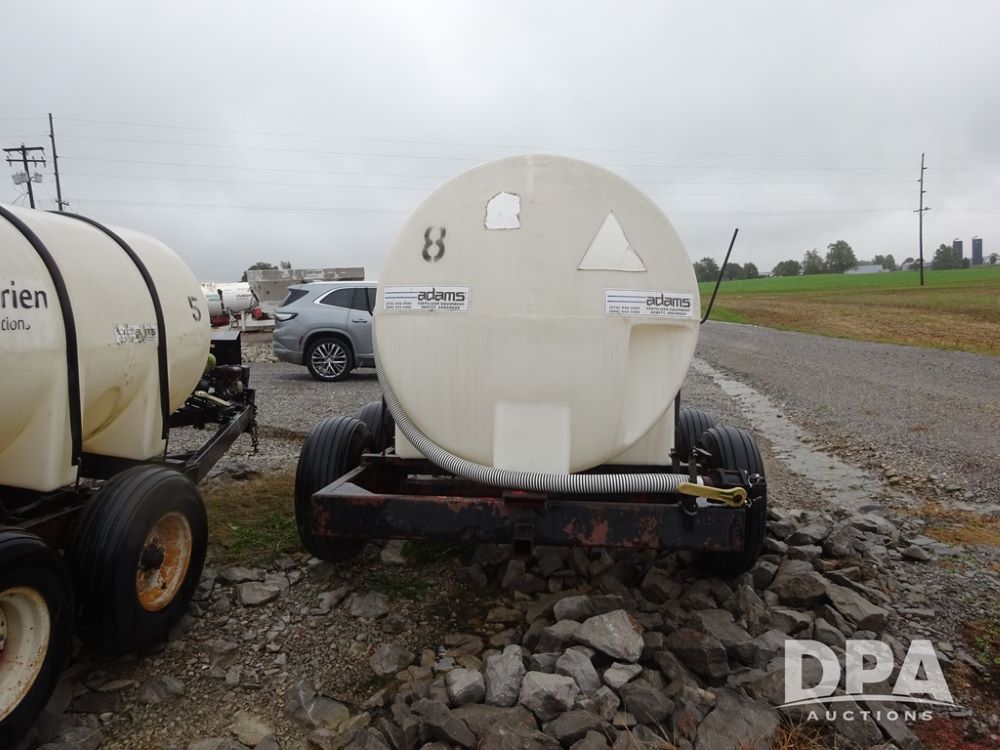 Adams Liquid Nurse Trailer (PZ14008, Unit 109442, Tank W8), Adams 1000 gallon poly liquid nurse trailer, tandem axle gear, 11L-15 flotation tires.