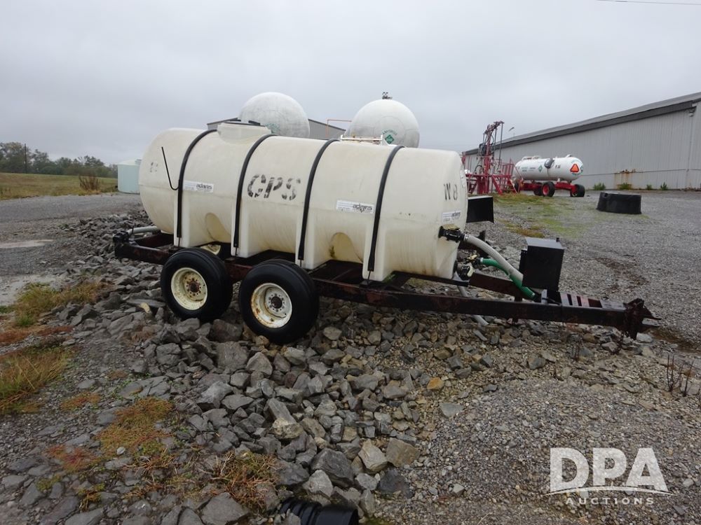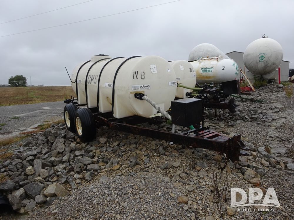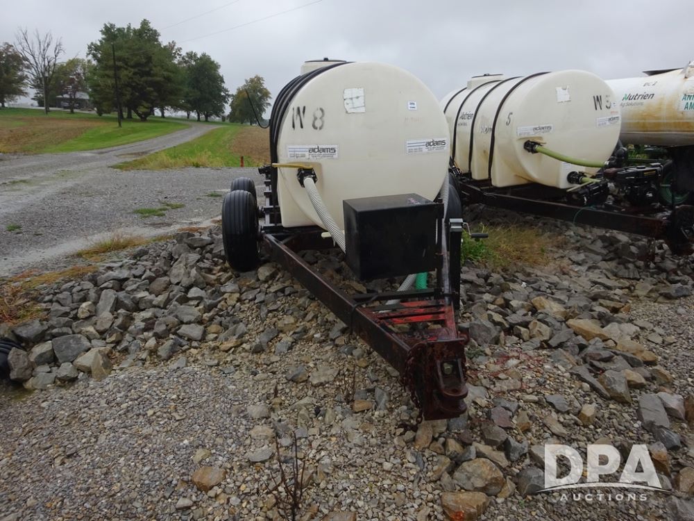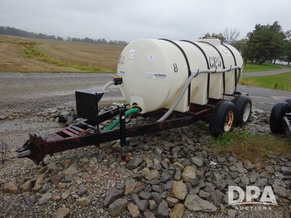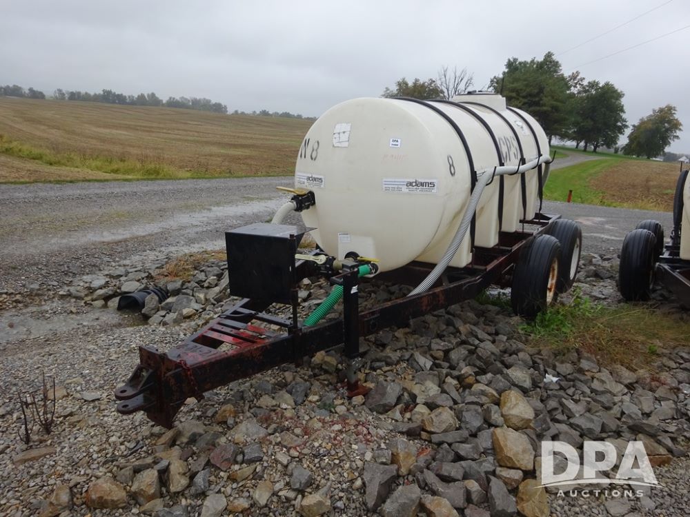 Adams Liquid Nurse Trailer (PZ14008, Unit 109442, Tank W8), Adams 1000 gallon poly liquid nurse trailer, tandem axle gear, 11L-15 flotation tires.