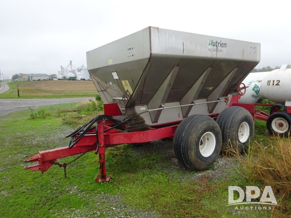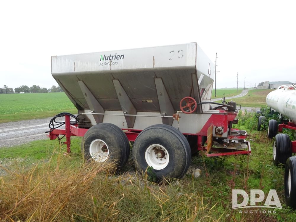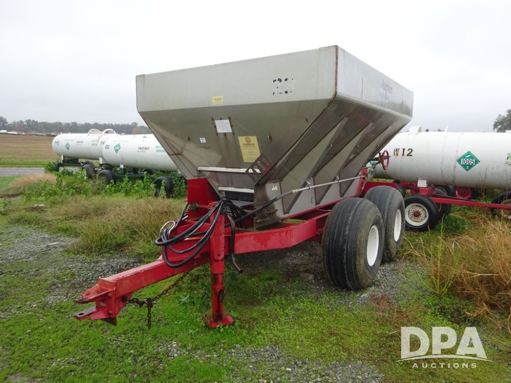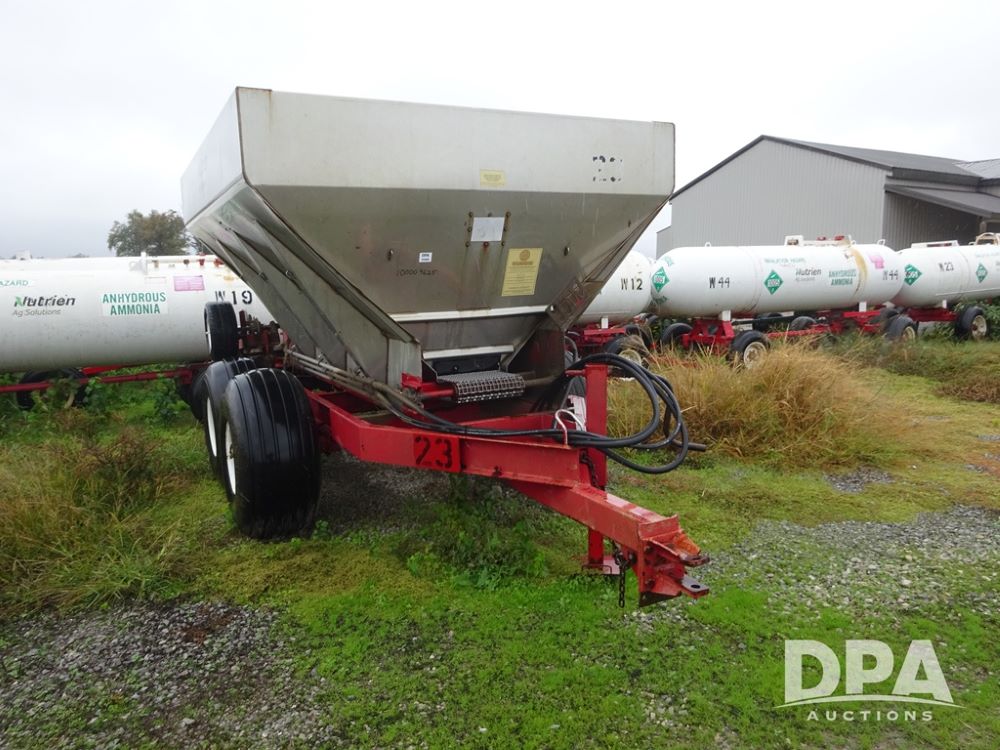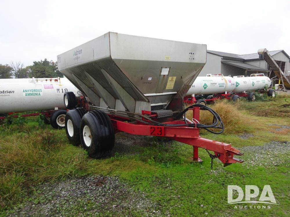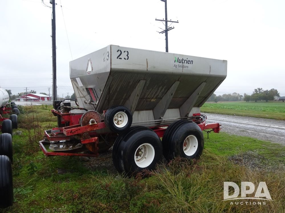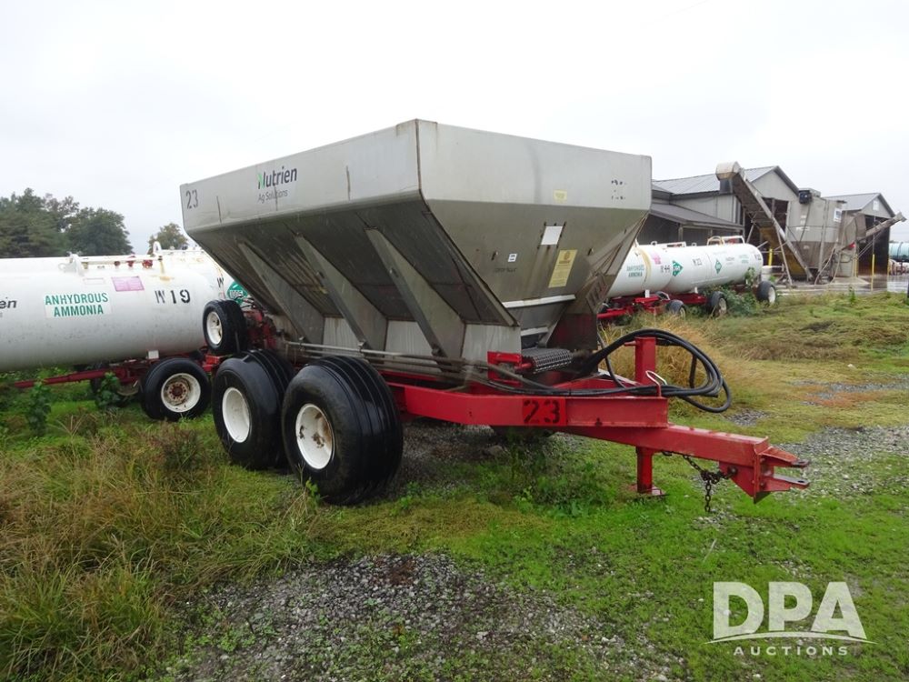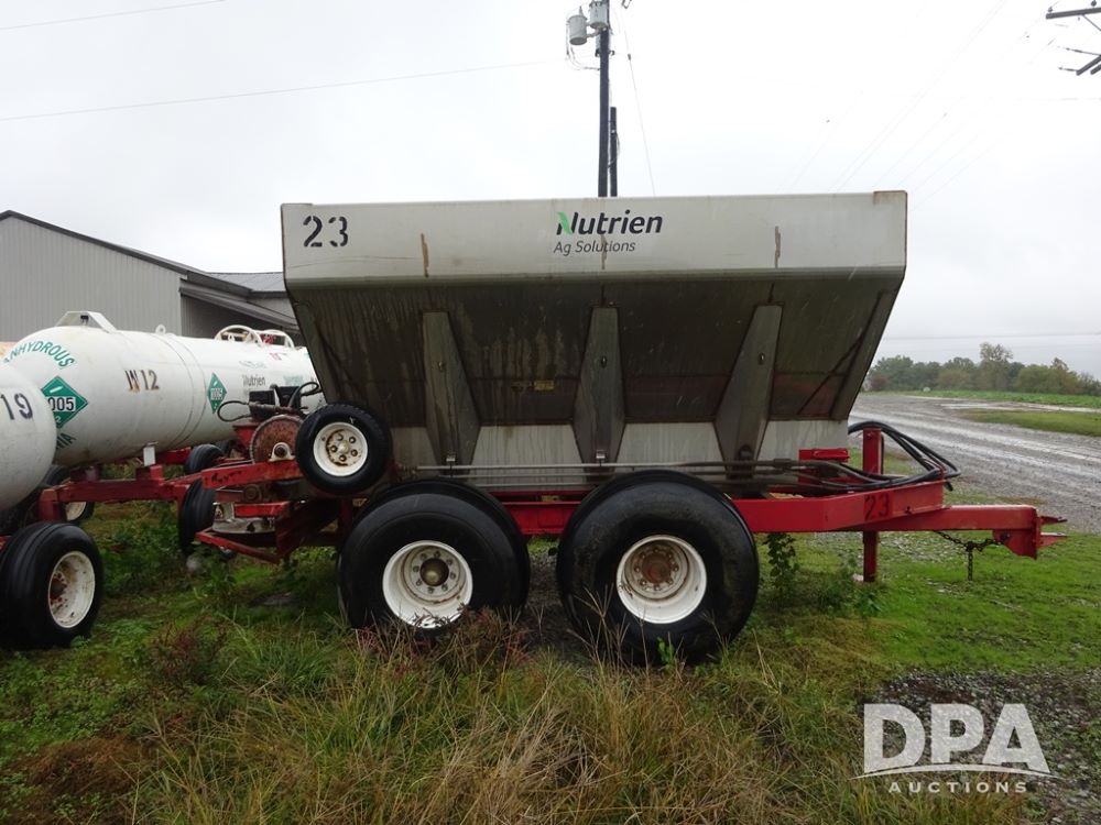 Chandler Dry Spreader (PZ14010, Unit 100009625, #W23), Chandler 8 ton stainless steel dry spreader, twin spinner, all hydraulic, tandem axle, 19L-16.1 flotation tires.